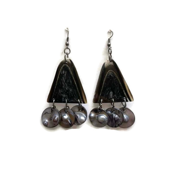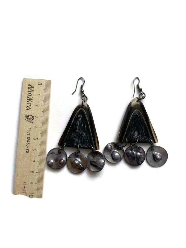 Μεγάλα Γυναικεία Κρεμαστά Σκουλαρίκια σε Καφέ Χρώμα με Χάντρες σε Γκρι-Πέρλες, Μήκους 7,5 εκ