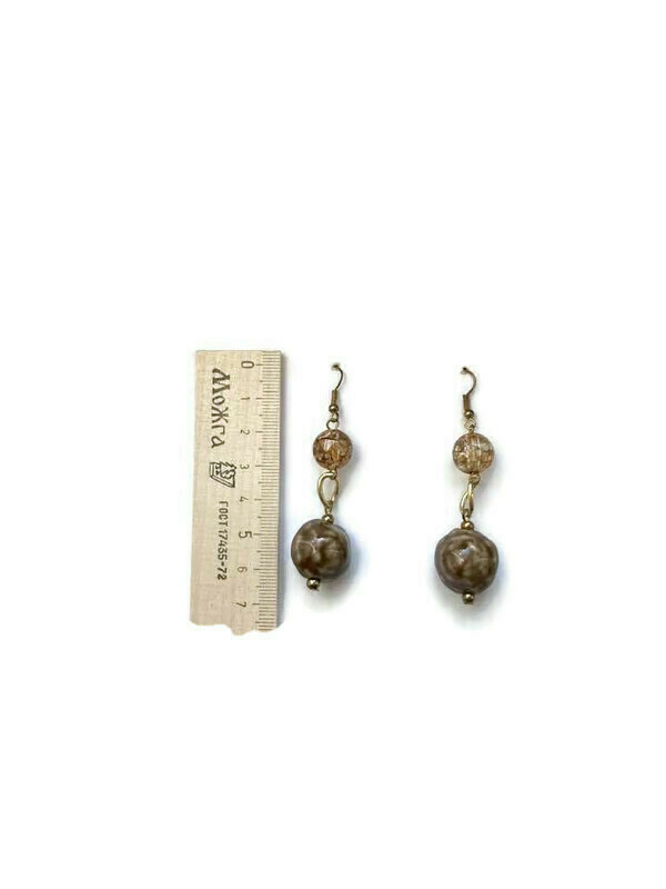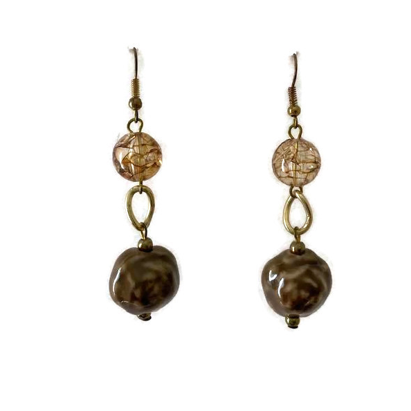 Γυναικεία Κρεμαστά Σκουλαρίκια σε Καφέ Χρώμα με Χάντρες – Μήκος 6,5 εκ.