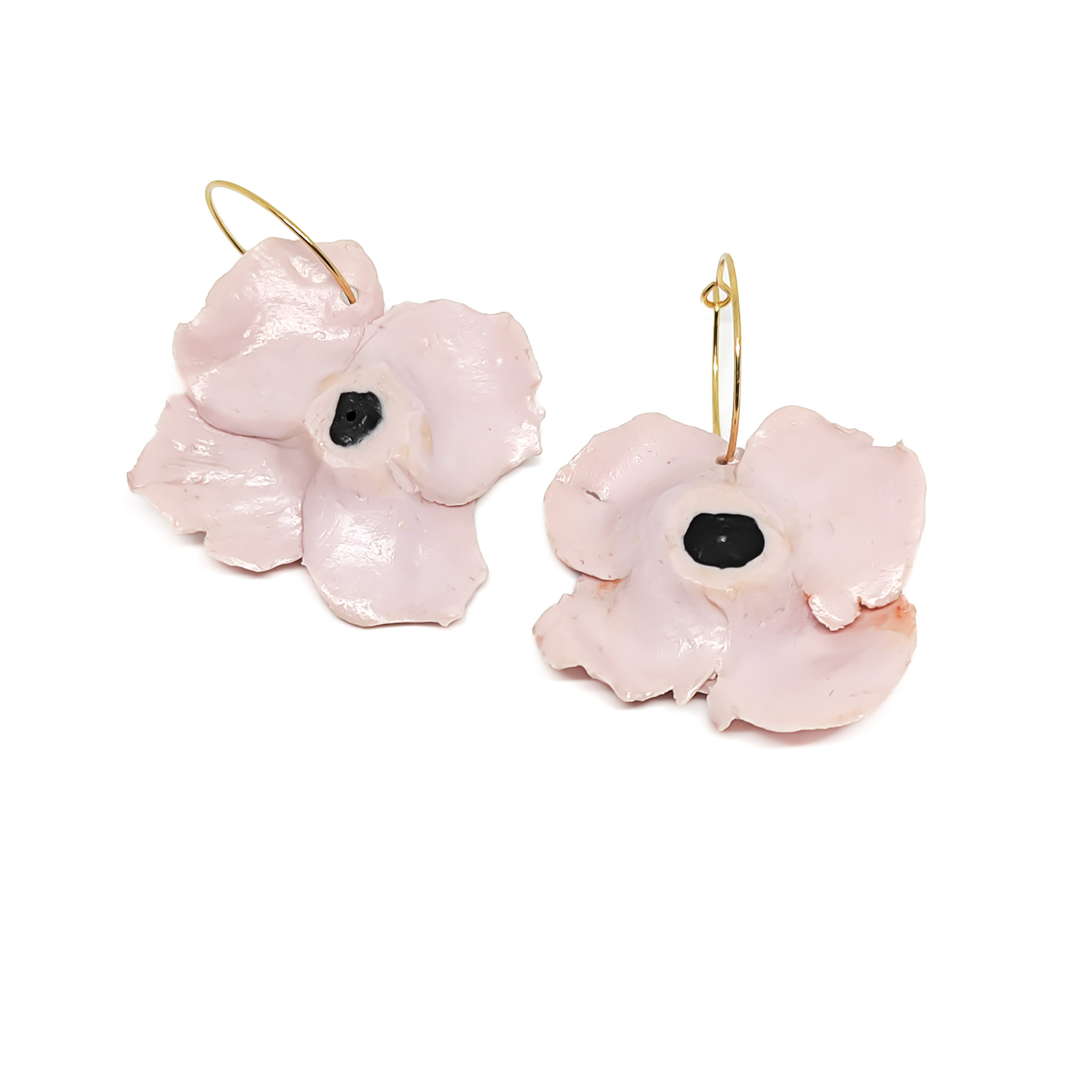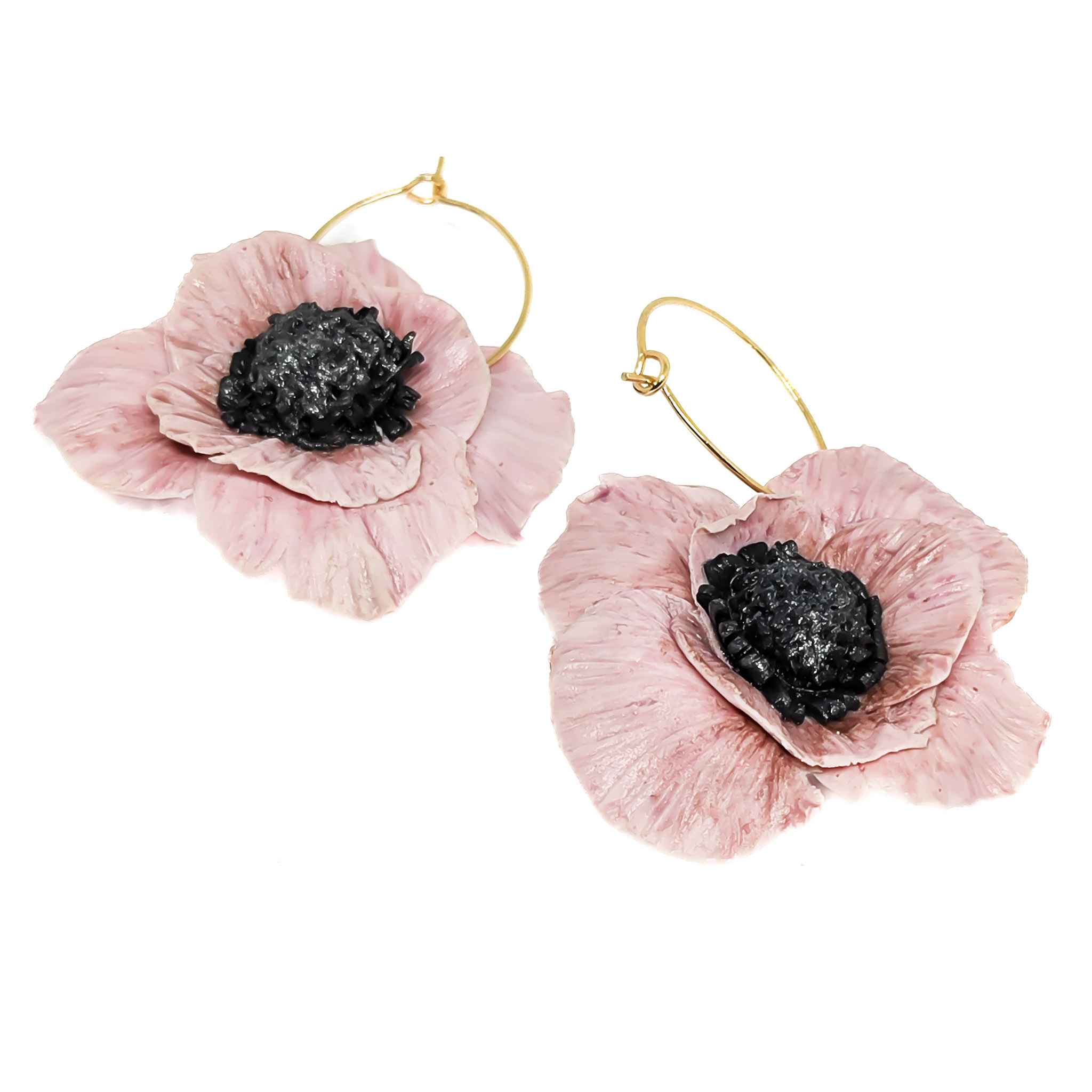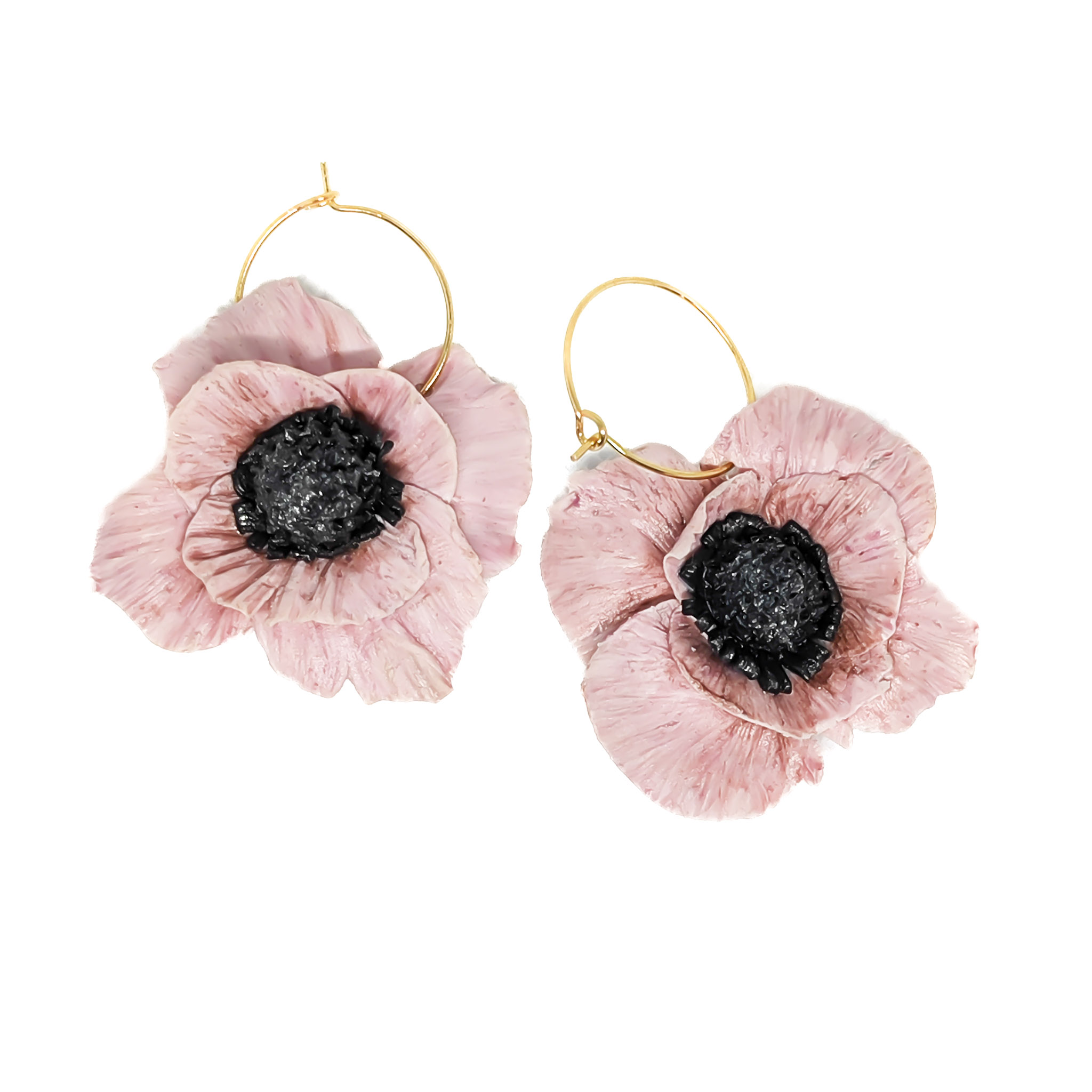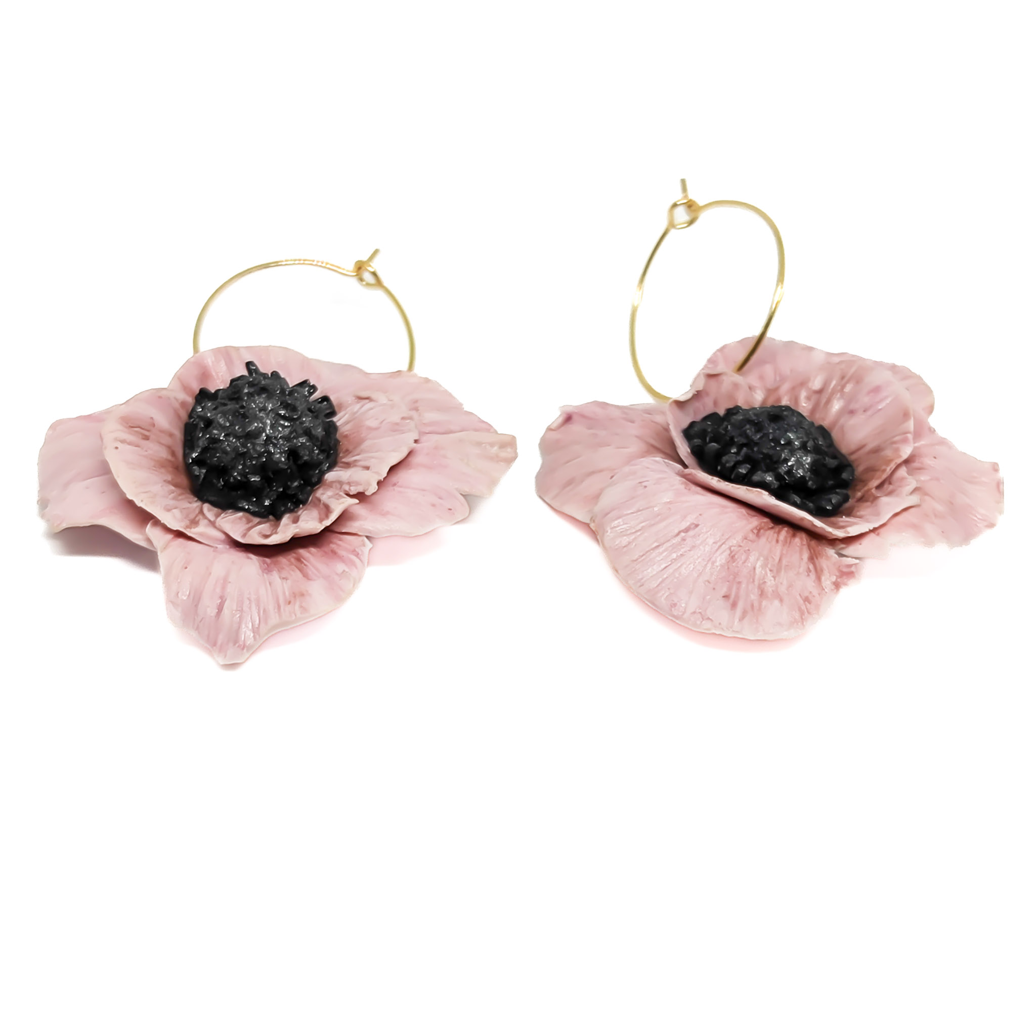 Χειροποίητα σκουλαρίκια λουλούδια ανεμώνη σε παστέλ ροζ χρώμα, φτιαγμένα και ζωγραφισμένα 100% στο χέρι από πολυμερικό πηλό. Διαθέτουν επιχρυσωμένο κρίκο από υποαλλεργικό ανοξείδωτο ατσάλι και είναι βερνικωμένα με gloss για προστασία και αντοχή. Ελαφριά και κομψά, ιδανικά για κάθε περίσταση.