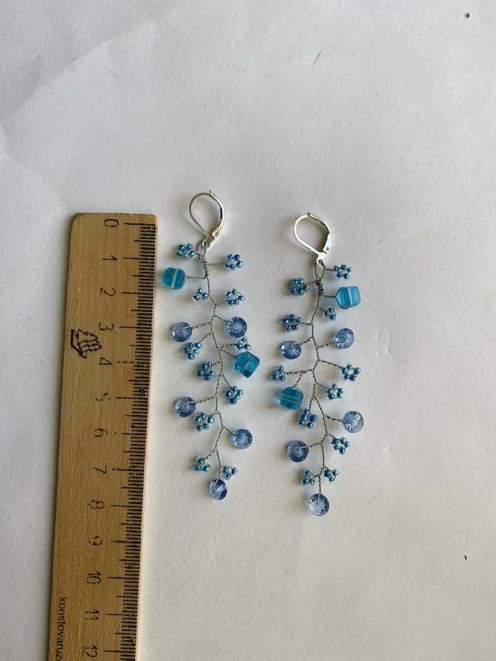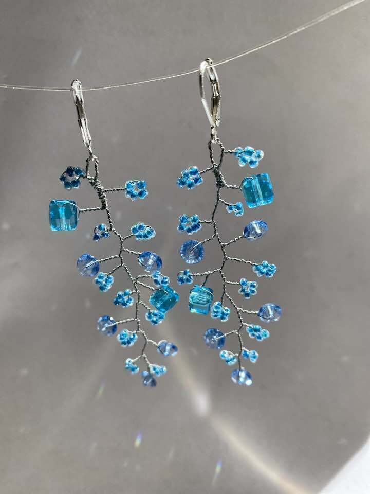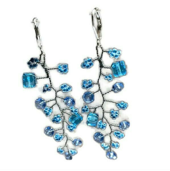 Σκουλαρίκια με Σύρμα και Χάντρες σε Γαλάζιο Χρώμα