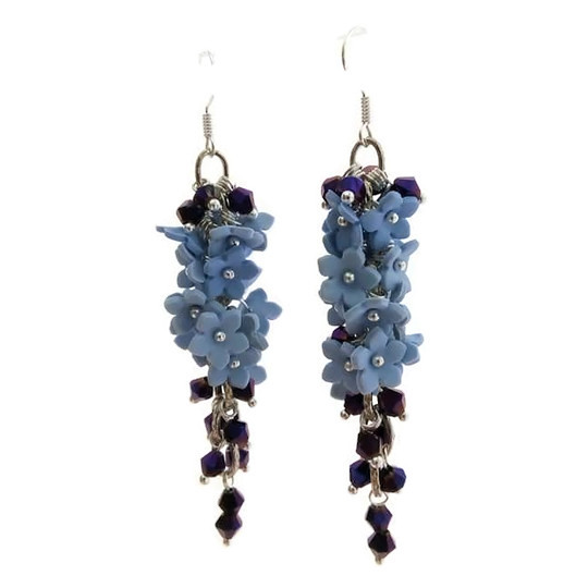 Σκουλαρίκια Κρεμαστά από Πολυμερικό Πηλό | Γαλάζια Λουλούδια