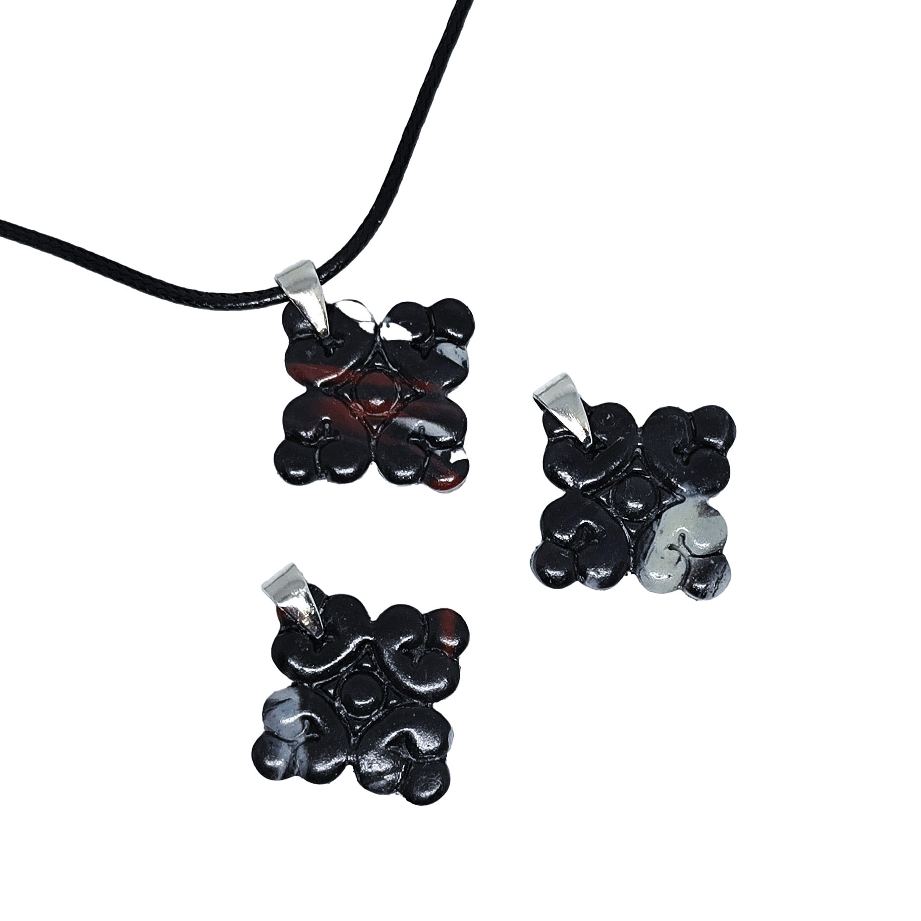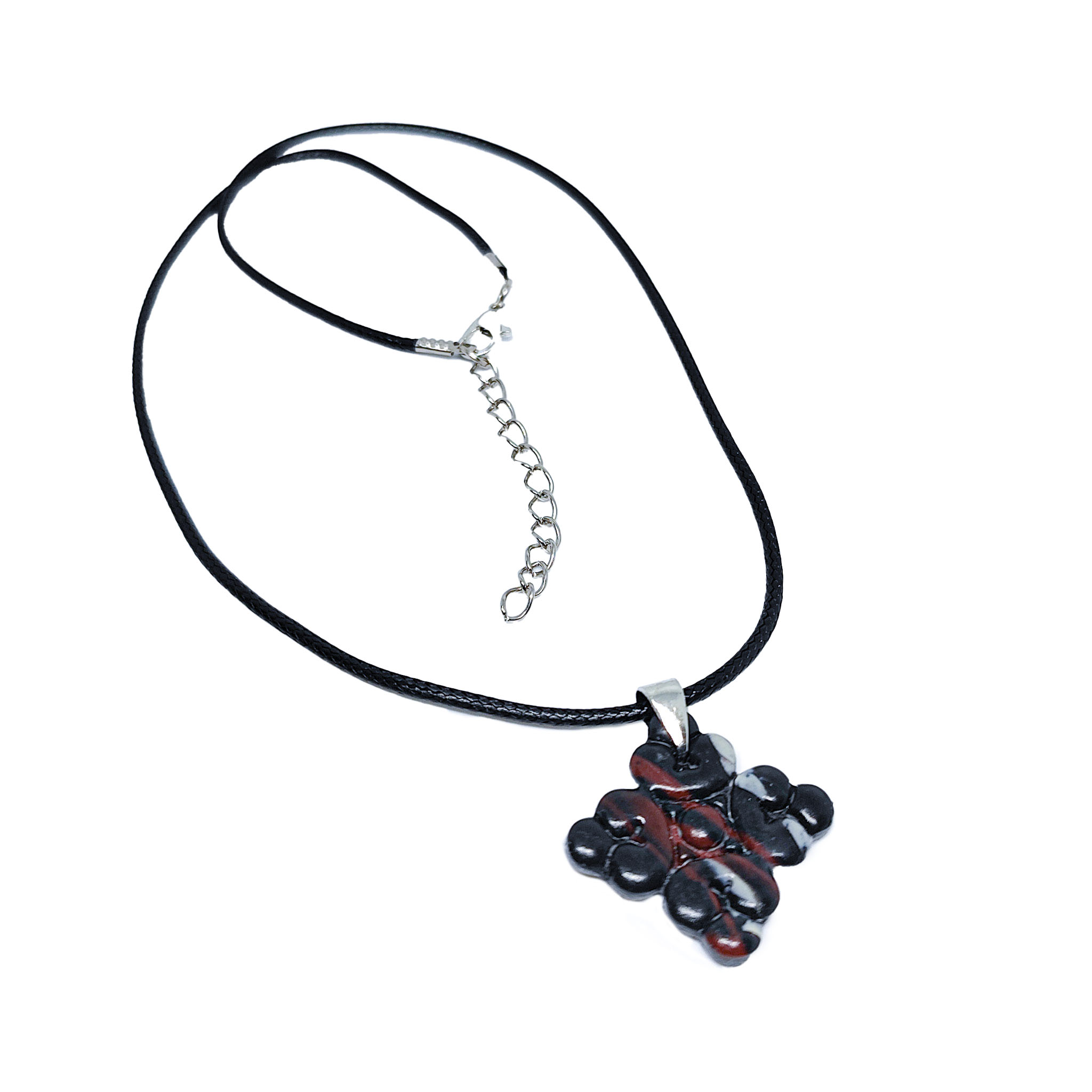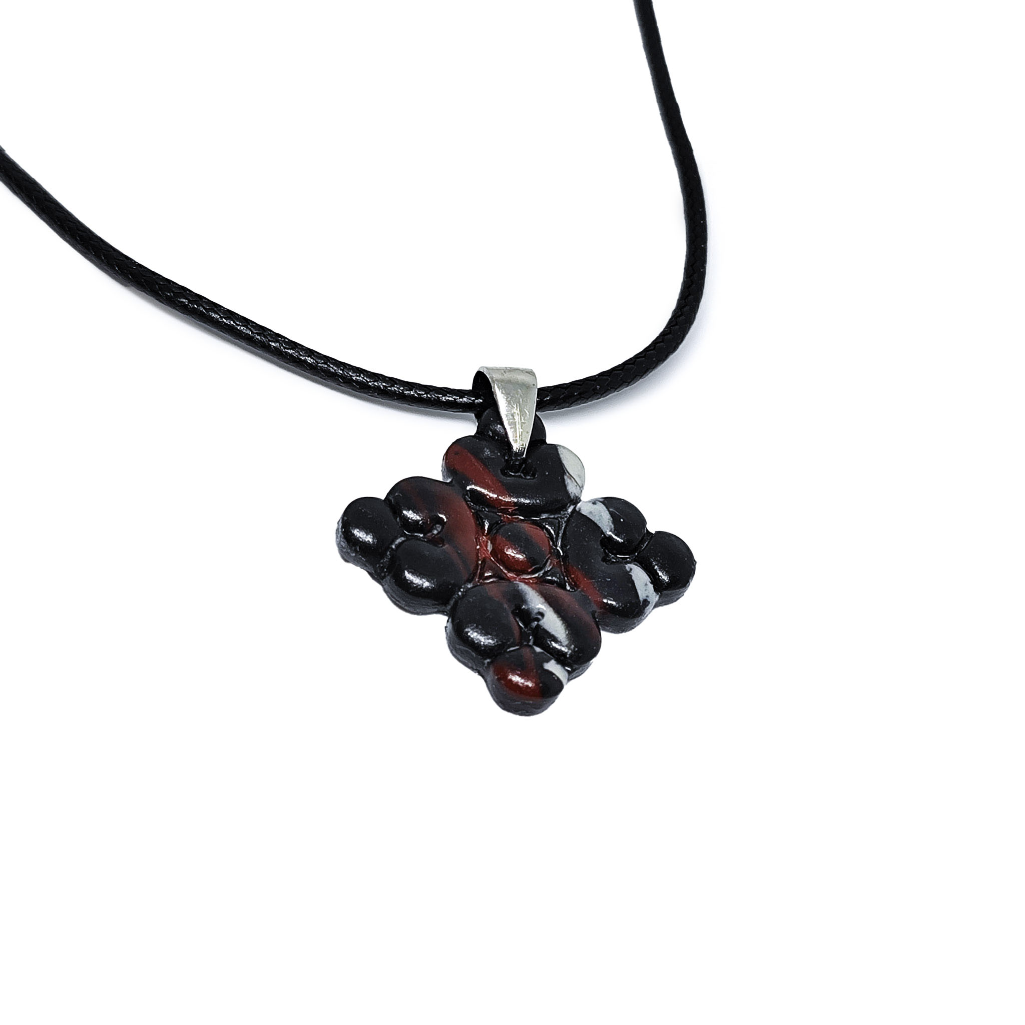 Το κολιέ “Baroque” είναι ένας κομψός σταυρός κατασκευασμένος από πολυμερικό πηλό σε αποχρώσεις μαύρο μπορντό και λευκό, με μαύρη λαγάρα (ανοξείδωτο ατσάλι) . Ο σταυρός έχει gloss βερνίκι για μεγαλύτερη προστασία και αντοχή. Είναι εξαιρετικά ελαφρύ.
