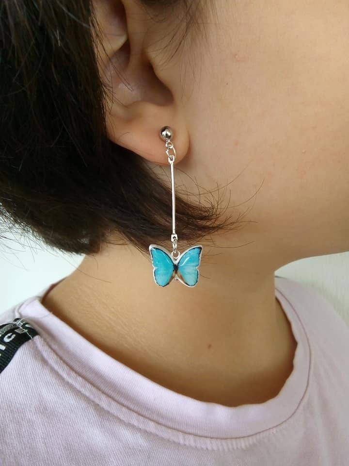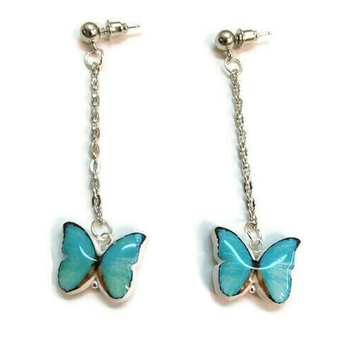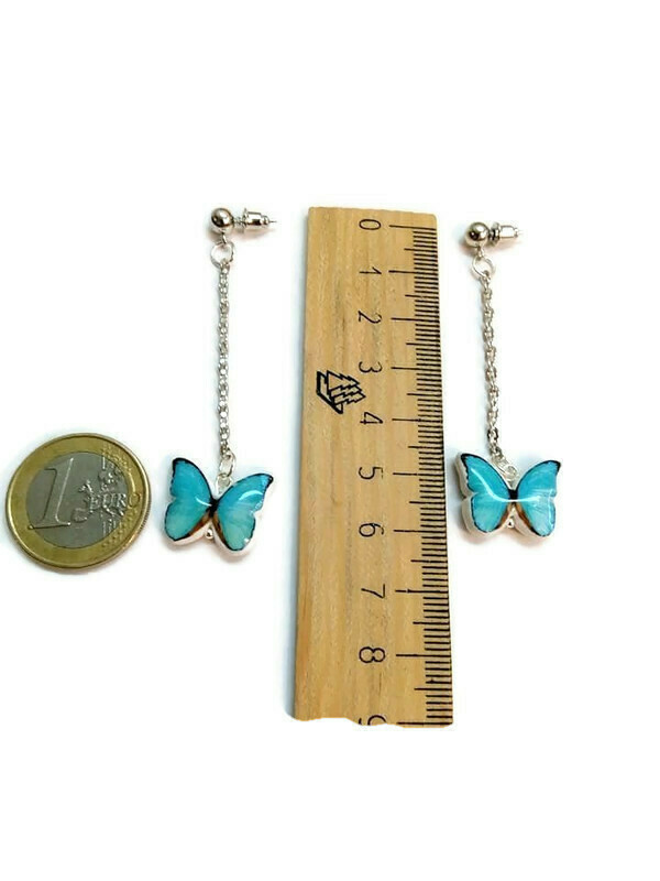 Σκουλαρίκια καρφωτα, γυναικεία, χειροποίητα από πολυμερικό πηλό σε σχήμα πεταλούδας με υγρό γυαλί . Και από τις δυο μεριές σε σχήμα πεταλούδας. Ο πολυμερικός πηλός είναι μη – τοξικός. Δεν θα πρέπει να χρησιμοποιείτε αρώματα ή άλλα καλλυντικά, που μπορεί να οδηγήσουν σε μόνιμη φθορά του κοσμήματος. Συνιστάται να φυλάτε τα κοσμήματα με πολυμερικό πηλό στο δικό τους κουτί. Ένα τόσο μοναδικό κόσμημα που σίγουρα θα εντυπωσιάσει! Είναι το καλύτερο δώρο για εσένα ή κάποιον αγαπημένο σου!