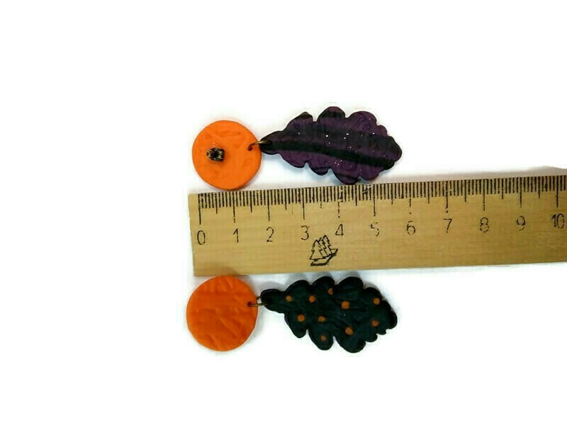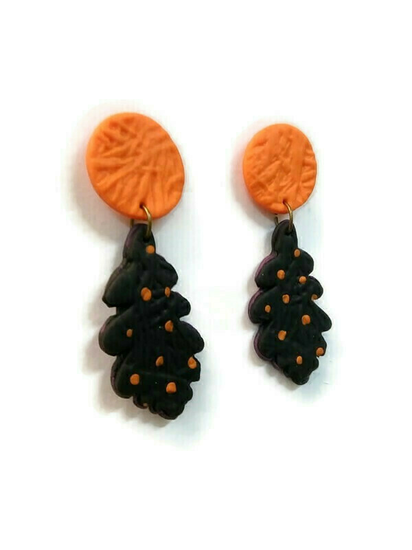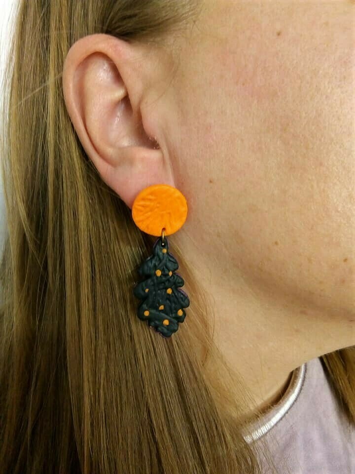 Καρφωτά σκουλαρίκια από πολυμερικό πηλό | Orange – Black
