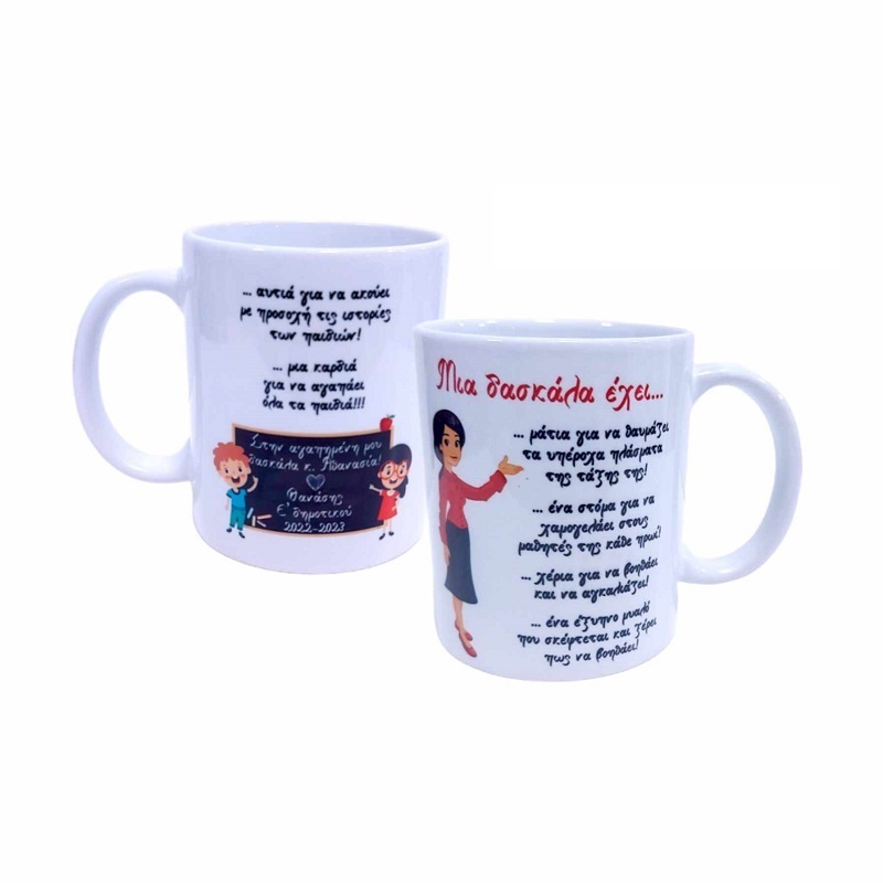 Κούπα 325ml για την αγαπημένη μας δασκάλα. Στα σχόλια γράψτε μας το όνομα του παιδιού και της δασκάλας.