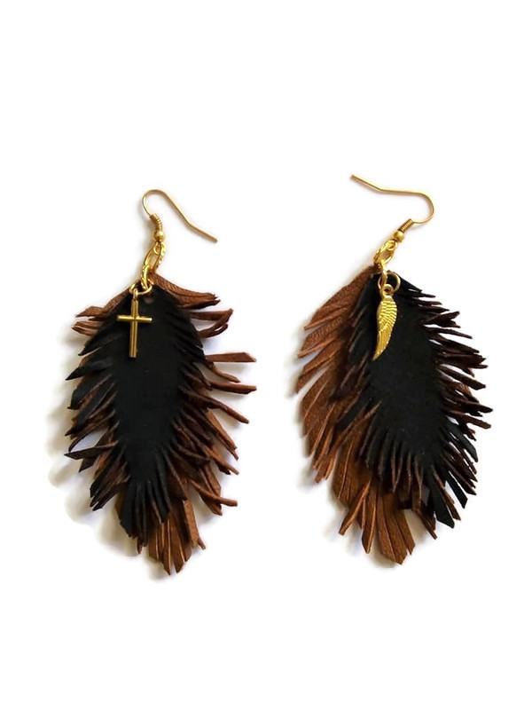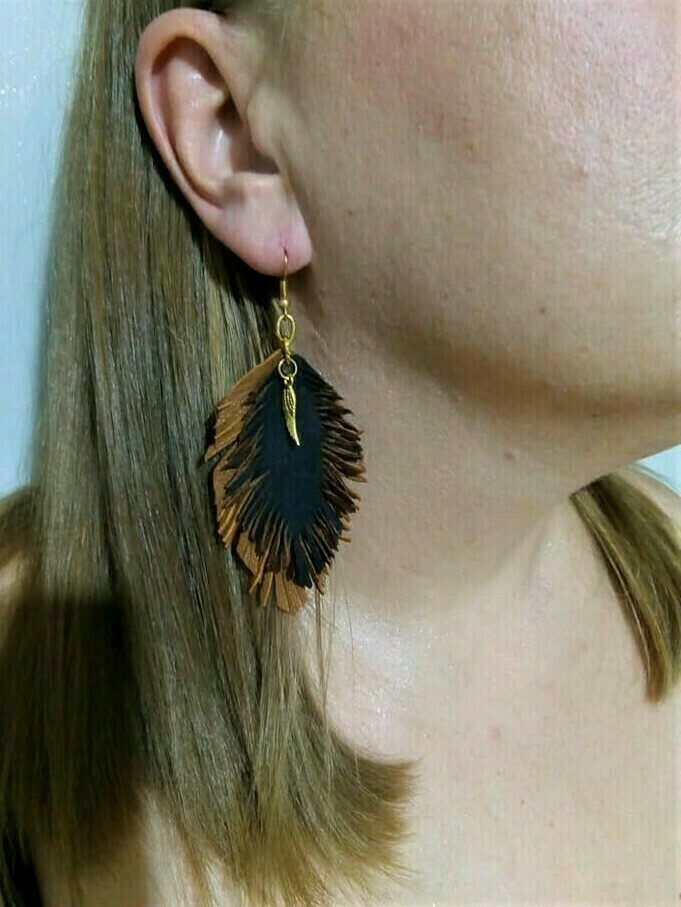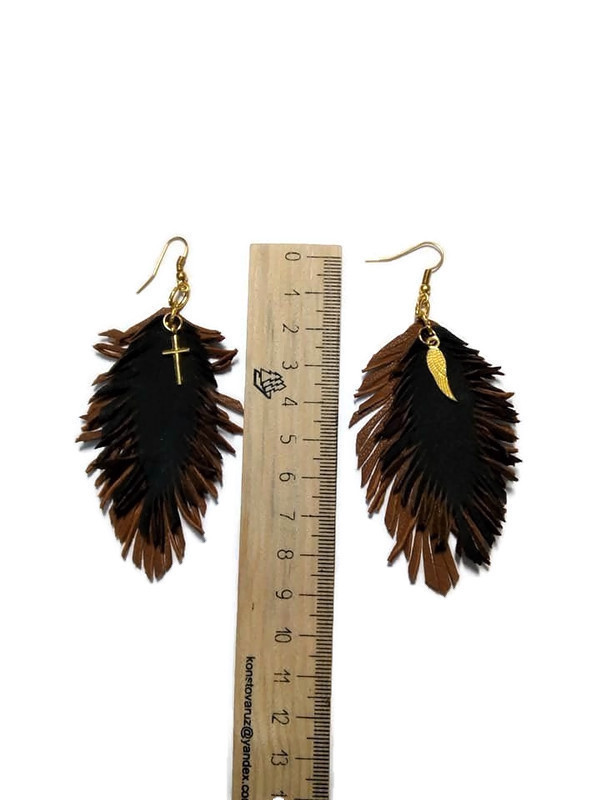 Πολύχρωμα δερμάτινα κρεμαστά εντυπωσιακά μακριά σκουλαρίκια σε κανελί-καφέ σκούρο χρώμα. Είναι μοντέρνο και νεανικό. 100% Χειροποίητο. Μπορείτε να το φορέσετε όλες τις ώρες. Boho. Ένα εντυπωσιακό χειροποίητο σκουλαρίκι που δίνει στυλ και λάμψη.