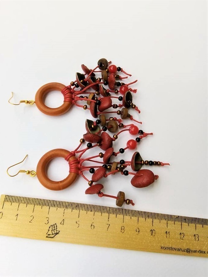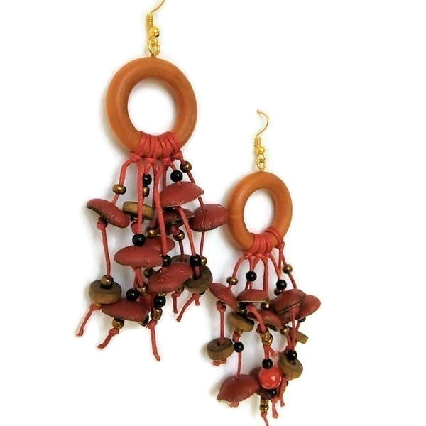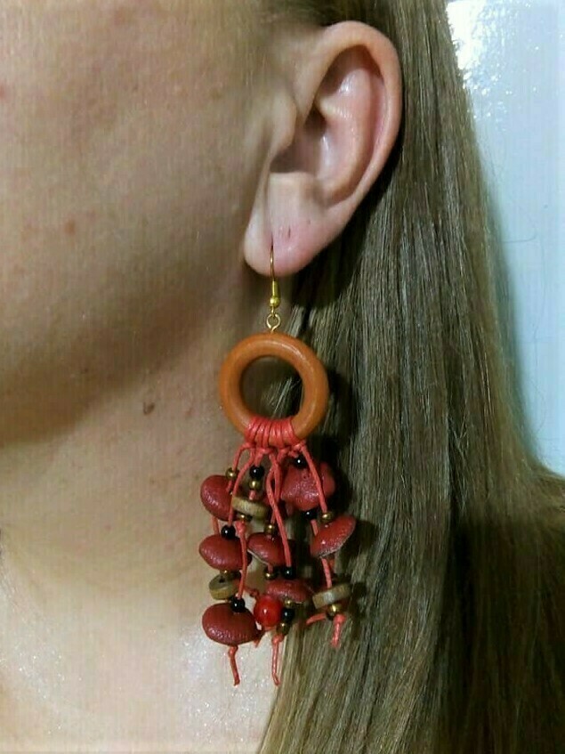 Ξύλινα κυκλικά σκουλαρίκια με δερμάτινα στοιχεία. Είναι μοντέρνο και νεανικό. 100% Χειροποίητο.Μπορείτε να το φορέσετε όλες τις ώρες. Σε χρώμα κόκκινο. Boho
