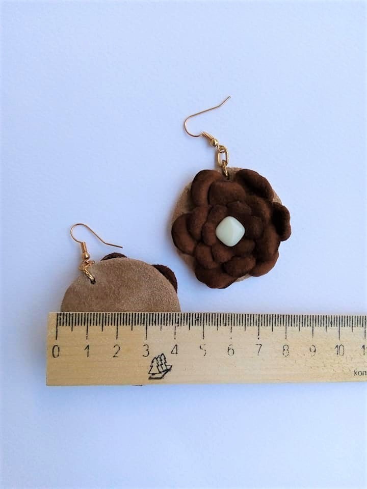 Δερμάτινα κυκλικά σκουλαρίκια. Είναι μοντέρνο και νεανικό. 100% Χειροποίητο. Μπορείτε να το φορέσετε όλες τις ώρες. Σε χρώμα καφέ-άσπρο. Boho. Mπορείτε να κάνετε σετ με παρόμοιο κολιέ. Ένα εντυπωσιακό χειροποίητο σκουλαρίκι που δίνει στυλ και λάμψη.