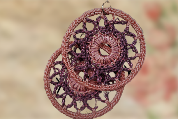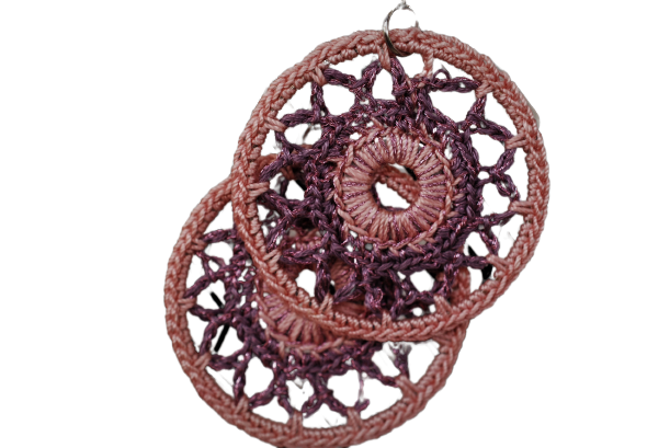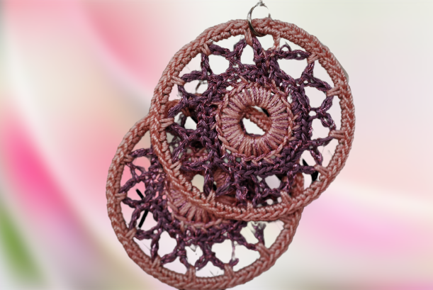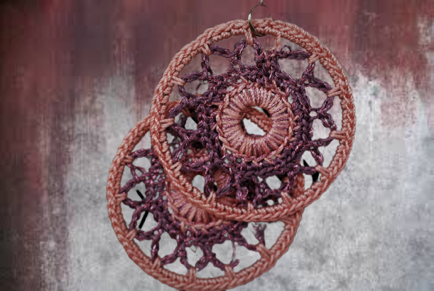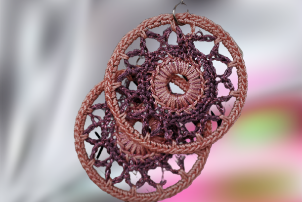 Χειροποίητα πλεκτά σκουλαρίκια με το βελονάκι και βαμβακερό νήμα σε διπλό κρίκο και συνδυασμό πρωτότυπων χρωμάτων. Ένα ιδιαίτερο σχέδιο και χρώμα για τρυπημένα αυτιά. Ταιριάζει σε όλα τα στυλ ντυσίματος.