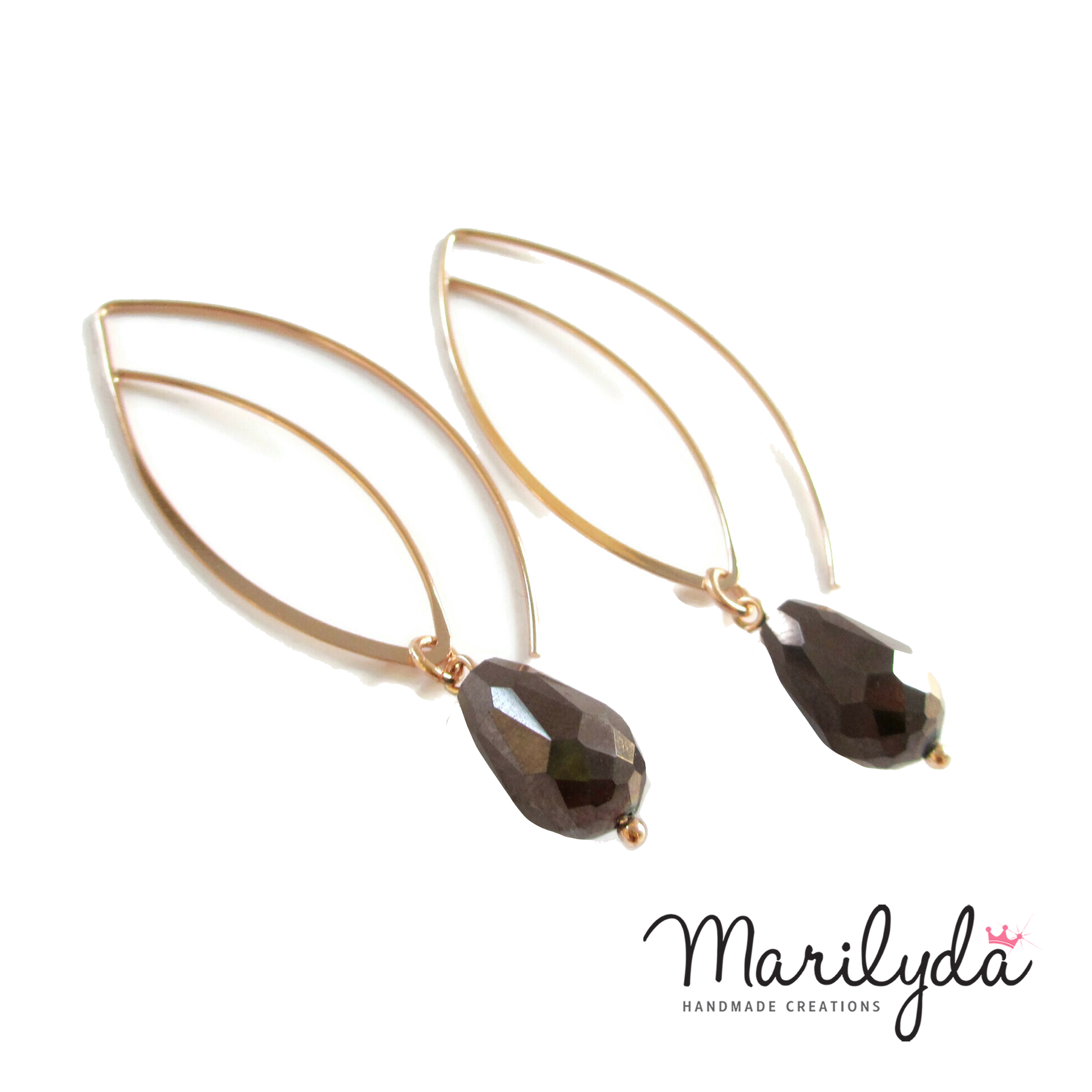 Ιδιαίτερα, κομψά, κρεμαστά σκουλαρίκια από επιχρυσωμένο ορείχαλκο, nickel free (αντιαλλεργικό) σε elegant rose gold χρώμα, με μαύρο ή μπρονζέ κρυσταλλάκι σε σχήμα δάκρυ.