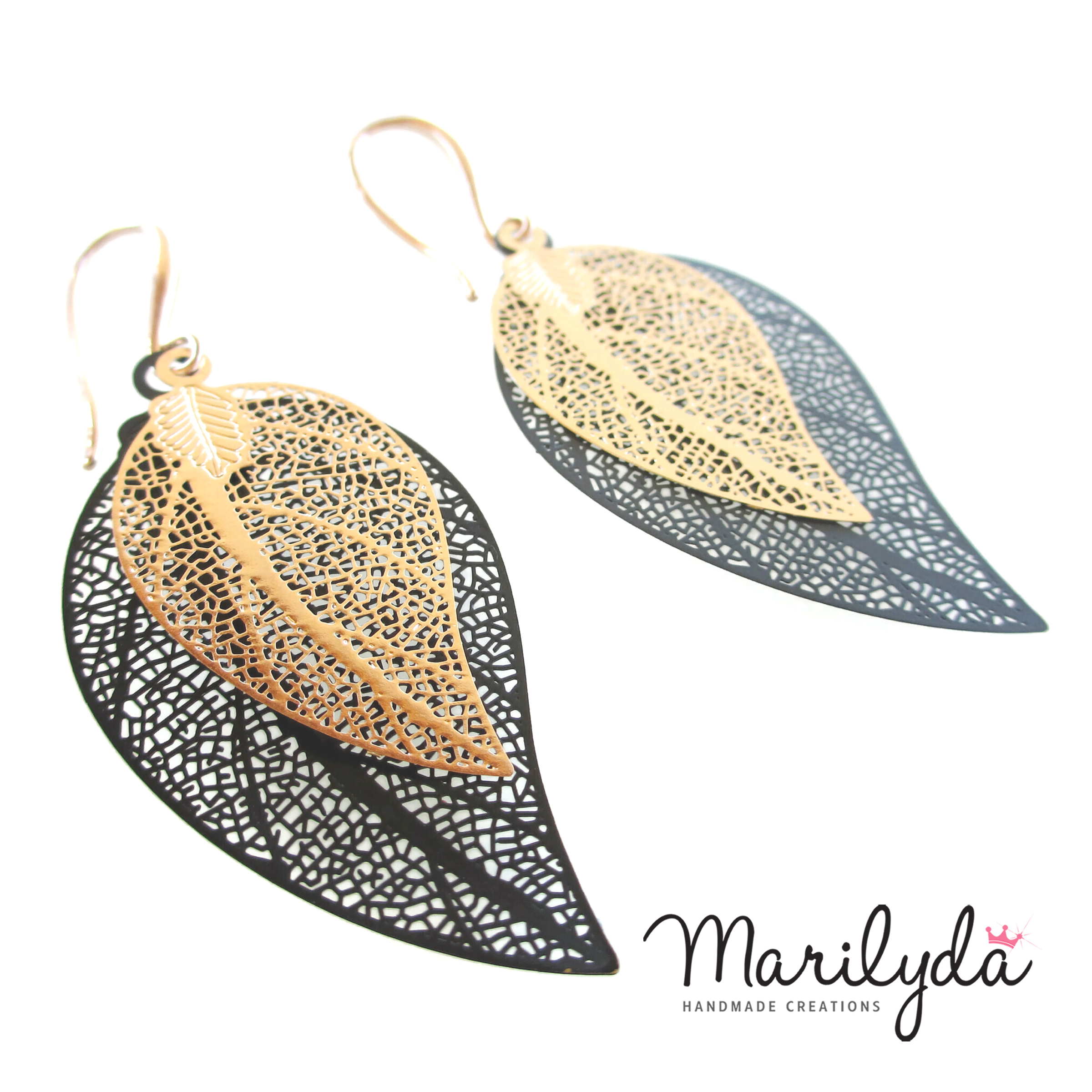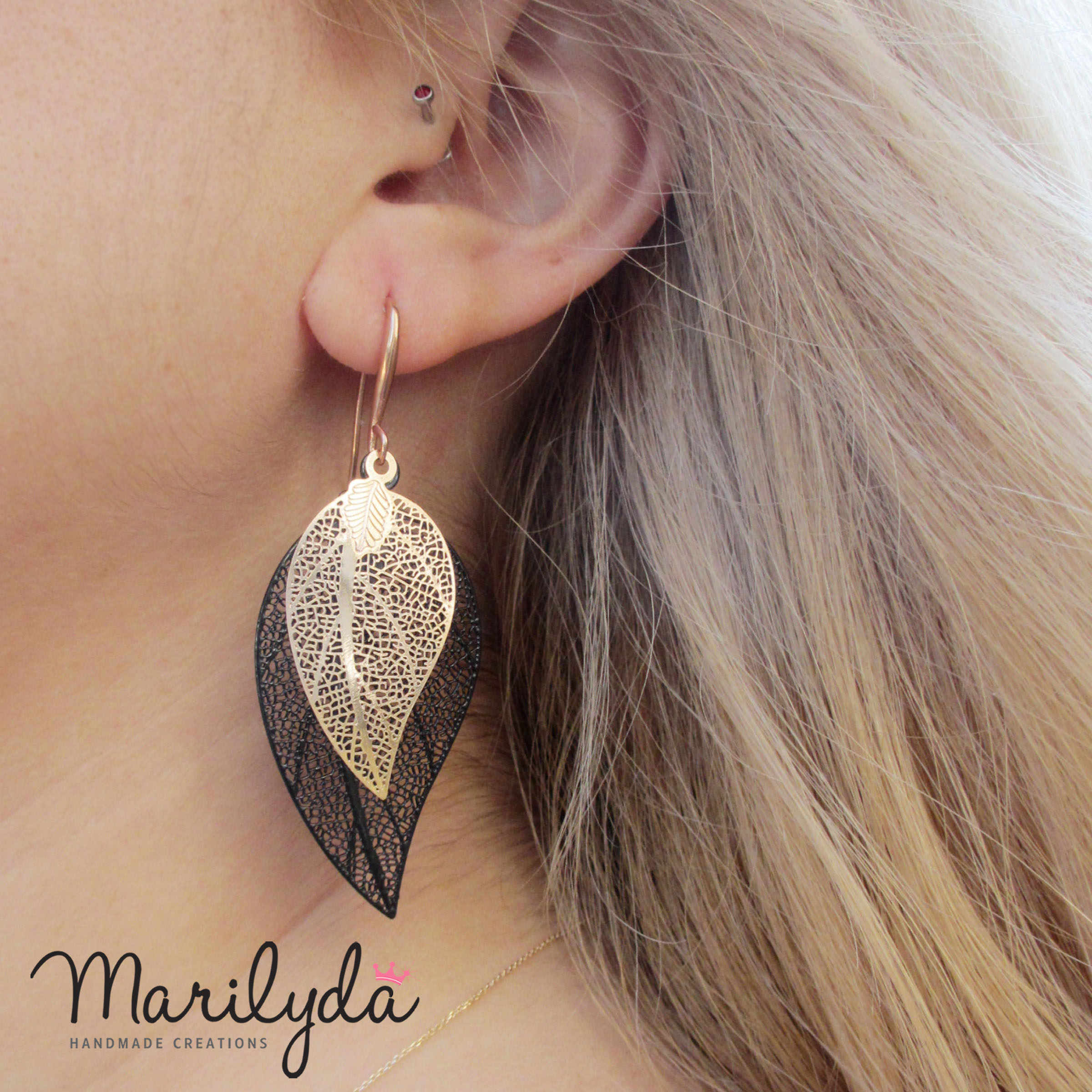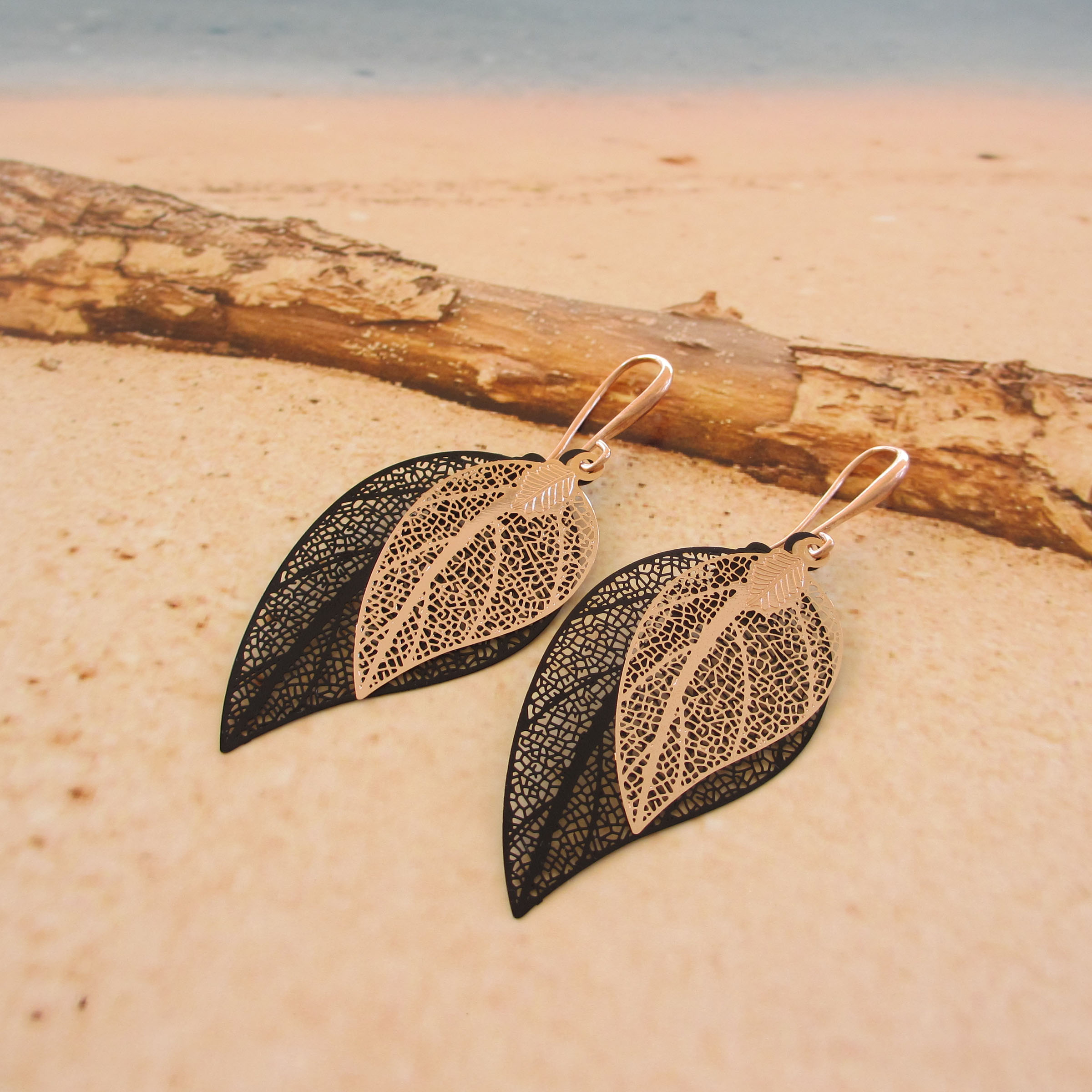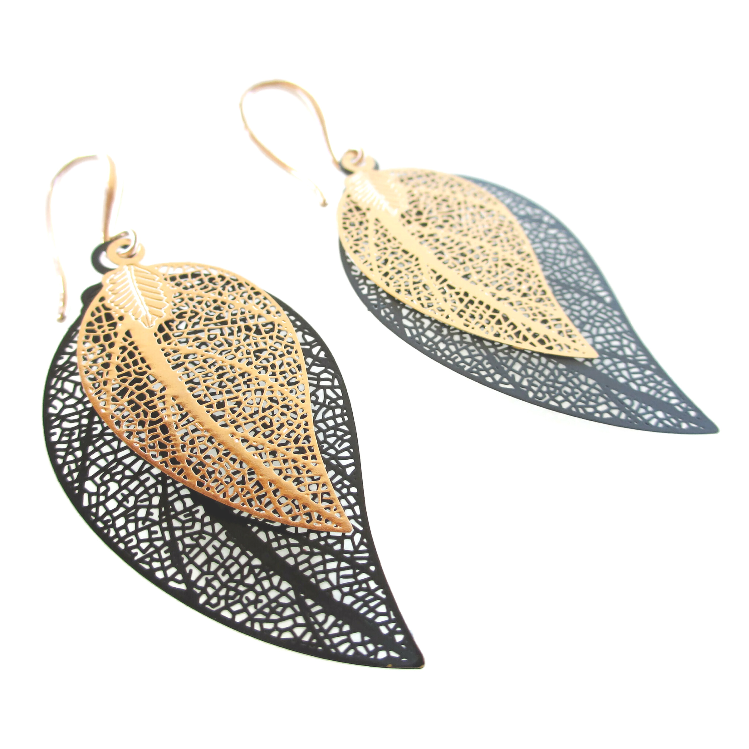 Σκουλαρίκια Filigree Leaf μαύρο