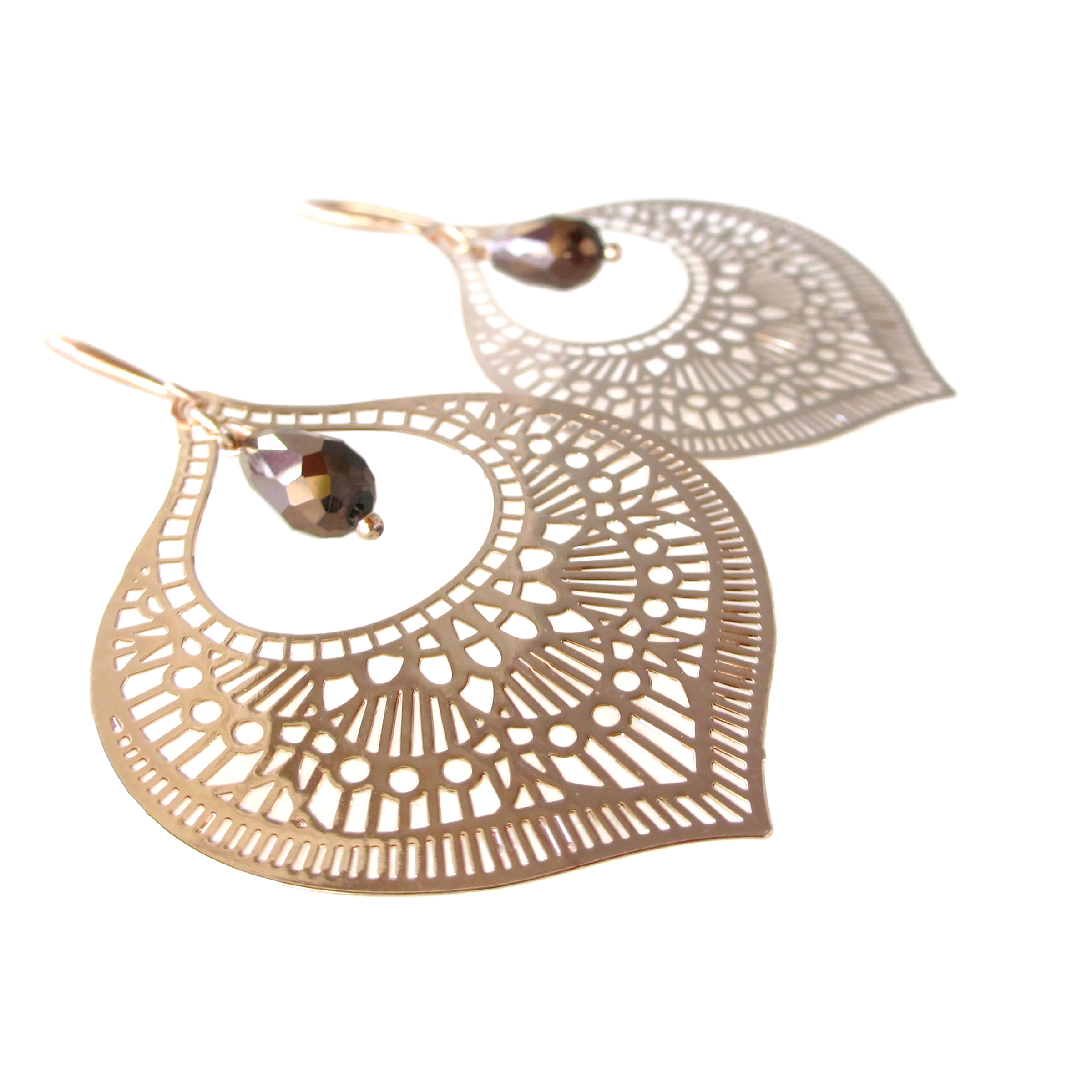 Rose gold boho σχέδιο με κρύσταλλο σε εκπληκτικές αποχρώσεις (μπρονζέ / μπορντώ / μαύρο) και βάση υποαλλεργική επίσης σε ροζ χρυσό χρώμα.