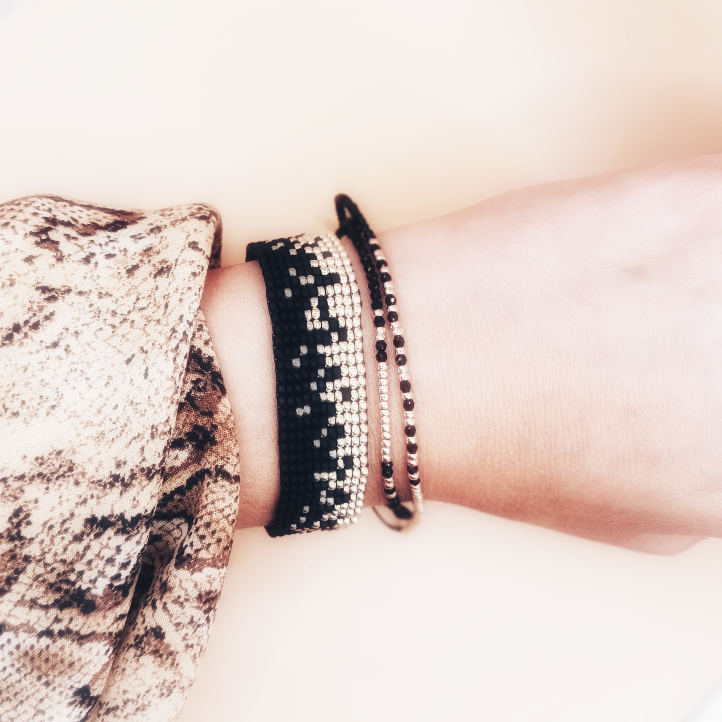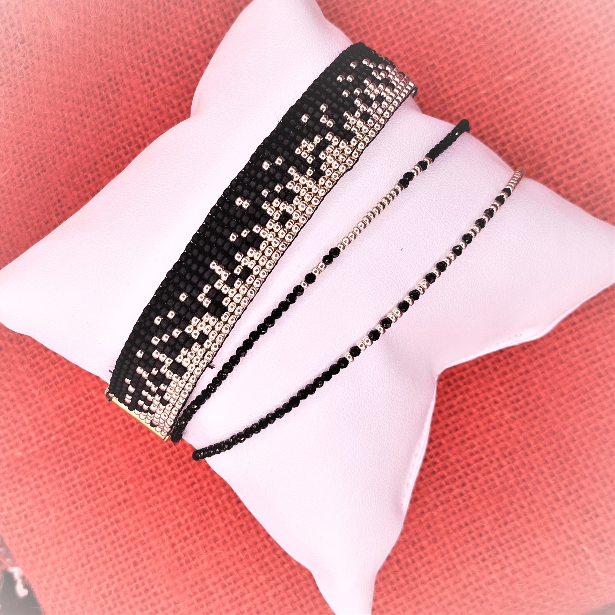 Βραχιόλι με γυάλινες χάντρες miyuki σε μαύρο ματ και γυαλιστερό χρυσό πλεγμένο στο χέρι 15εκ χ1,50.