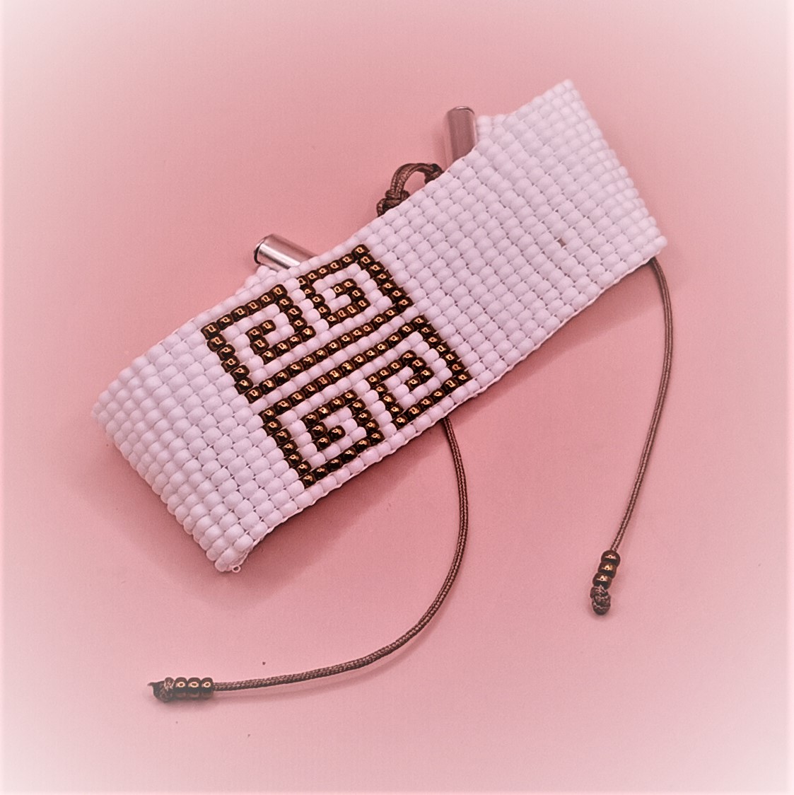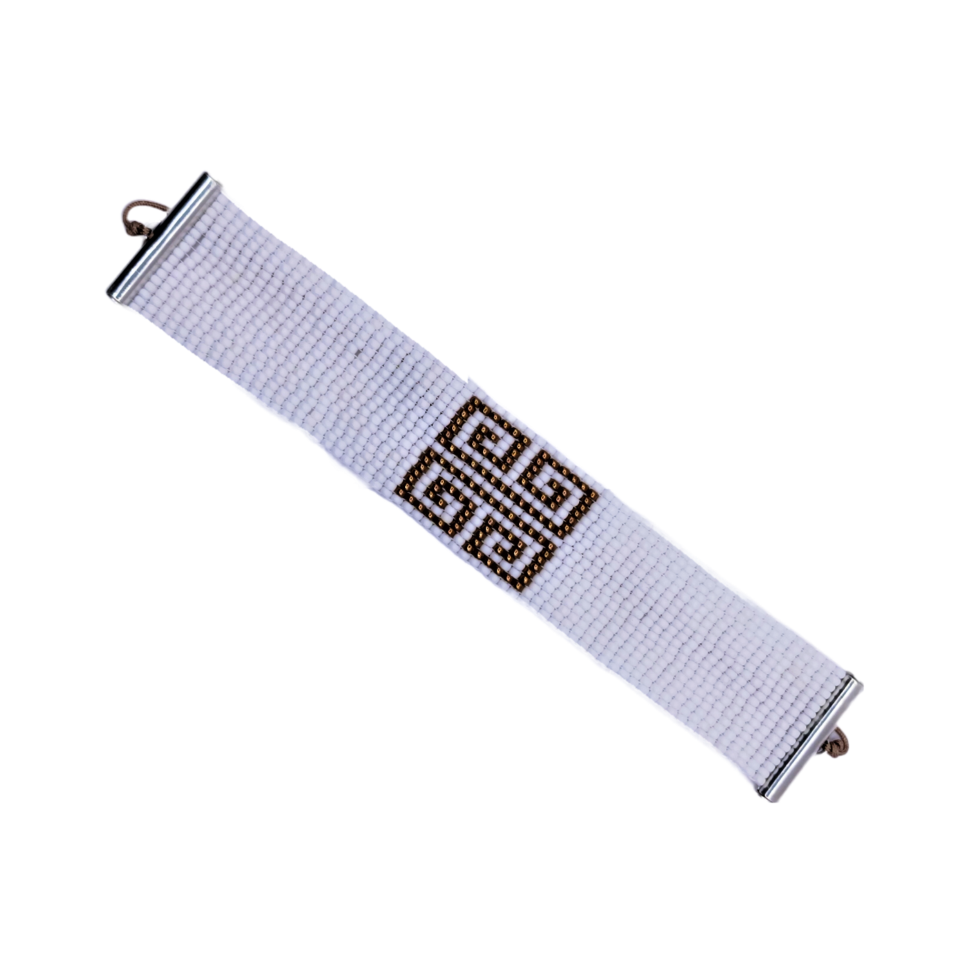 Φαρδύ εντυπωσιακό βραχιόλι με χρυσούς μαιάνδρους σε λευκό ματ φόντο (μοτίβο 14εκχ2,5εκ μπορεί να τροποποιηθεί κατόπιν επικοινωνίας).