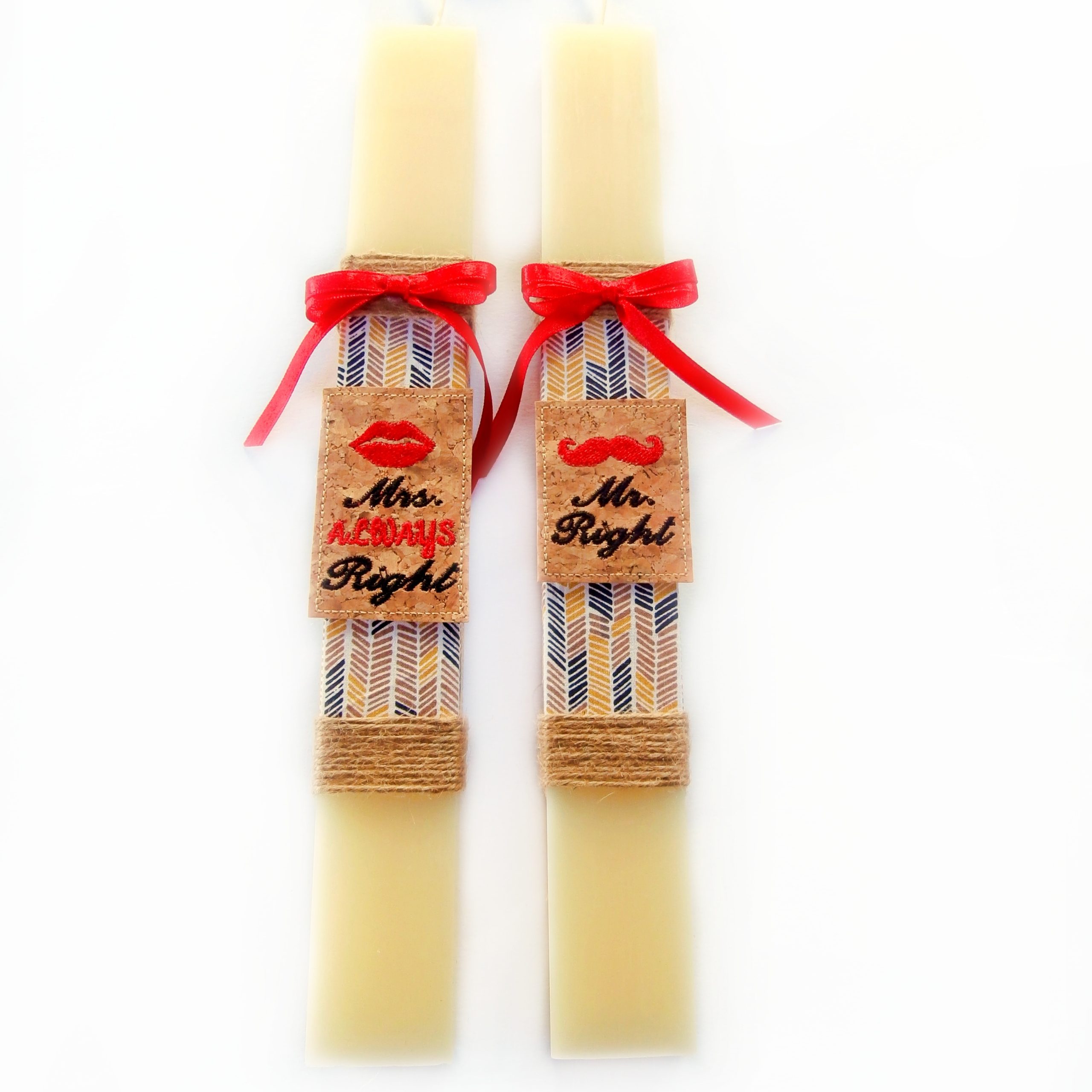 Πασχαλινές λαμπάδες για ζευγάρι “Mr Right” and “Mrs ALWAYS Right”