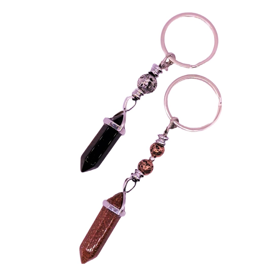 Ζευγάρι μπρελόκ με κρεμαστούς λίθους Χρυσόλιθου, Μάτι Τίγρης, Λάβας επιμεταλλωμένης σε ασημί και rust ιδανικό ζευγάρια.