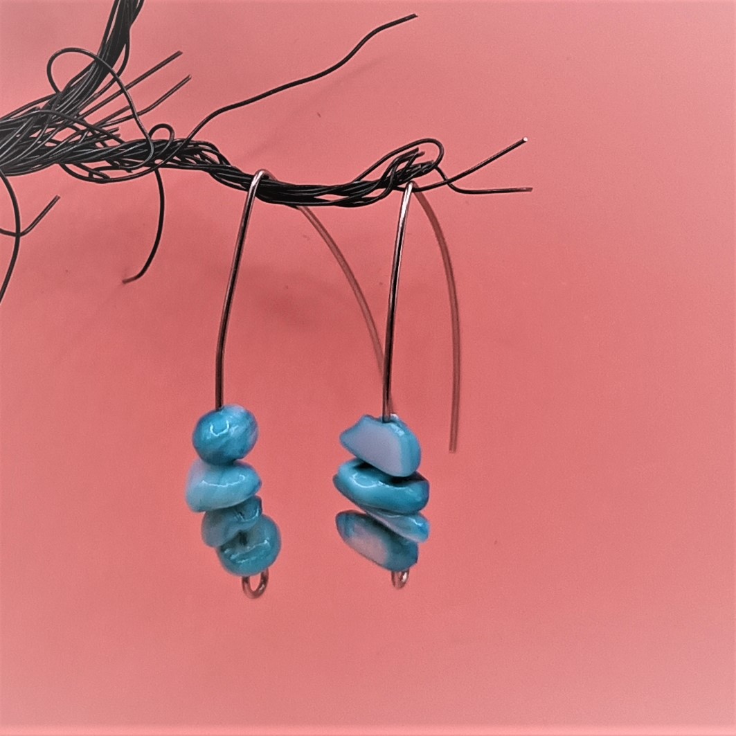 Σκουλαρίκια minimal τσιπς φίλντισι γαλάζιο
