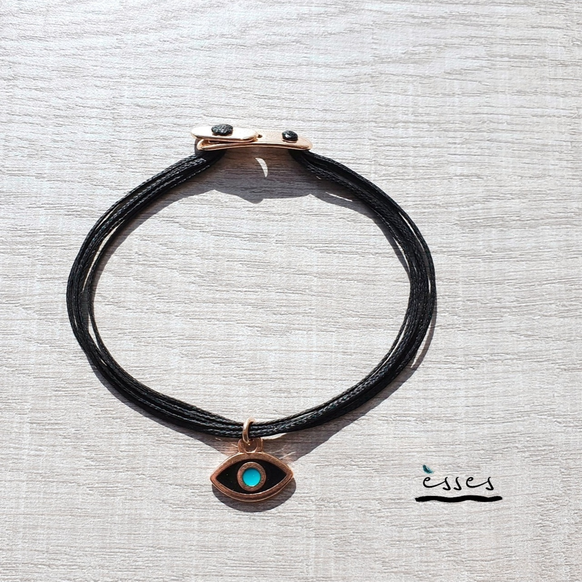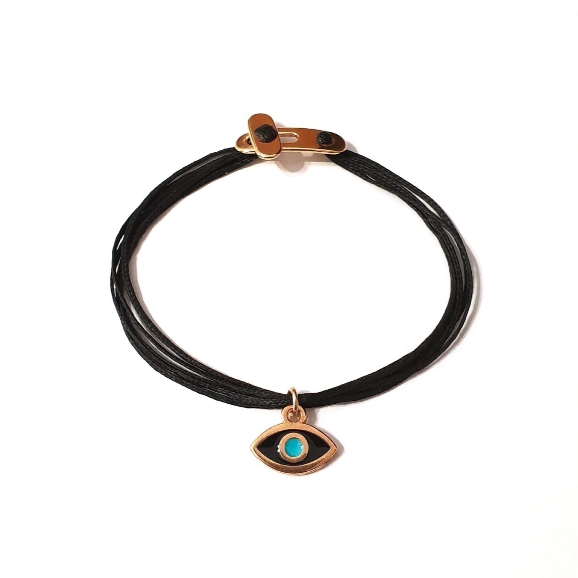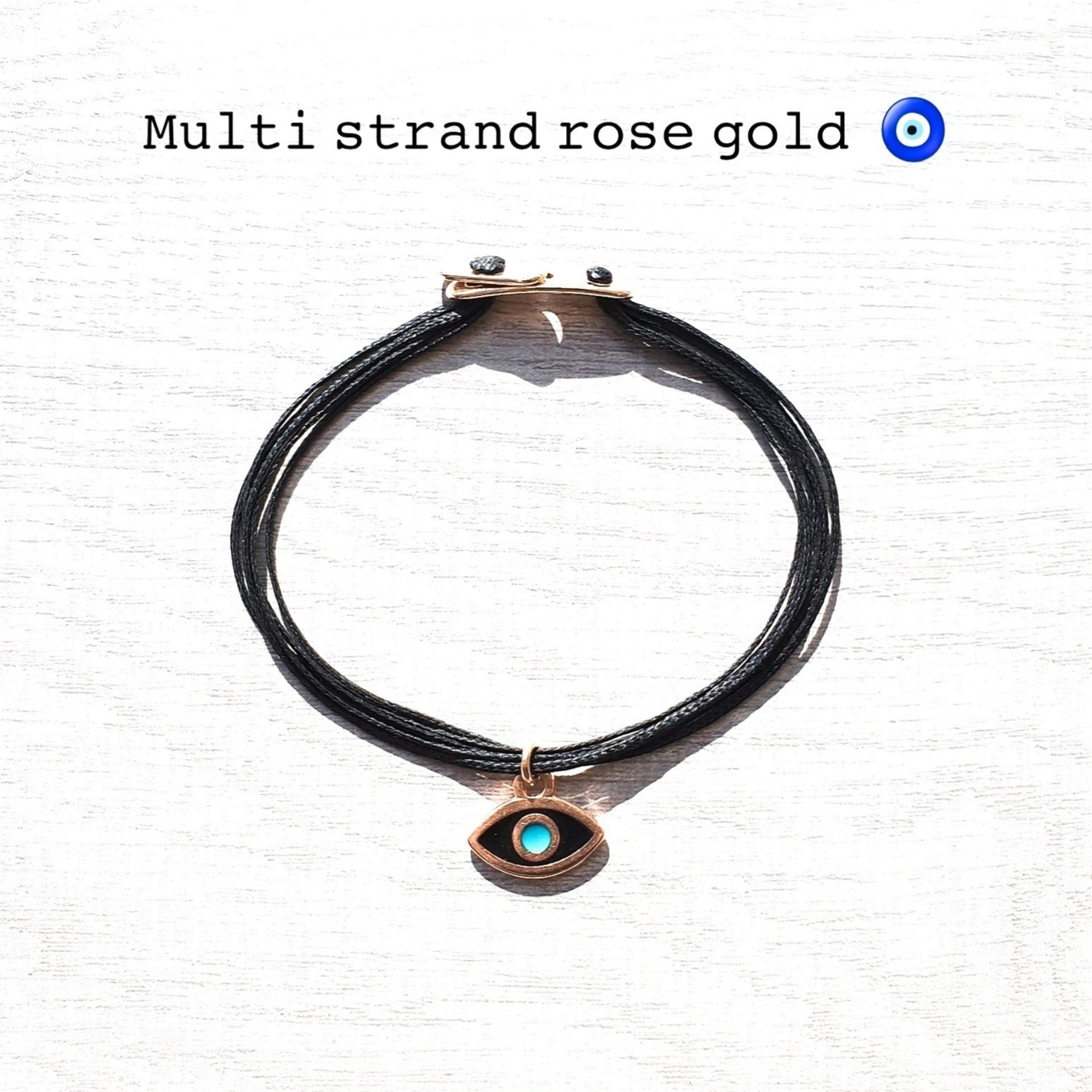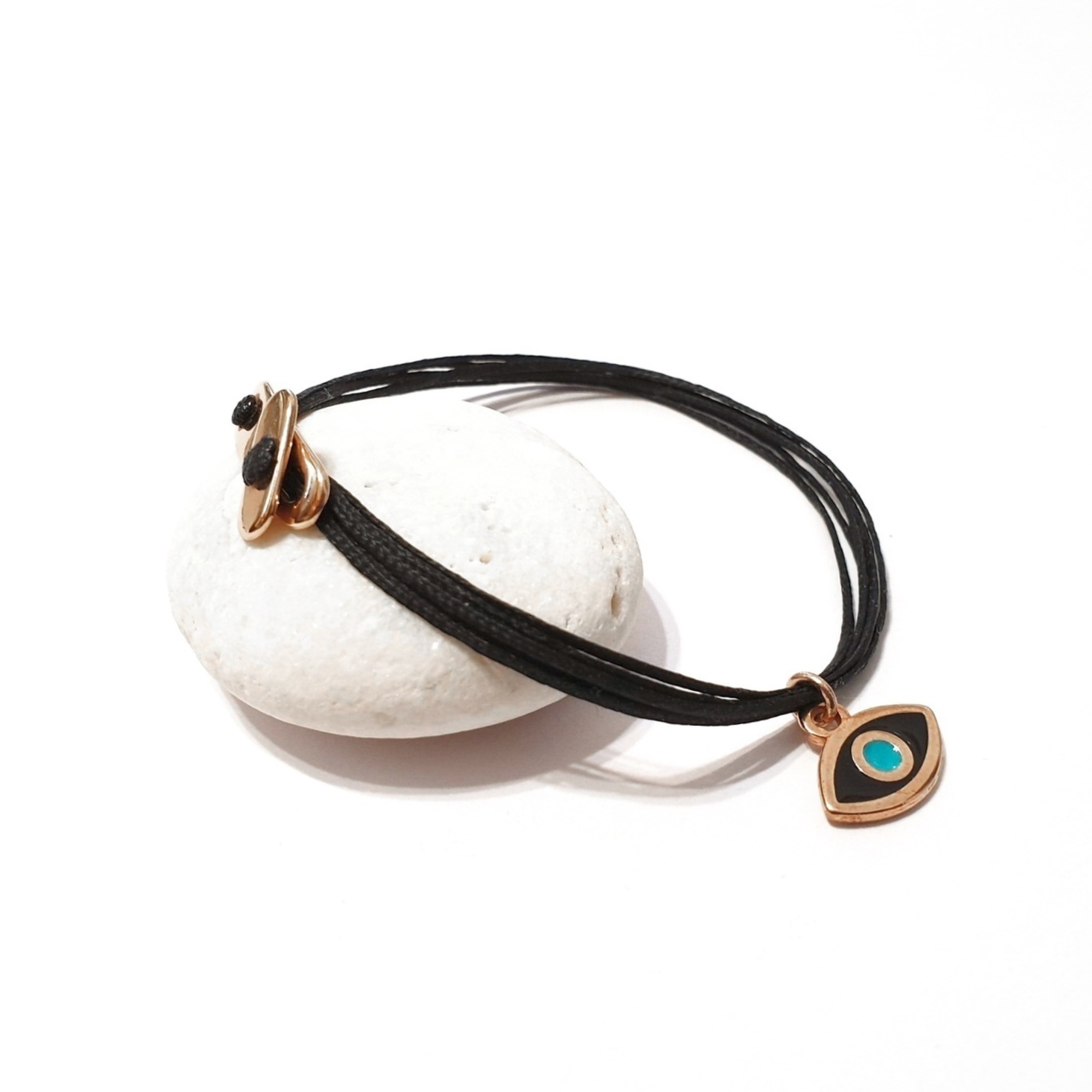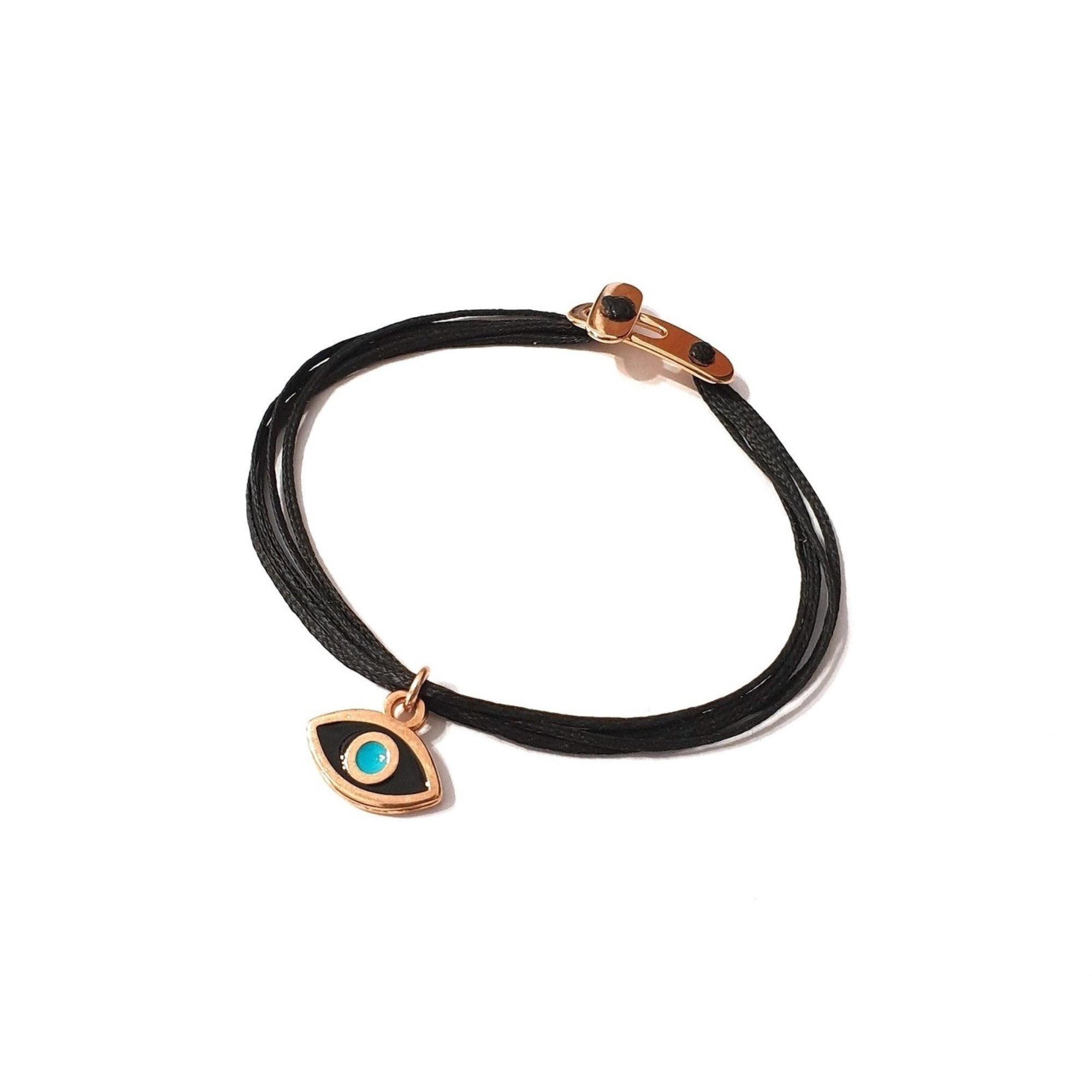 Βραχιόλι πολύσειρο μαύρο με ματάκι σε ροζ χρυσό χρώμα και σμάλτο