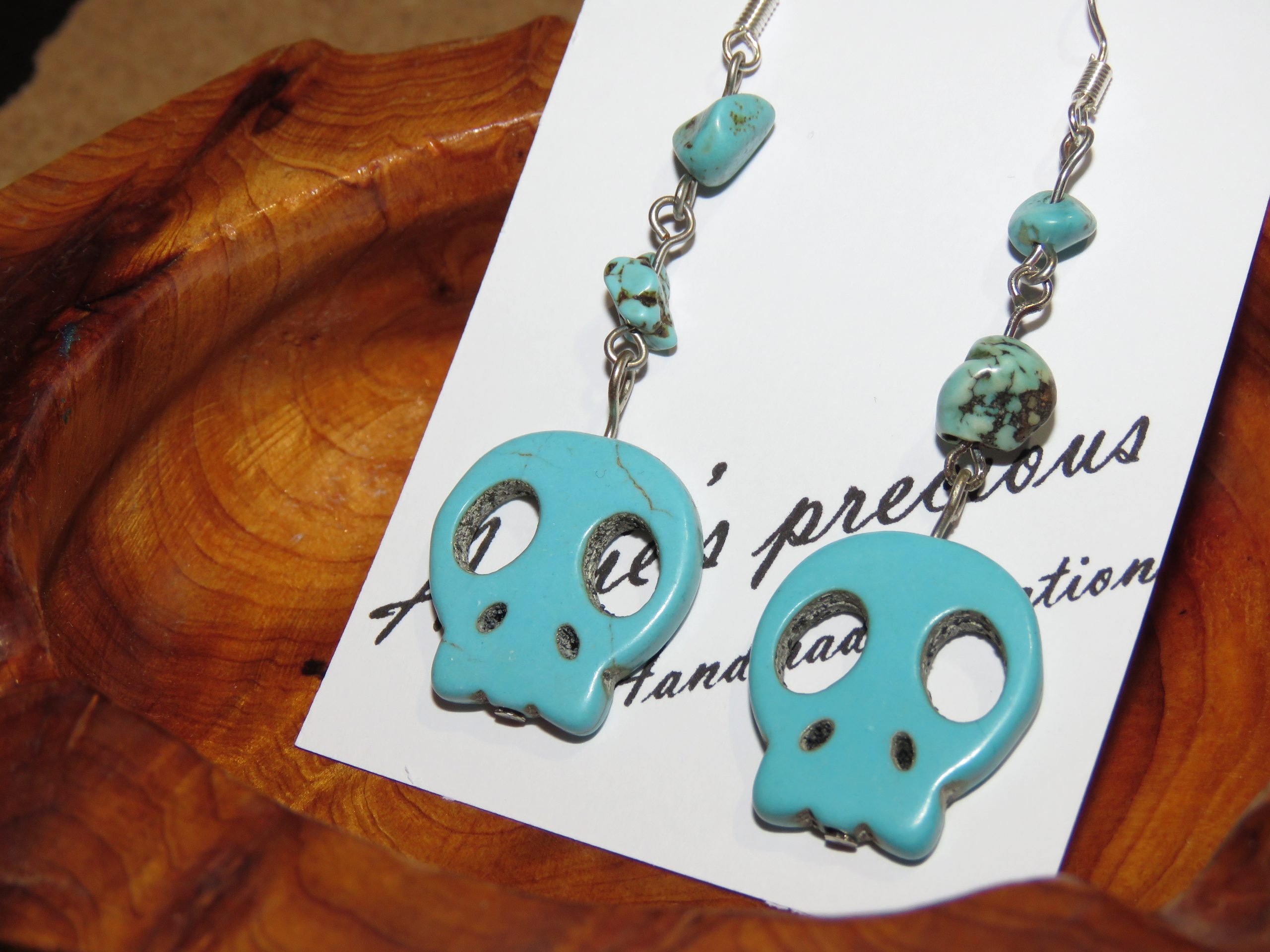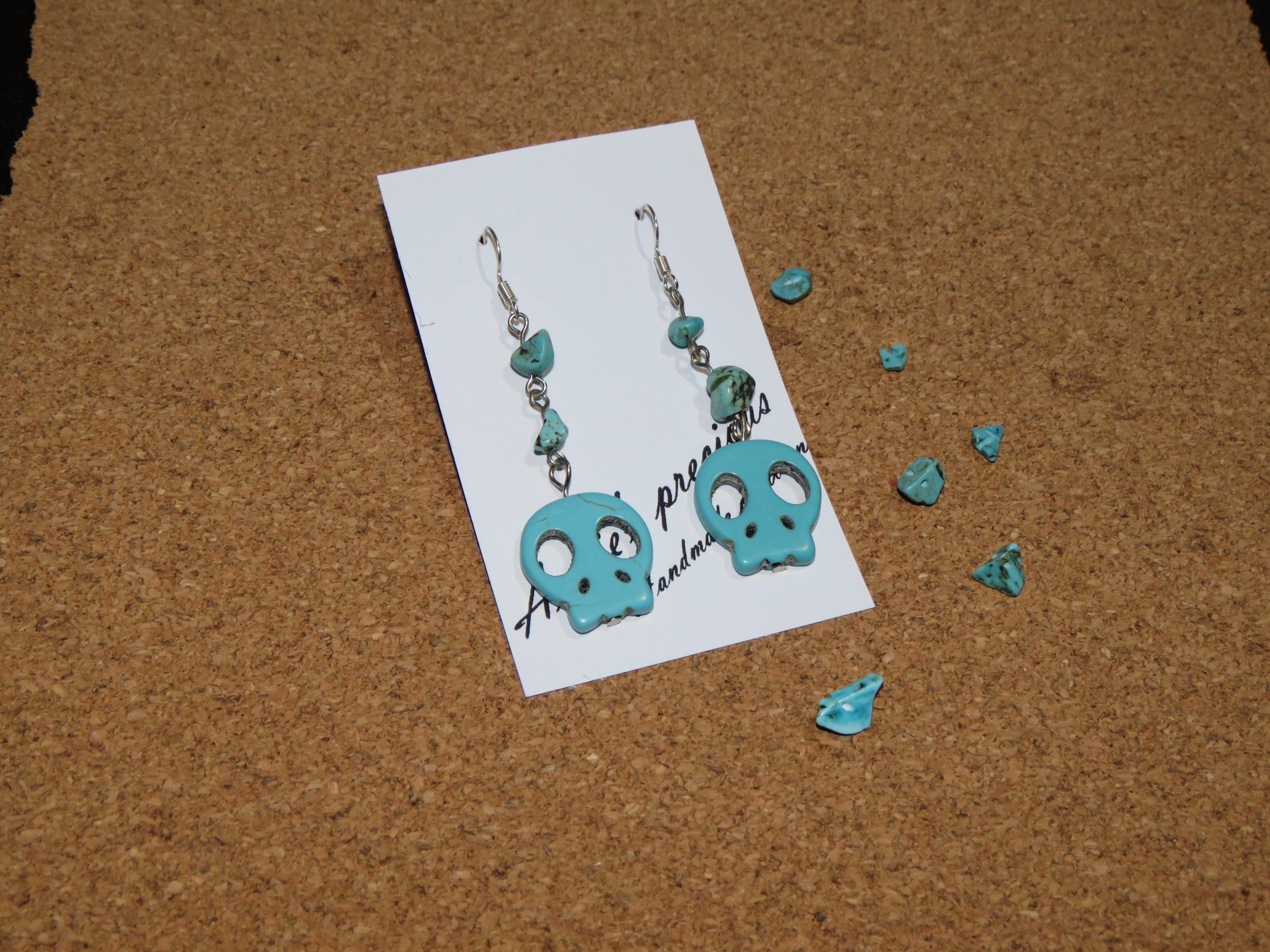Κρεμαστά σκουλαρίκια με ημιπολύτιμες πέτρες χαολίτη και τιρκουαζ μακριά