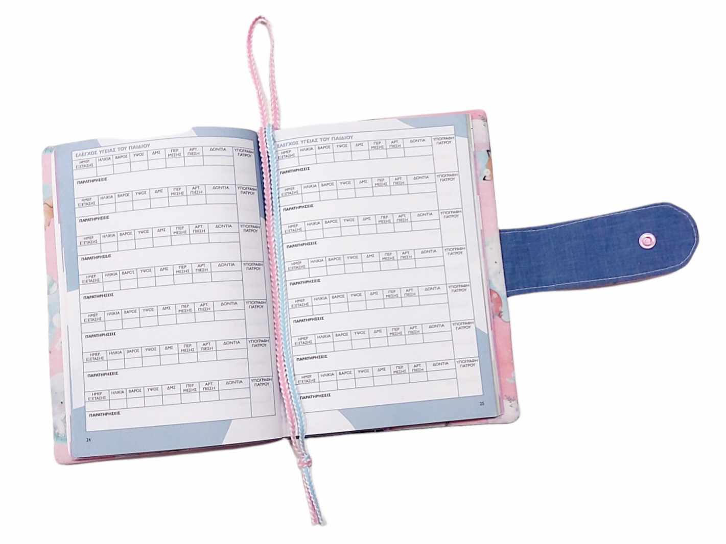 Υφασμάτινη θήκη βιβλίου ή βιβλιαρίου για να ντύσετε/ προστατέψετε το βιβλιάριο του παιδιού σας ή ακόμα και το λογοτεχνικό του βιβλίο.