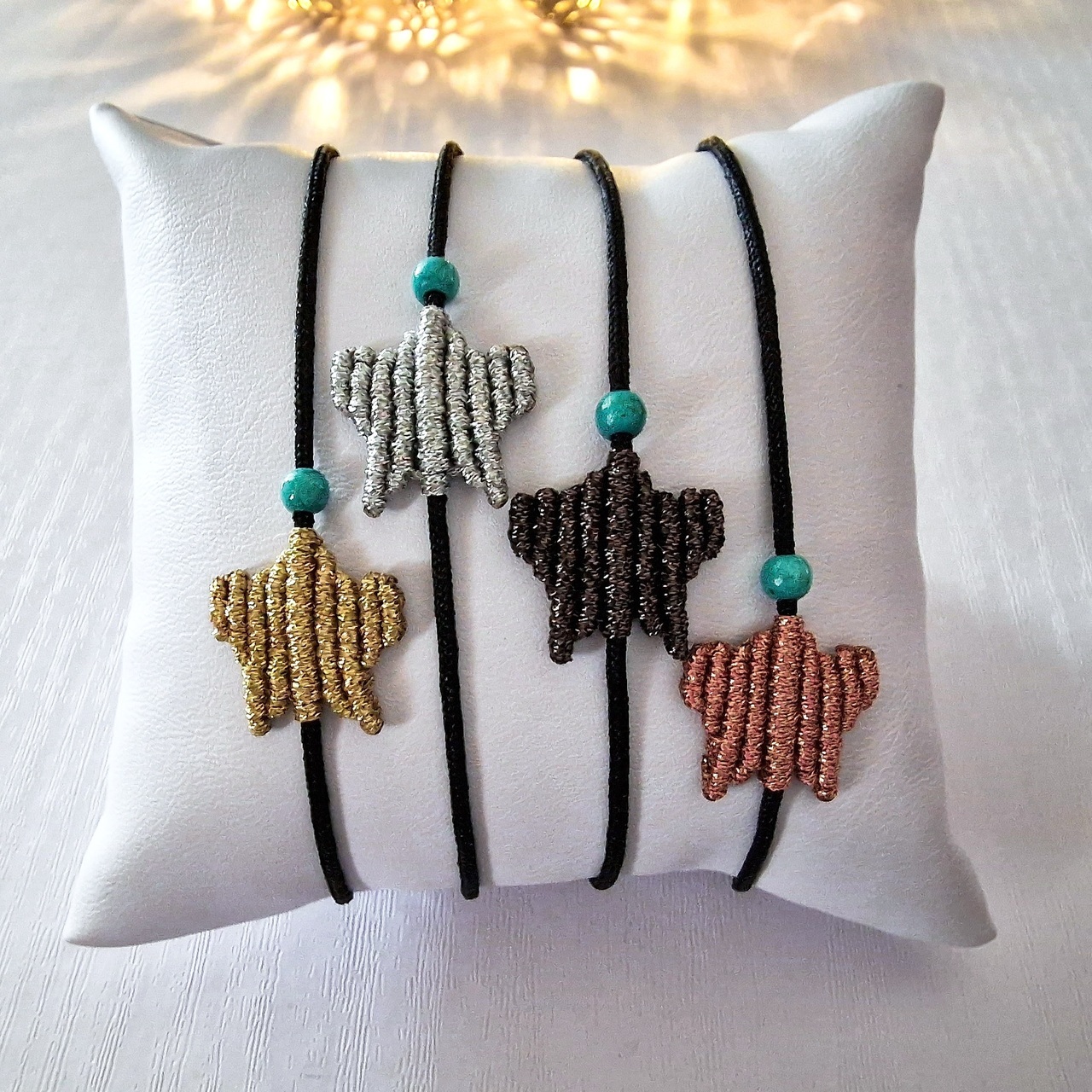 Βραχιόλι αστέρι μεταλιζέ χειροποίητο μακραμέ με χάντρα χαολίτη αυξομειούμενο