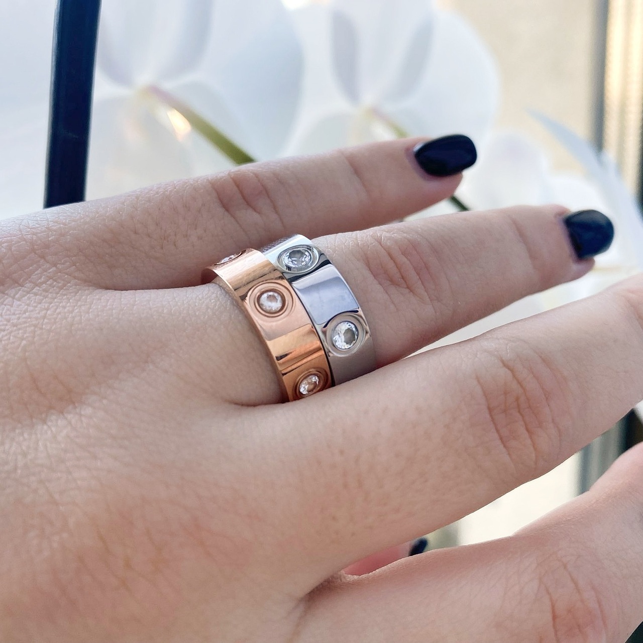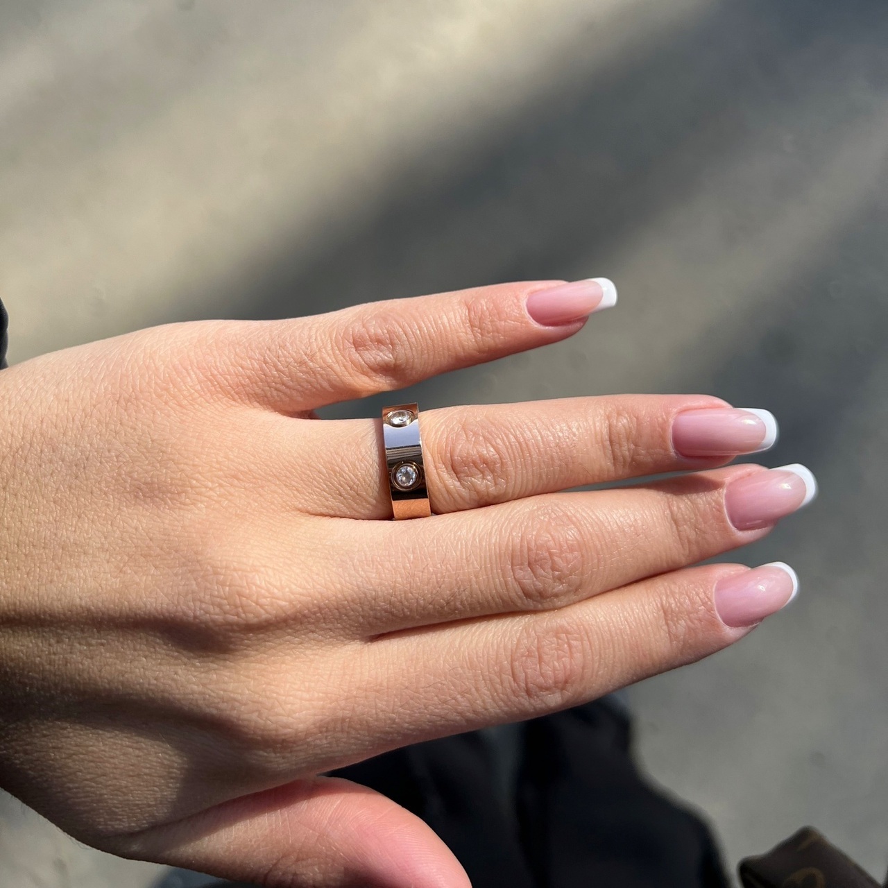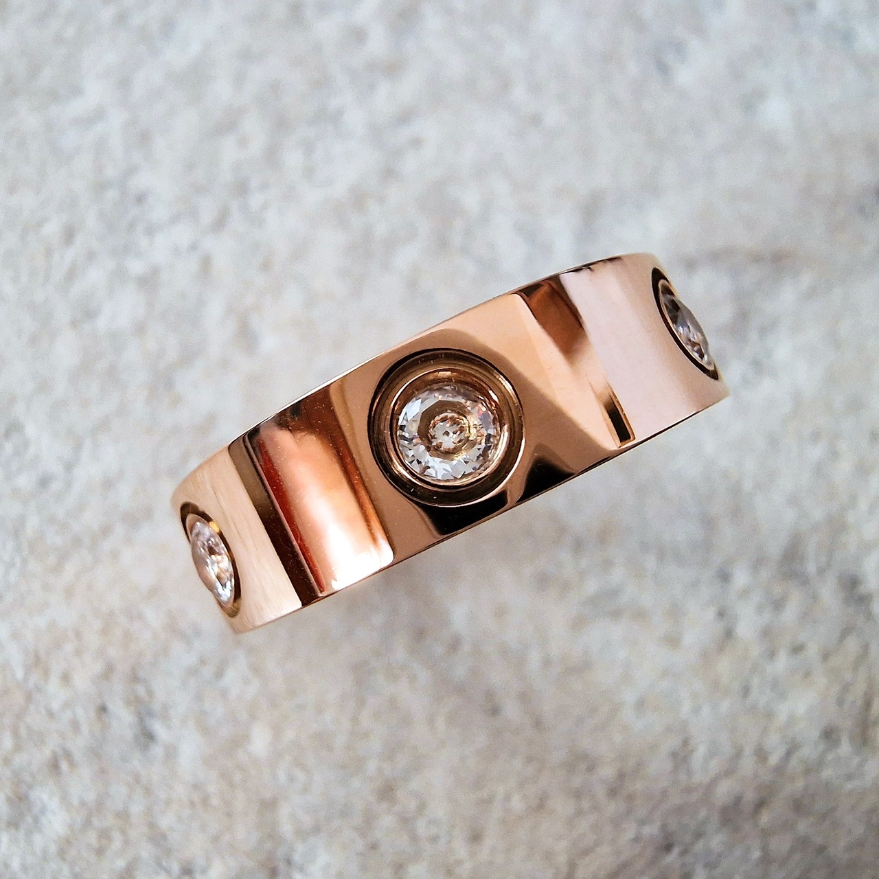 Δαχτυλίδι love από ανοξείδωτο ατσάλι σε ροζ χρυσό χρώμα και ζιργκόν.