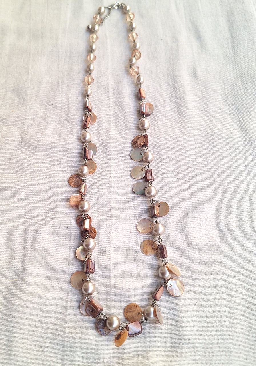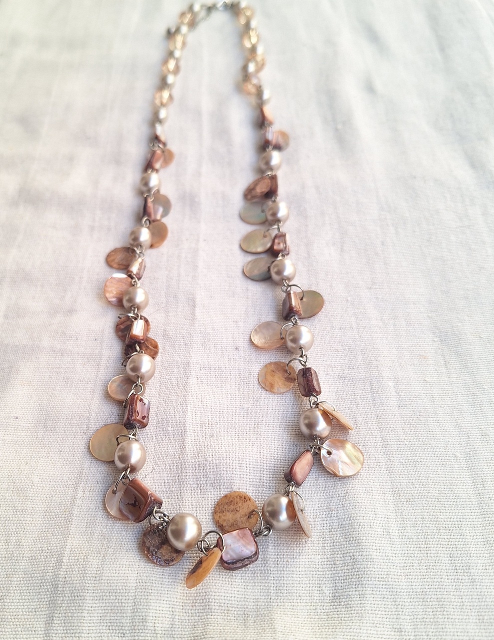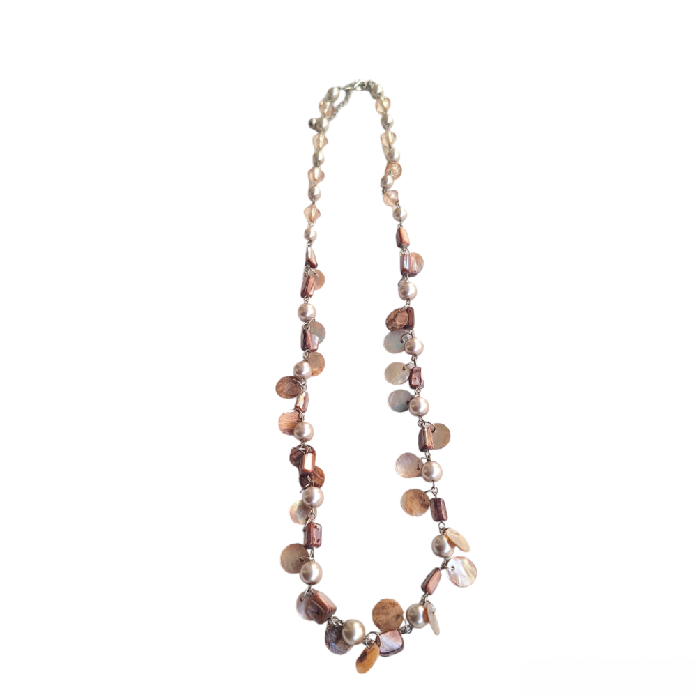 Μακρι κολιέ με πέρλες και φλουράκια κοχύλι