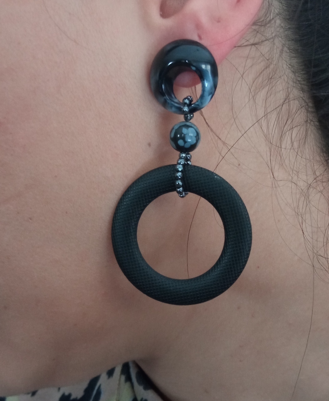 Σκουλαρίκια κρεμαστά μαύρα με μαύρους κύκλους και ημιπολύτιμες πέτρες