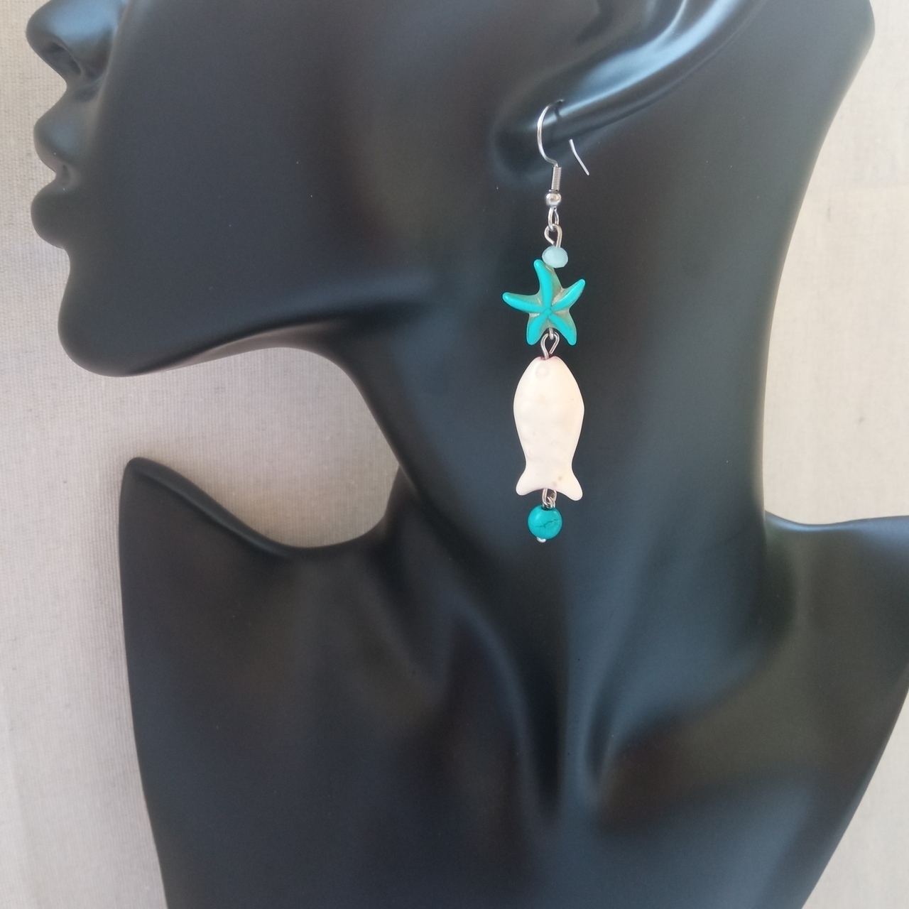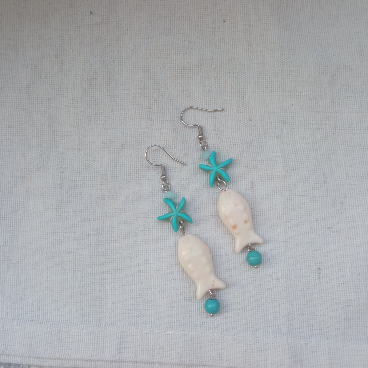 Σκουλαρίκια κρεμαστά με αστερίες και ψαράκια από ημιπολύτιμο χαολιτη