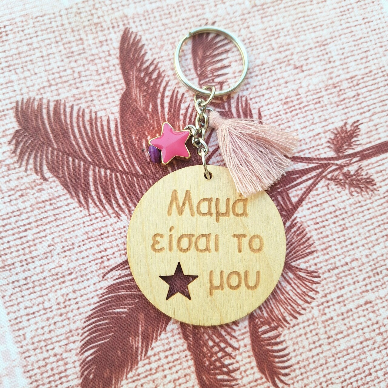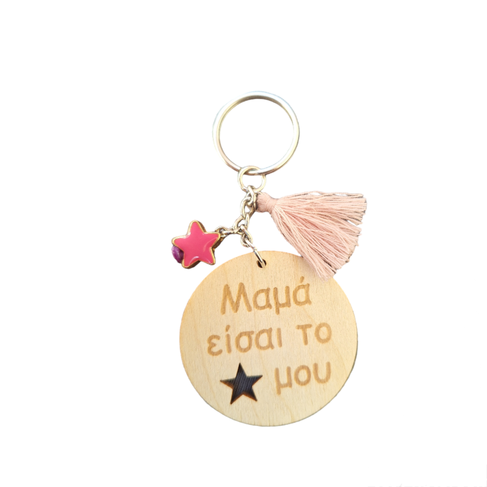 Ξύλινο Μπρελόκ μαμά είσαι το αστέρι μου