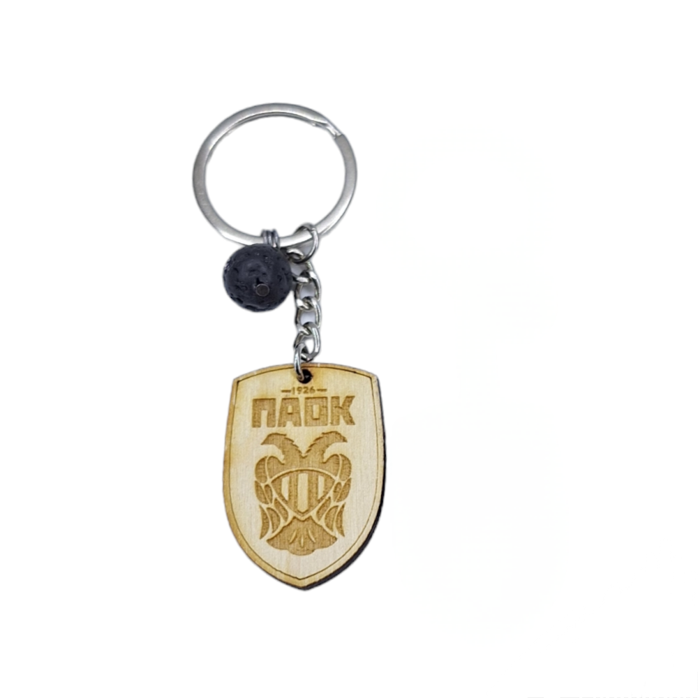 Ξύλινο μπρελόκ παοκ με ημιπολύτιμη μαύρη λάβα