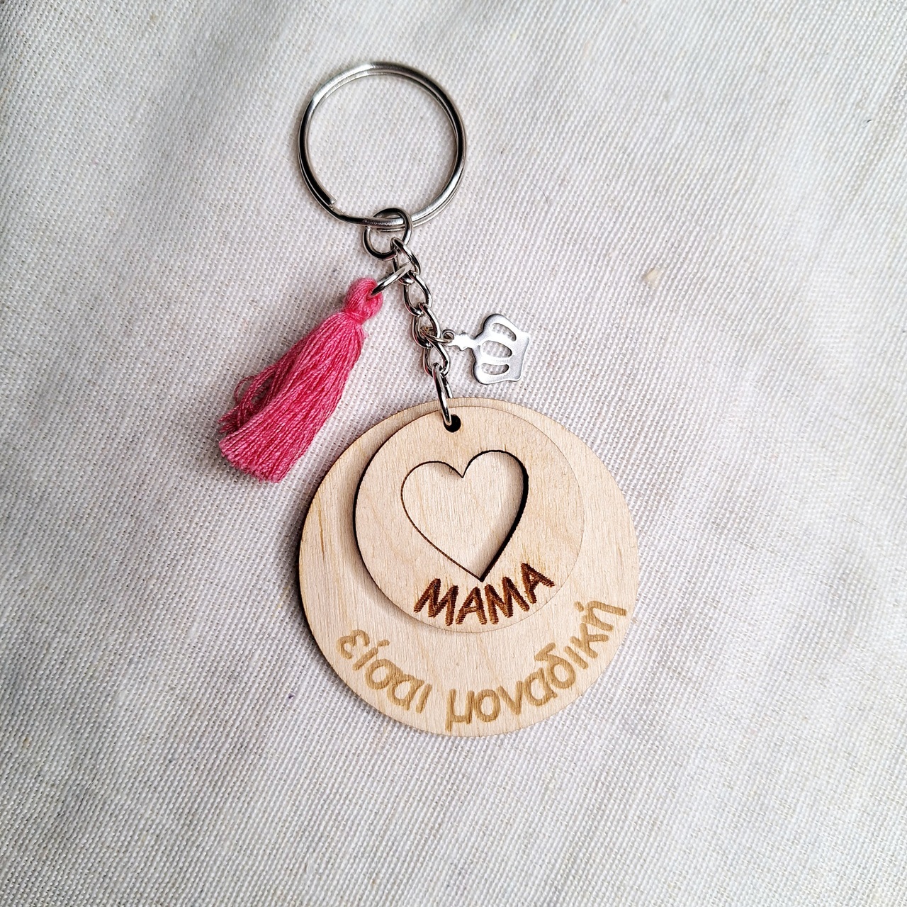 Ξύλινο Μπρελόκ μαμά είσαι μοναδική