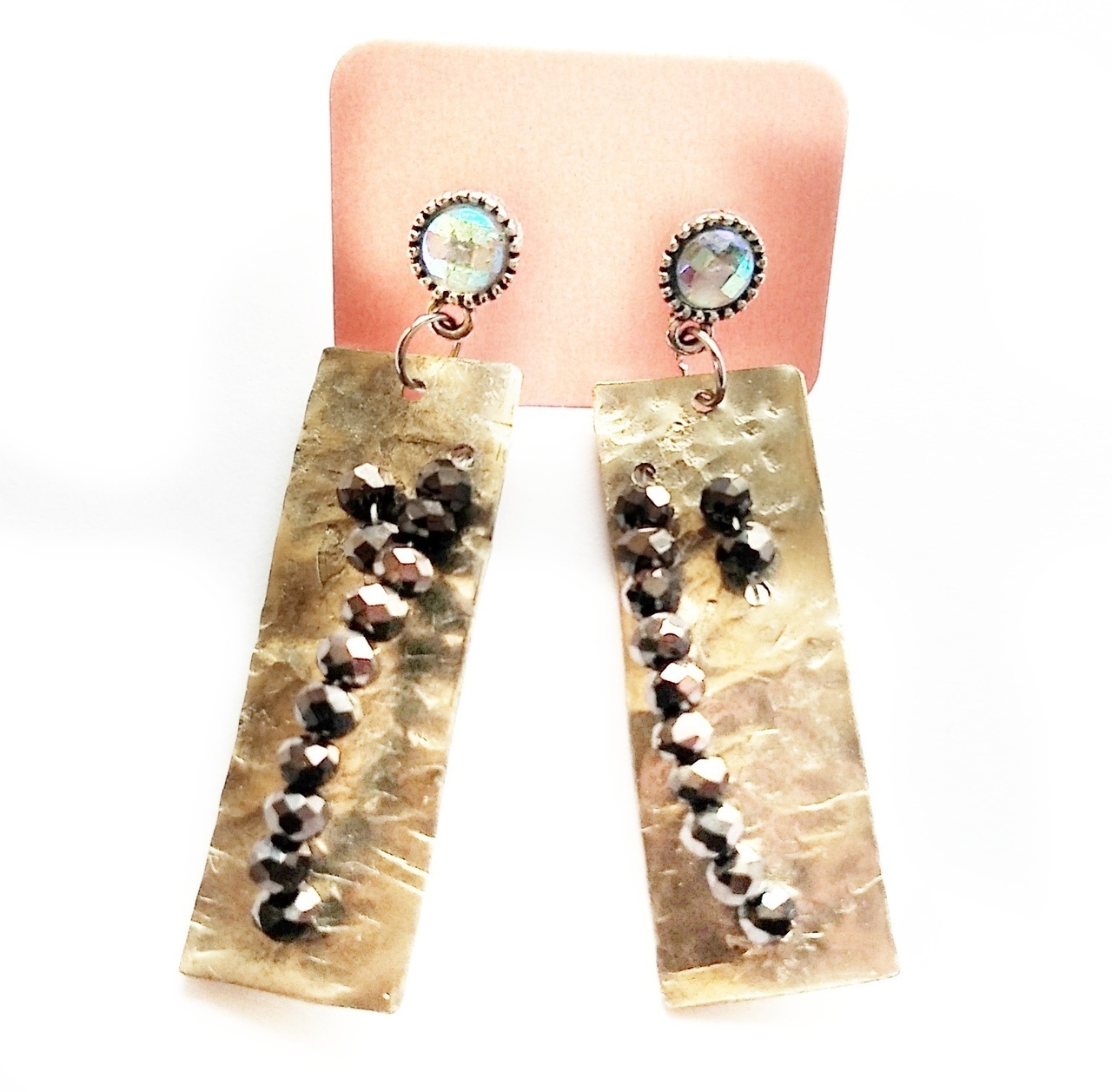 Σκουλαρίκια ορθογώνια ασημί με χάντρες