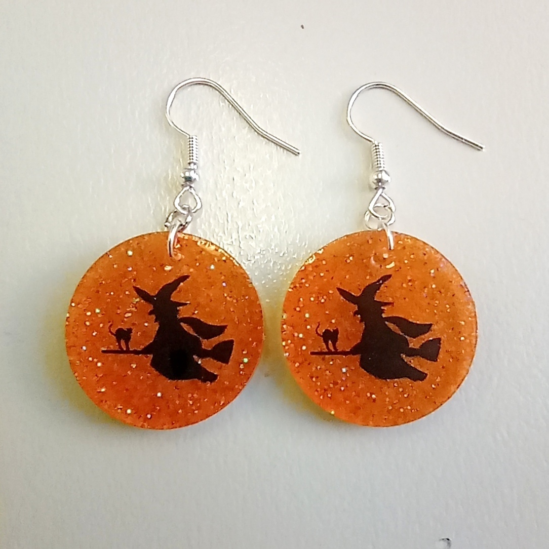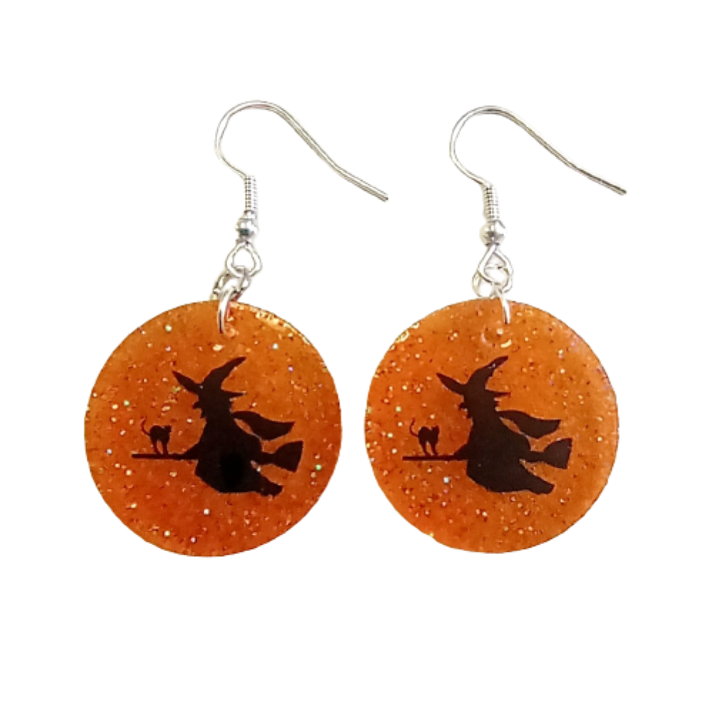 Σκουλαρίκια κυκλικά Halloween wicked witch με υγρό γυαλί