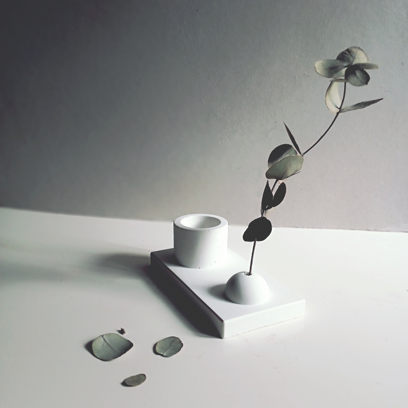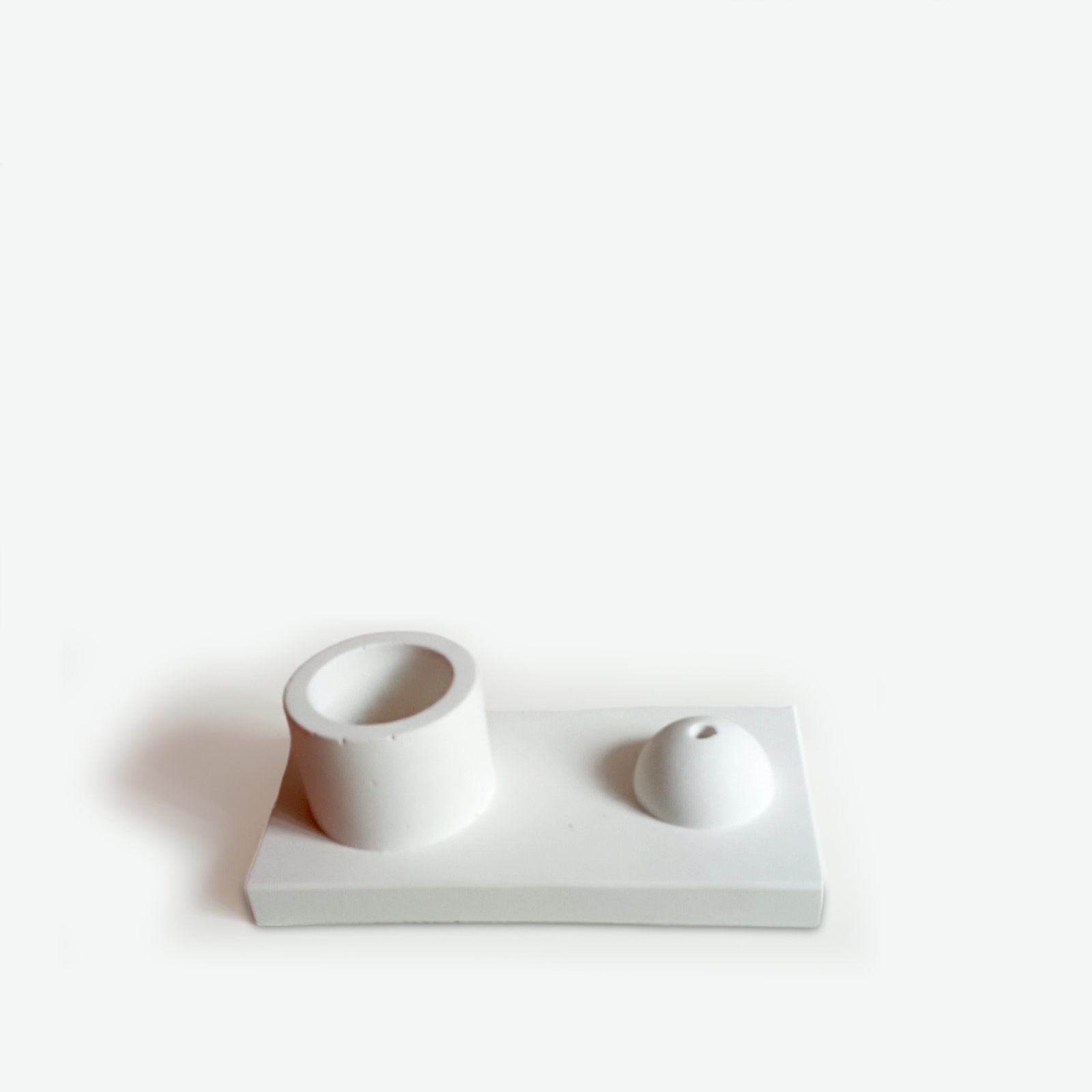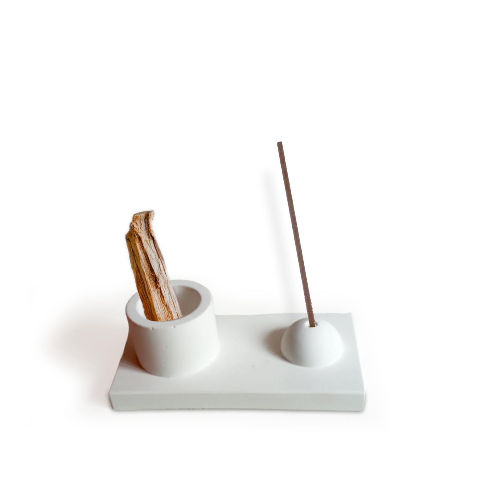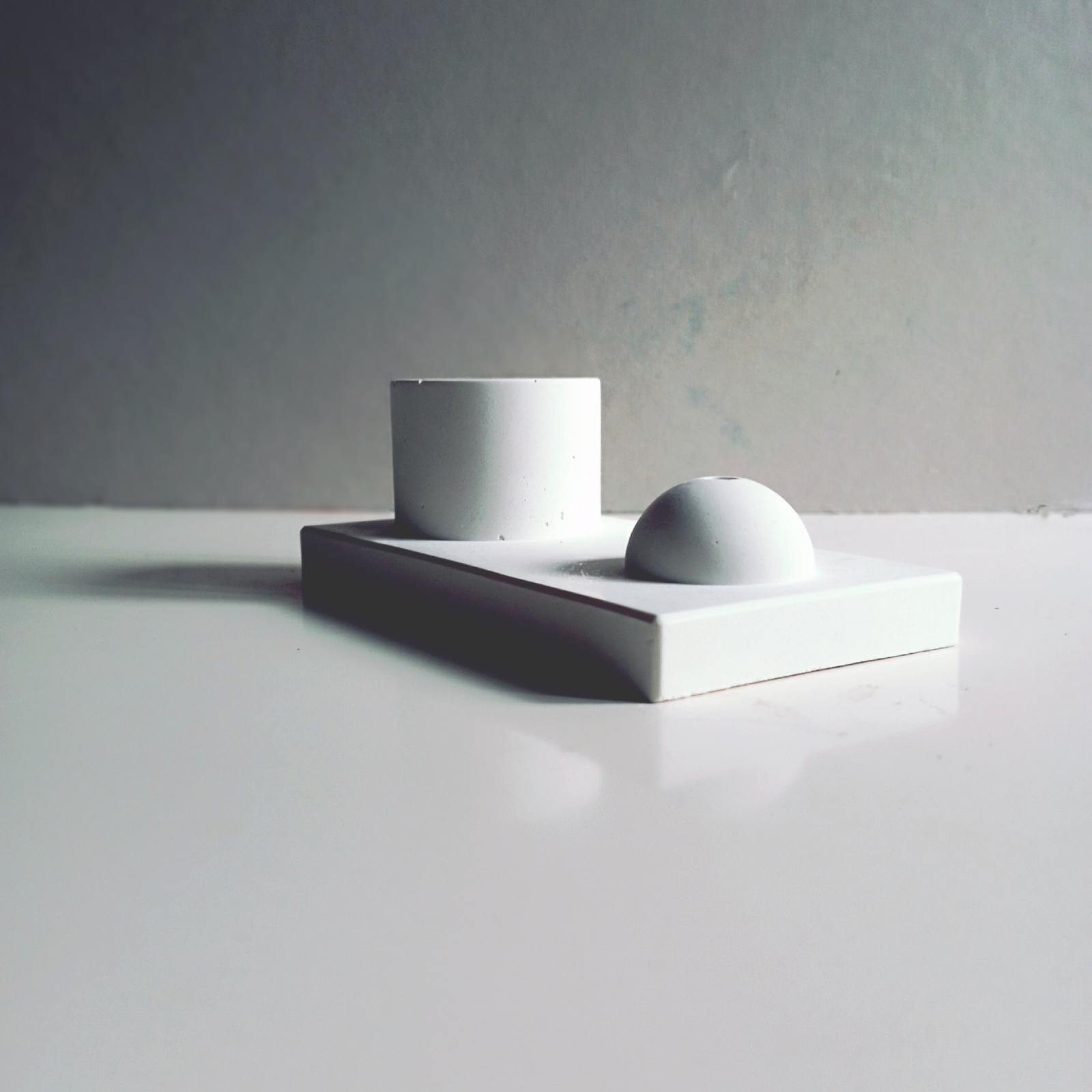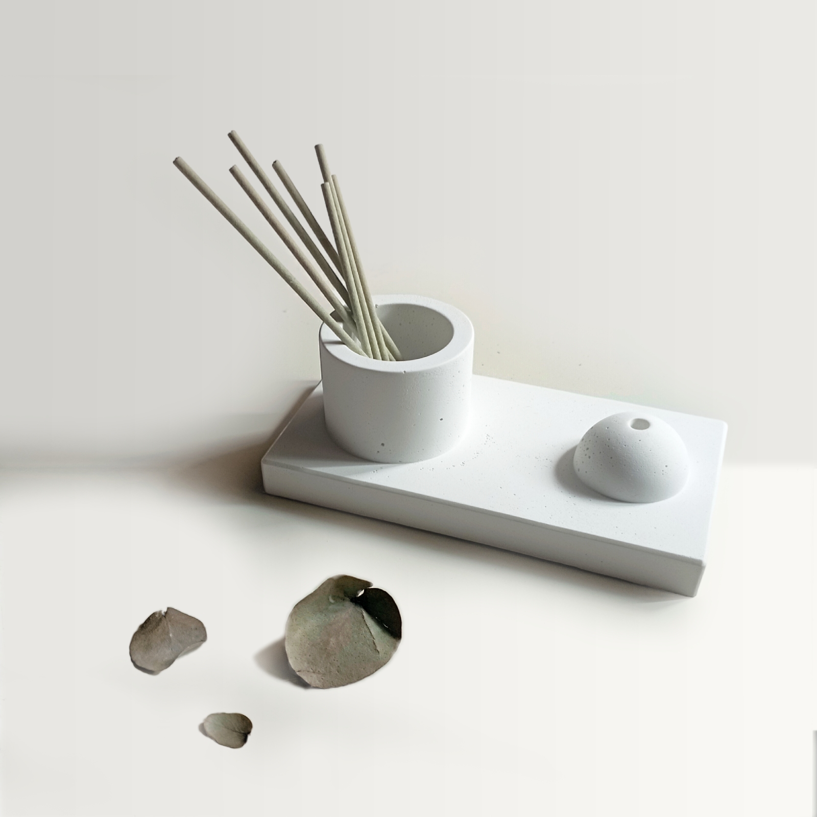Tσιμεντένια βάση για αρωματικό στικ με χαρακτηριστικό τα έντονα γραμμικά στοιχεία. Σχεδιαστικά ξεχωρίζει για το συνδυασμό γεωμετρικών σχημάτων, όπως το παραλλήλογραμμο της βάσης, στο σφαιρικό της θέσης στήριξης και το κυλινδρικό της απόθεσης. Ενα κομψό και μινιμαλιστικό αξεσουάρ, που ταιριάζει σε όλα τα στυλ διακόσμησης, ενώ το λευκό χρώμα προσδίδει μια αίσθηση φρεσκάδας και ηρεμίας.