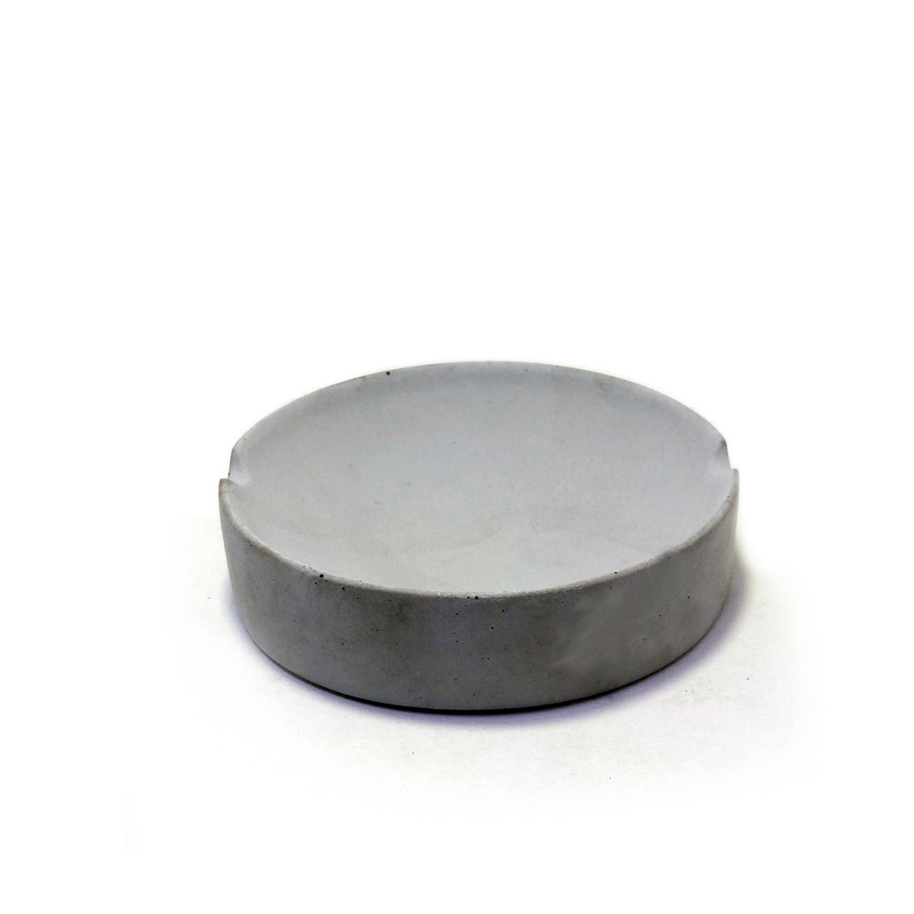Τασάκι από σκυρόδεμα σε στρογγυλό σχήμα, βιομηχανικού σχεδιασμού και μίνιμαλ αισθητικής. Εκτός από τη λειτουργικότητα αποτελεί από μόνο του ένα διακοσμητικό αντικείμενο, ταιριαστό σε κάθε στιλ. Εχει εφαρμοστεί βερνίκι αδιαβροχοποίησης για μείωση των ρύπων και ευκολία στο καθάρισμα. Ιδανικό δώρο για καπνιστές.