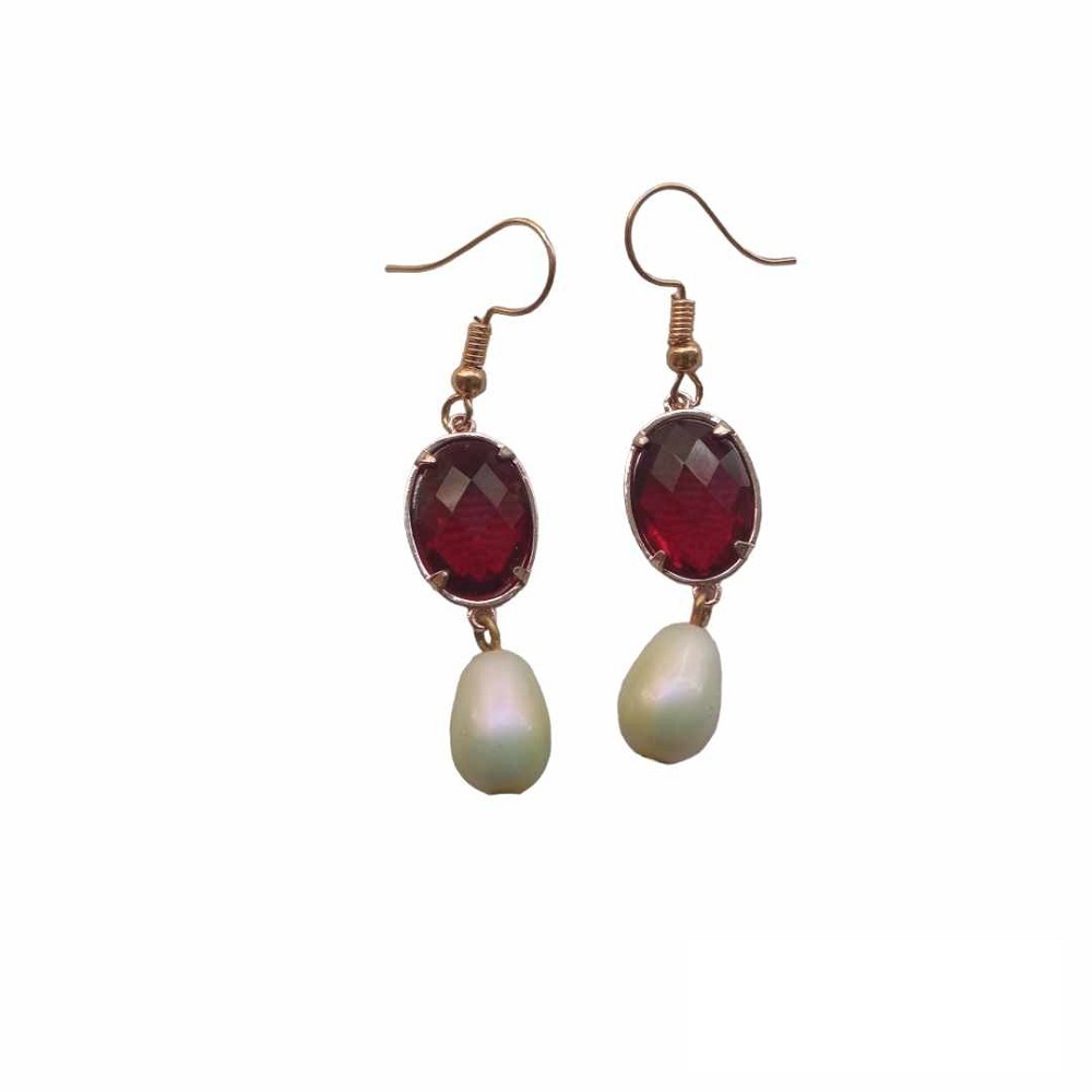 Σκουλαρίκια κρεμαστά με κόκκινη πέτρα και πέρλα