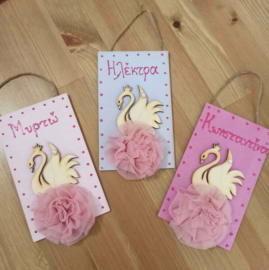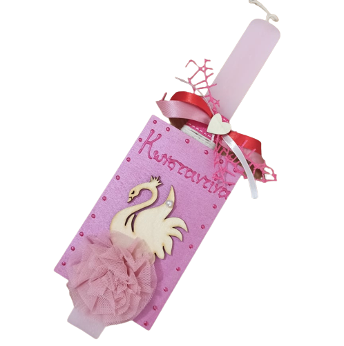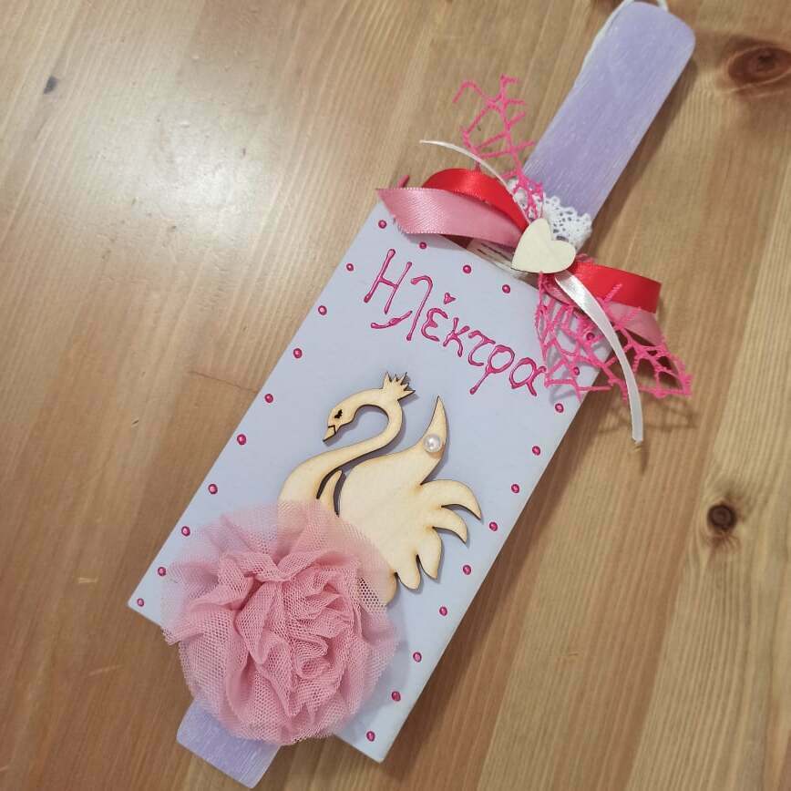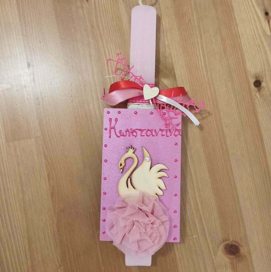 προσωποποιημένη λαμπάδα για κορίτσι με ταμπελάκι κύκνος ( swan door hanger )