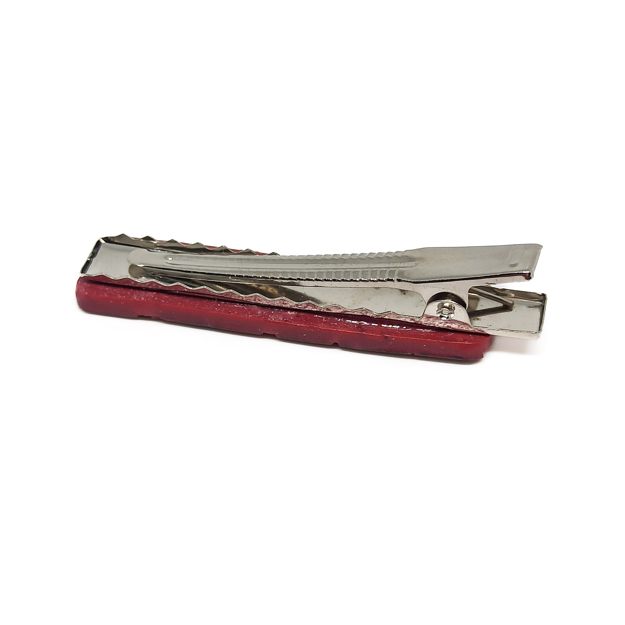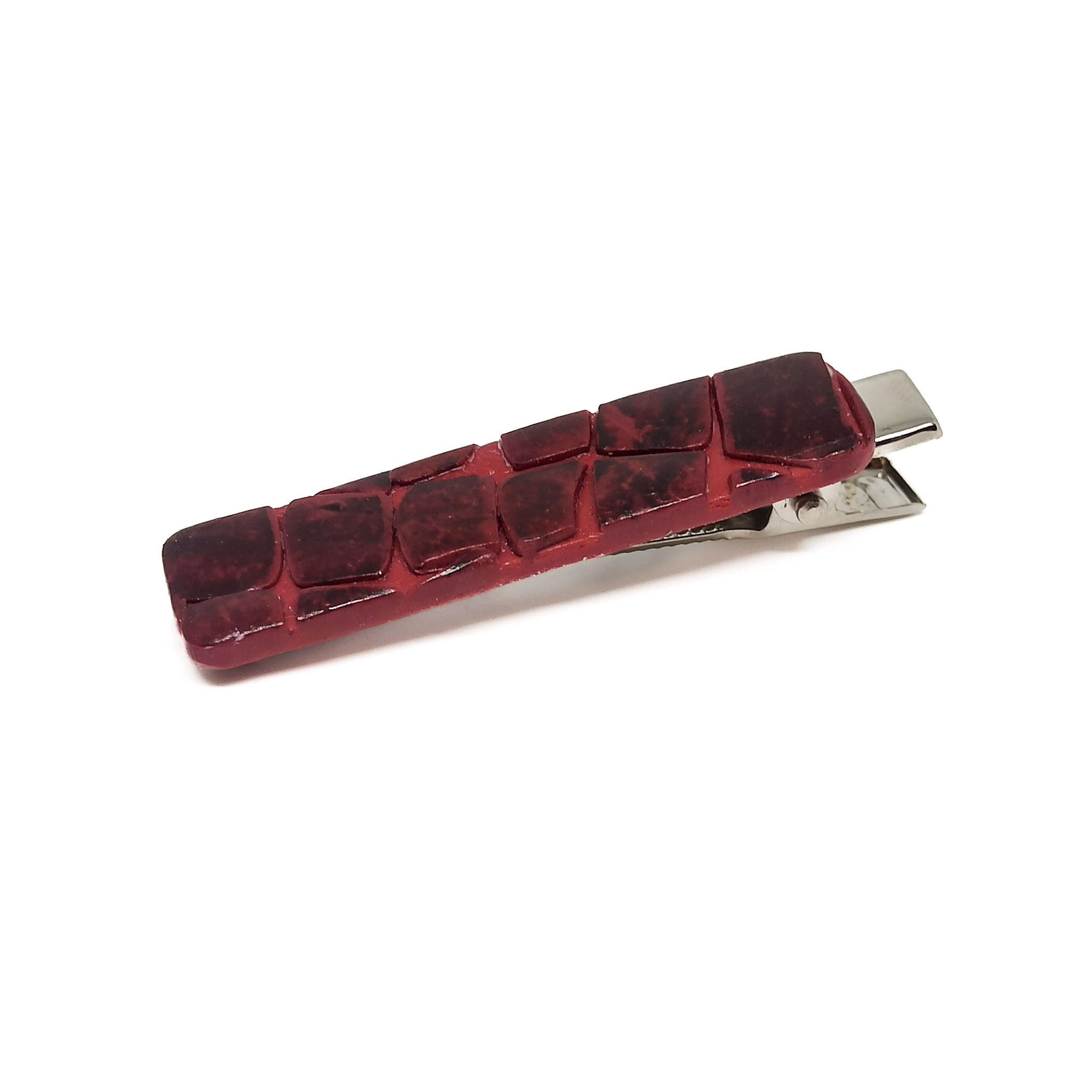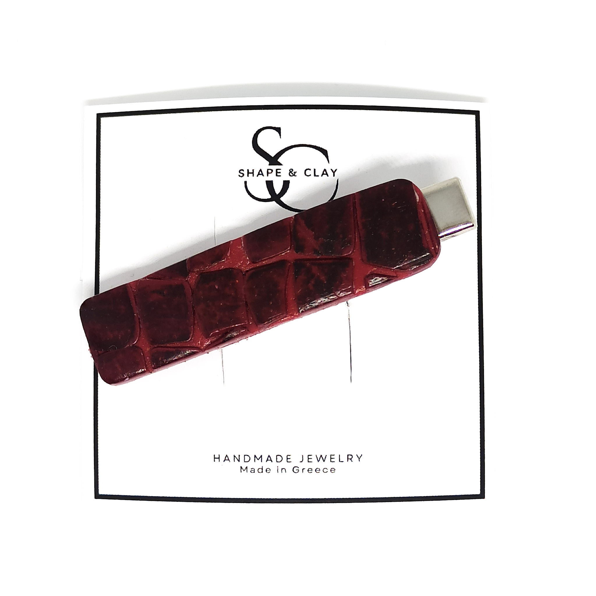 Χειροποίητo clip μαλλιών κατασκευασμένο από πολυμερικό πηλό σχέδιο croco σε μπορντό χρώμα προστατευμένο από gloss βερνίκι για προστασία και λάμψη. Το κλιπ είναι από σίδερο.