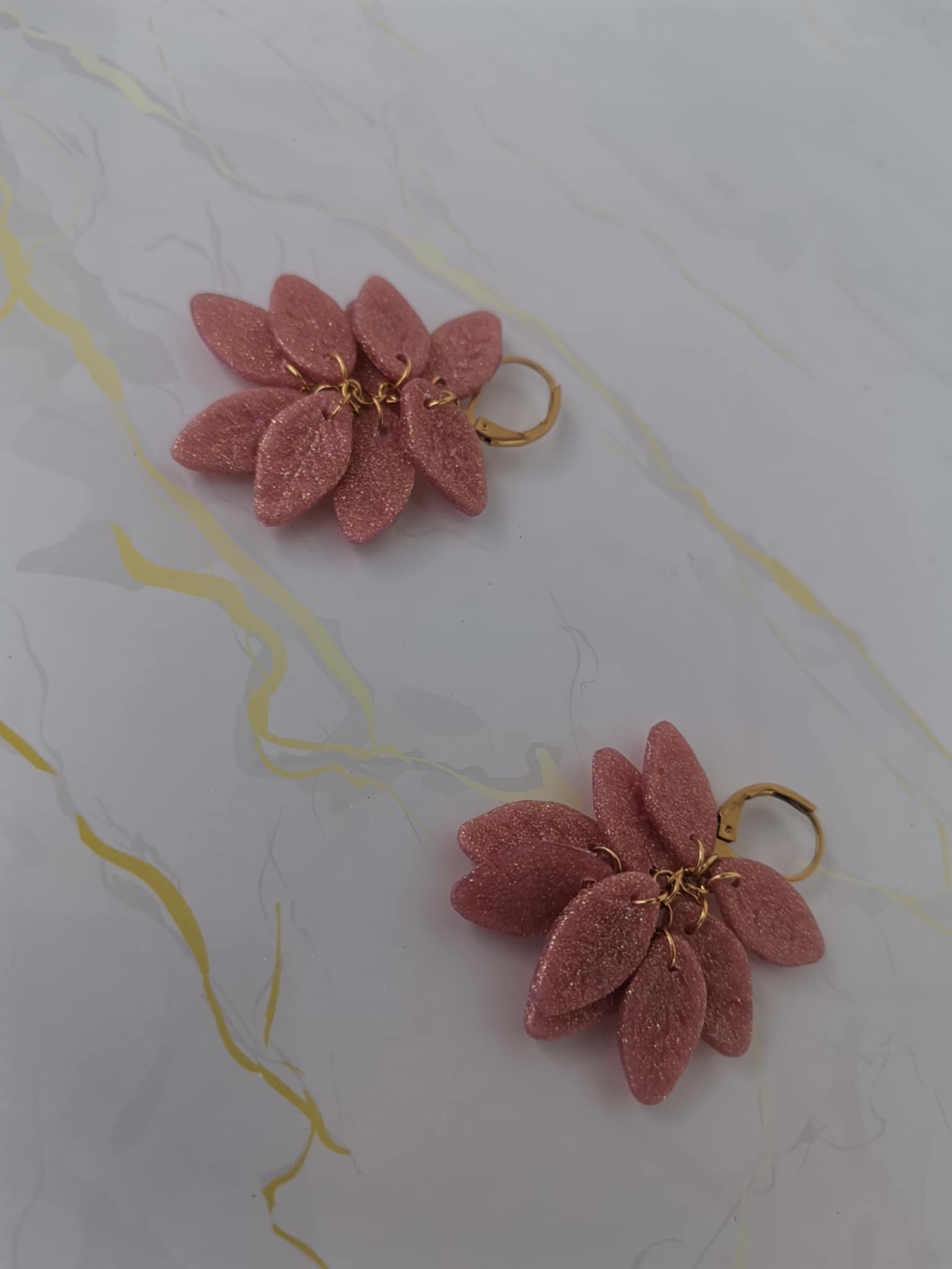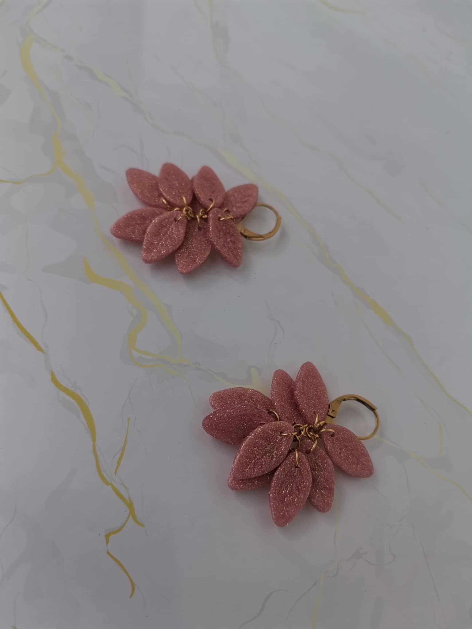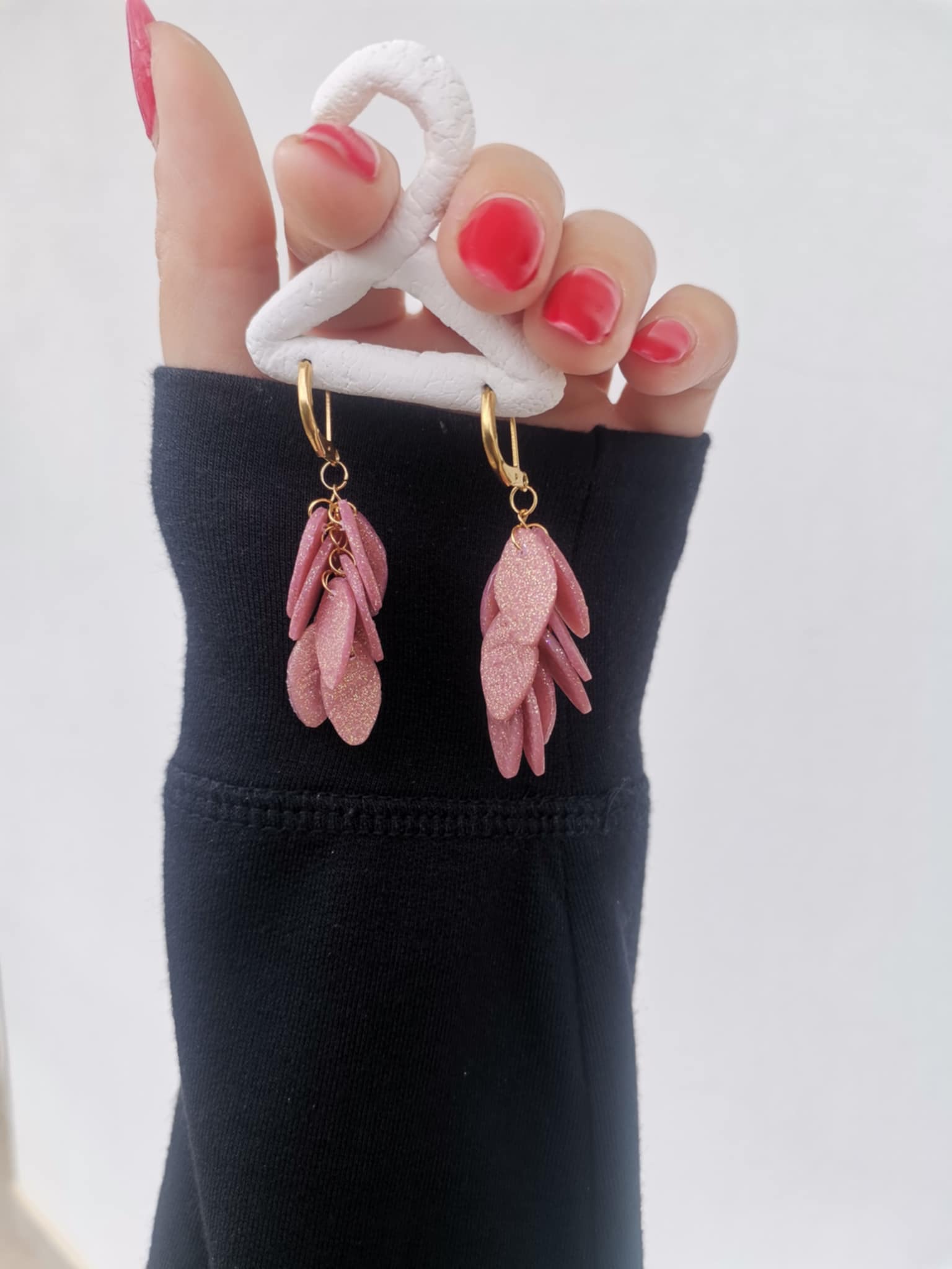 Χειροποίητα σκουλαρίκια από πολυμερικό πηλό και ατσάλι, χρώματος ροζ με εφέ χρυσόσκονης για να ακολουθούν κάθε εμφάνιση σου όλες τις ώρες.