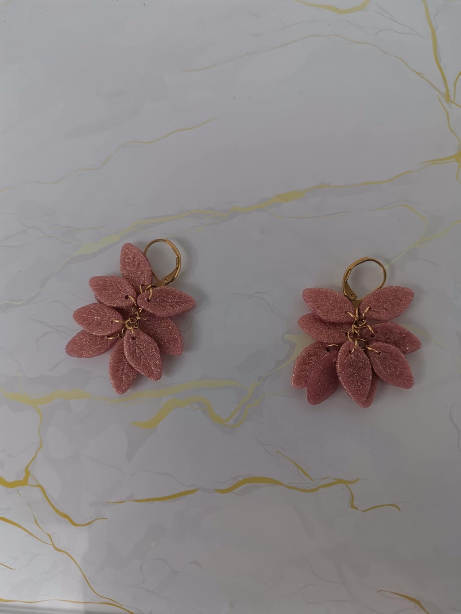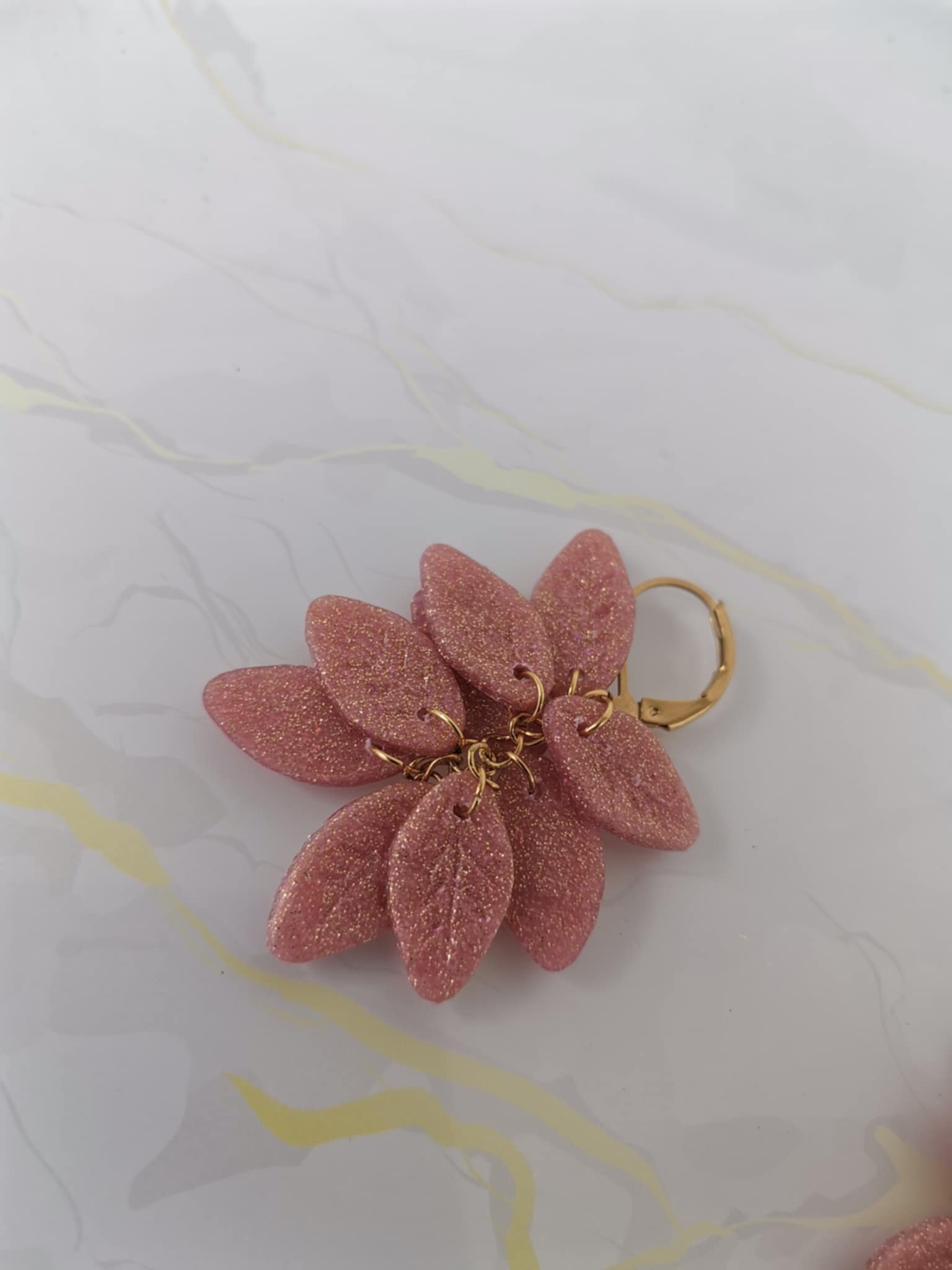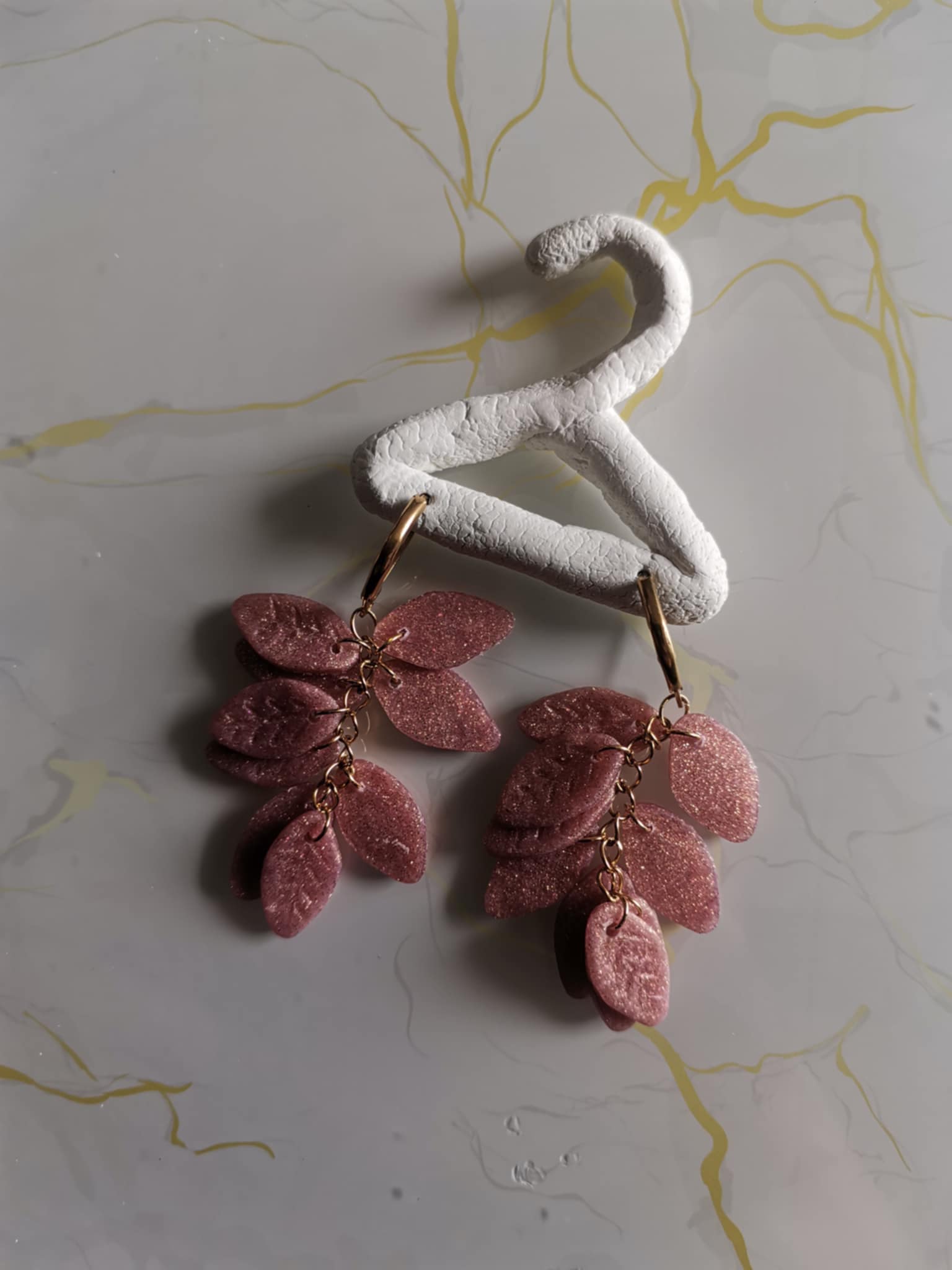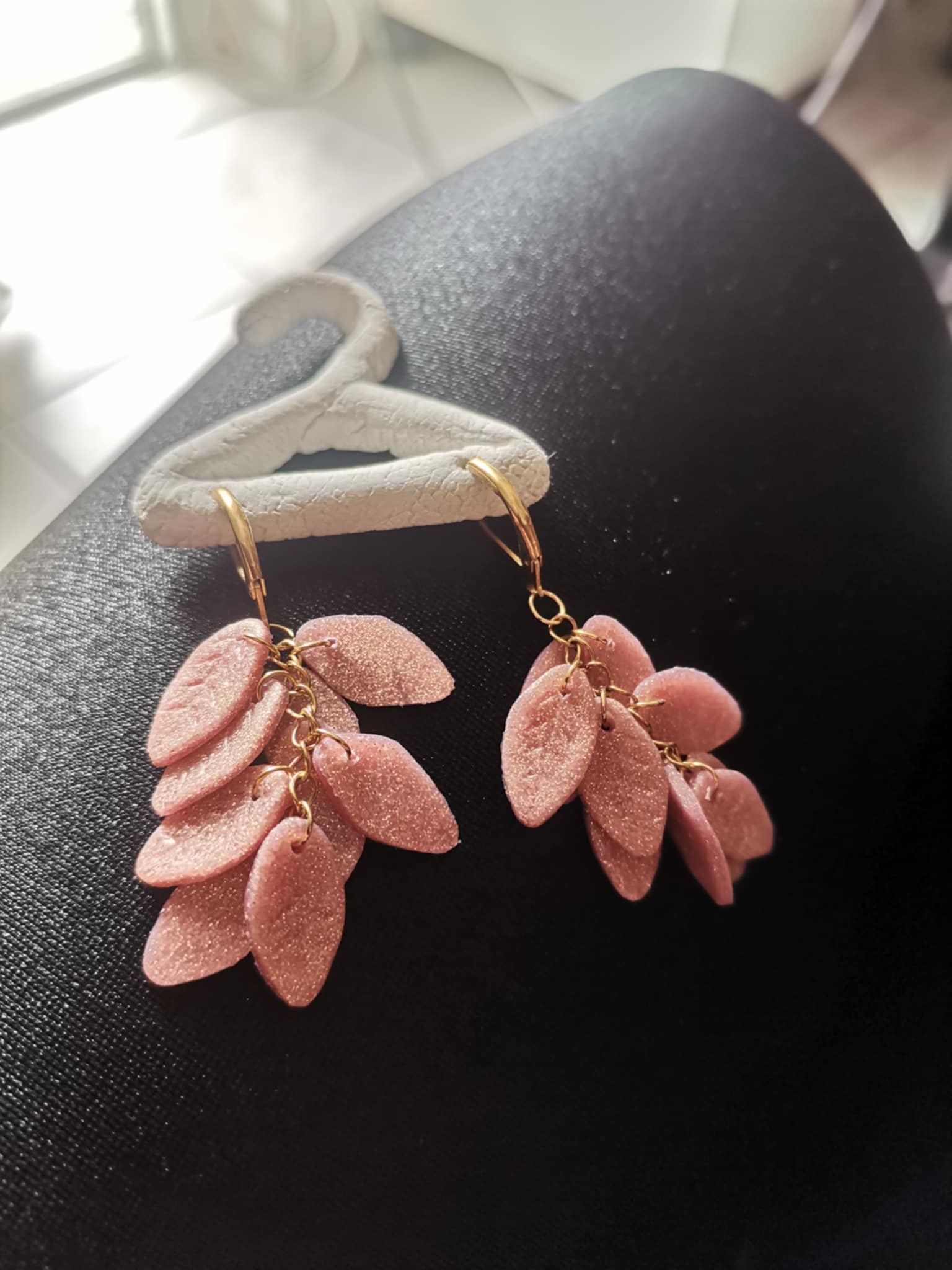 Χειροποίητα σκουλαρίκια από πολυμερικό πηλό και ατσάλι, χρώματος ροζ με εφέ χρυσόσκονης για να ακολουθούν κάθε εμφάνιση σου όλες τις ώρες.