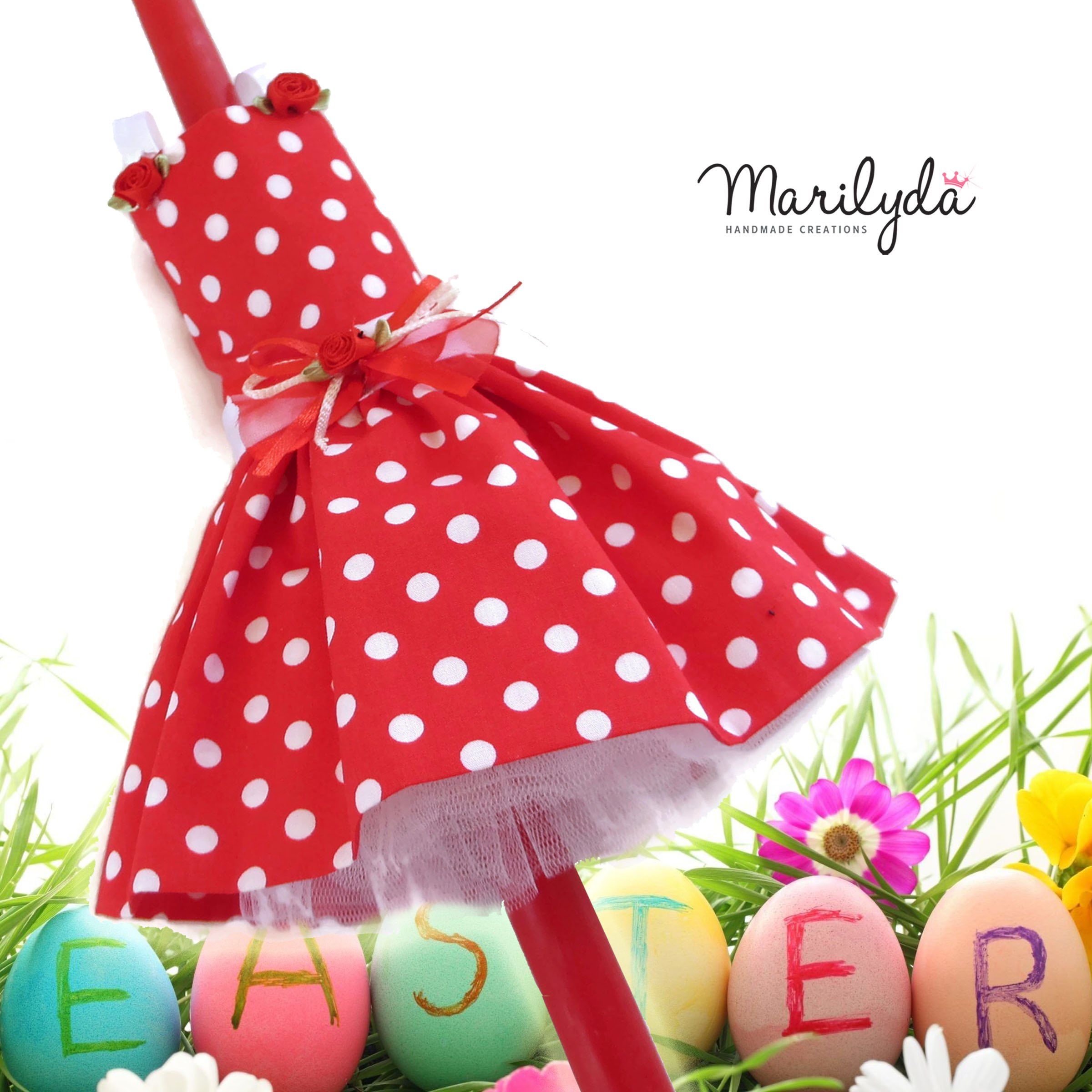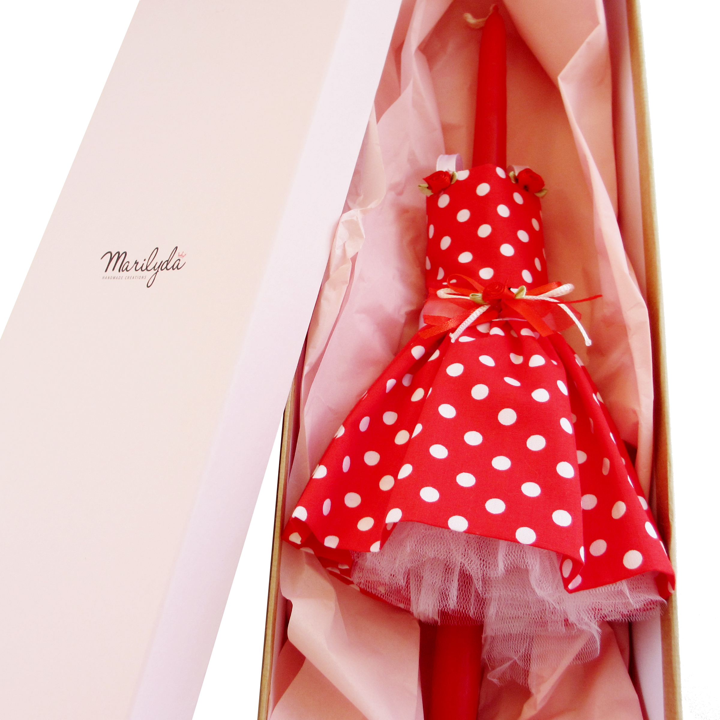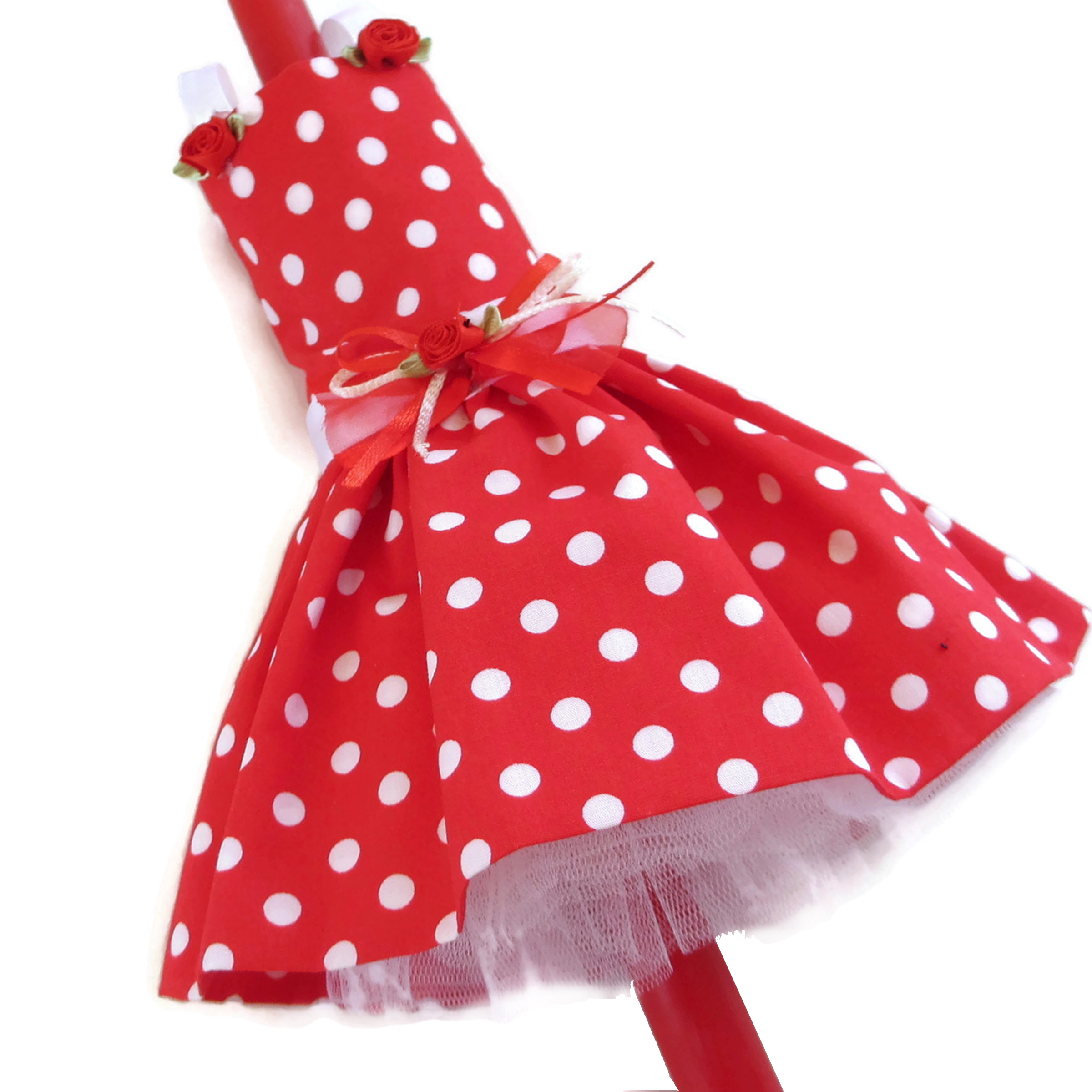Λαμπάδα με φόρεμα κόκκινο πουά “Νταϊάνα”