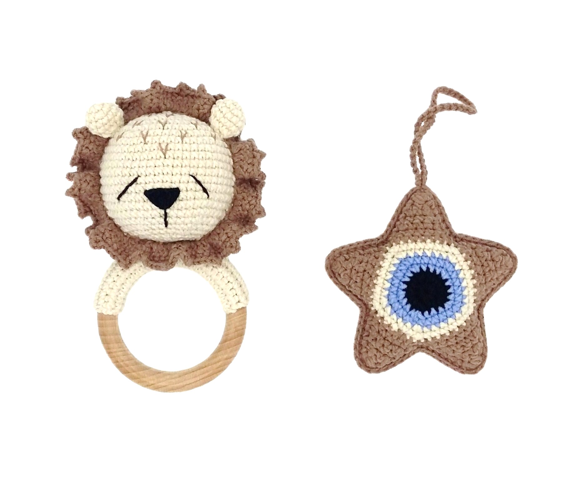 Σετ πλεκτή κουδουνίστρα λιονταράκι/ματάκι