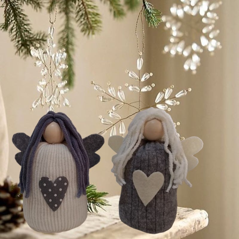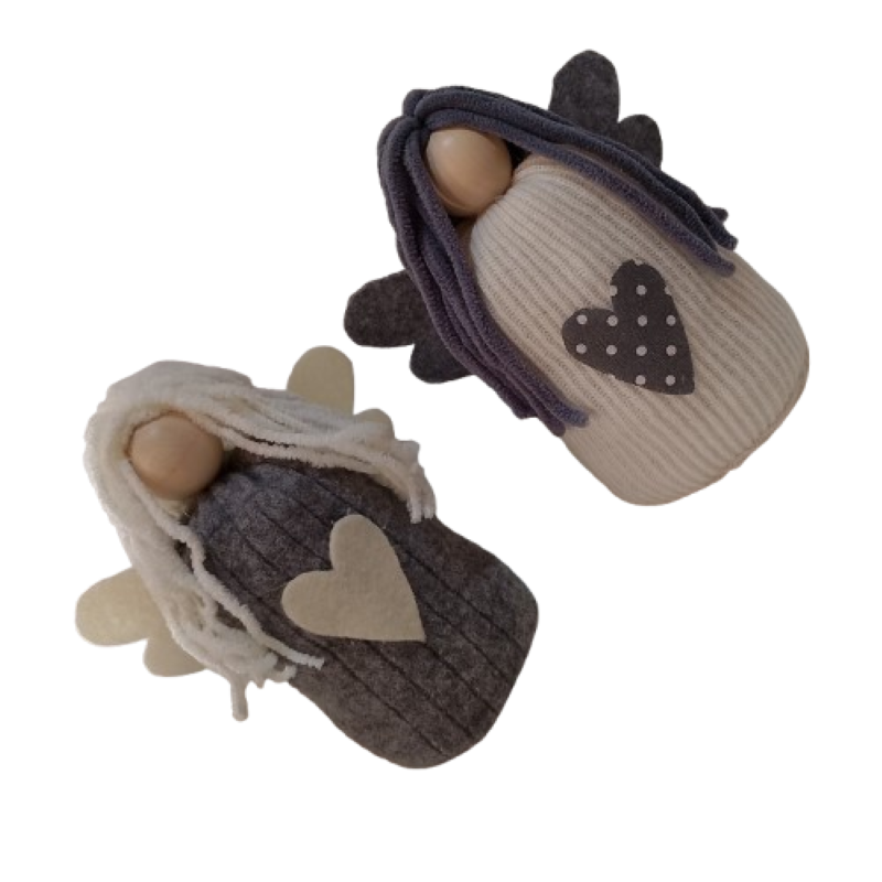Σετ 2 τεμ.- Χειροποίητα αγγελάκια εκρού-γκρι χρώμα