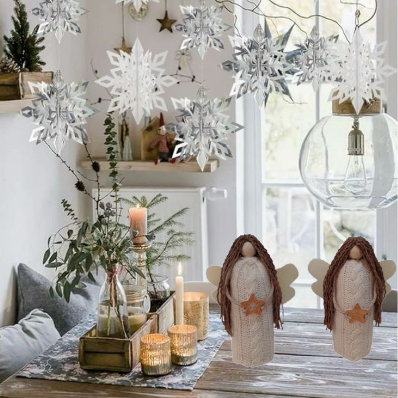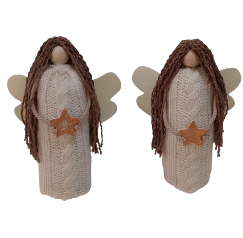 Σετ 2 τεμ. χειροποίητα αγγελάκια για να διακοσμήσετε γιορτινά το χώρο σας ή για να τα δωρίσετε . Τα υλικά που χρησιμοποιήσαμε για την κατασκευή τους είναι πλεκτό ύφασμα, ξύλο, βαμβακερό νήμα και τσόχα. Ύψος 19,5 εκ.