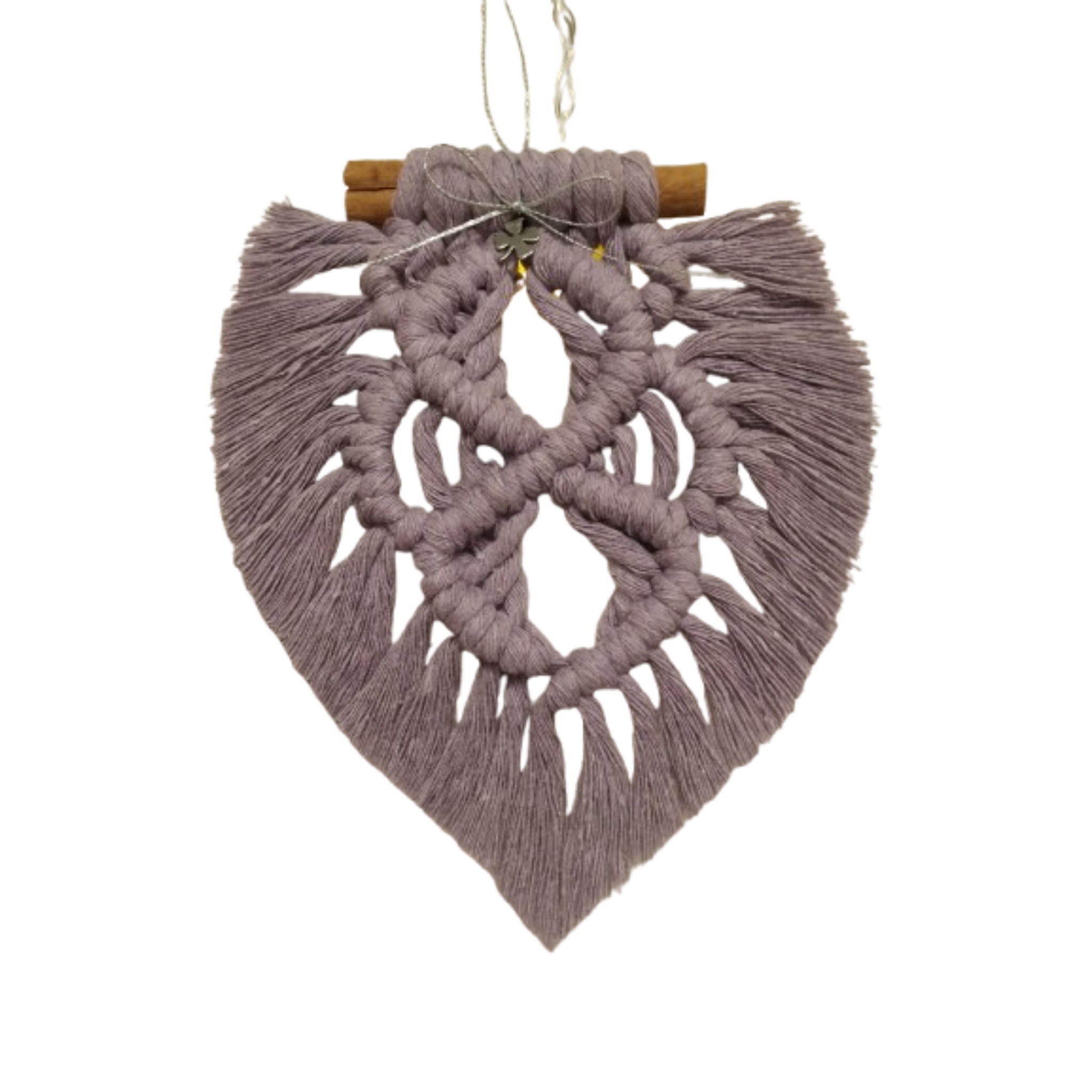 Λιλά Γούρι Φύλλο Μακραμέ σε Ξυλάκι Κανέλας
