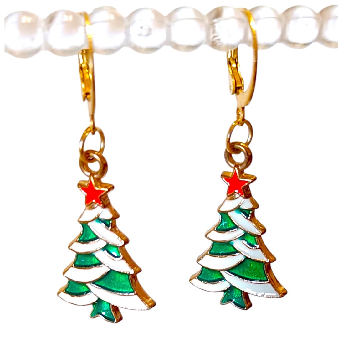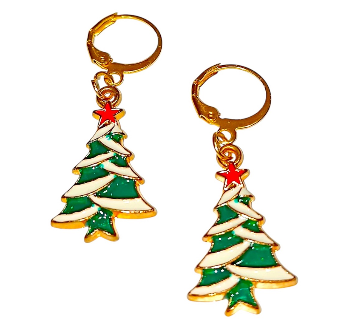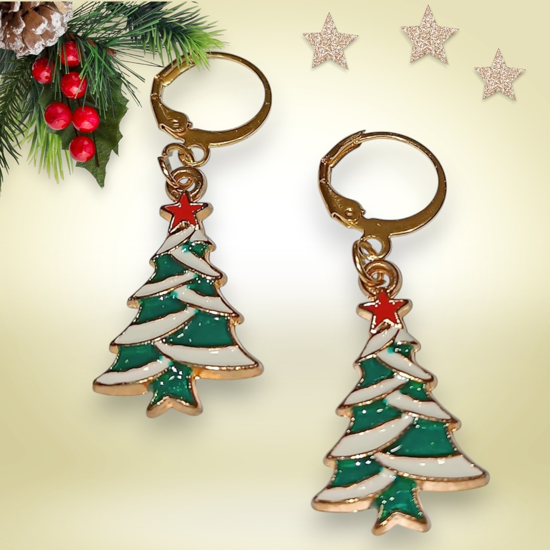 Χειροποιητα Κρεμαστα Σκουλαρικια -Ελατο- ατσαλινα ,με ατσαλινο χρυσο ελατο με πρασινο και ασπρο σμαλτο και κοκκινο αστερακι.και κουμπωμα ατσαλινοι μικροι κρικοι