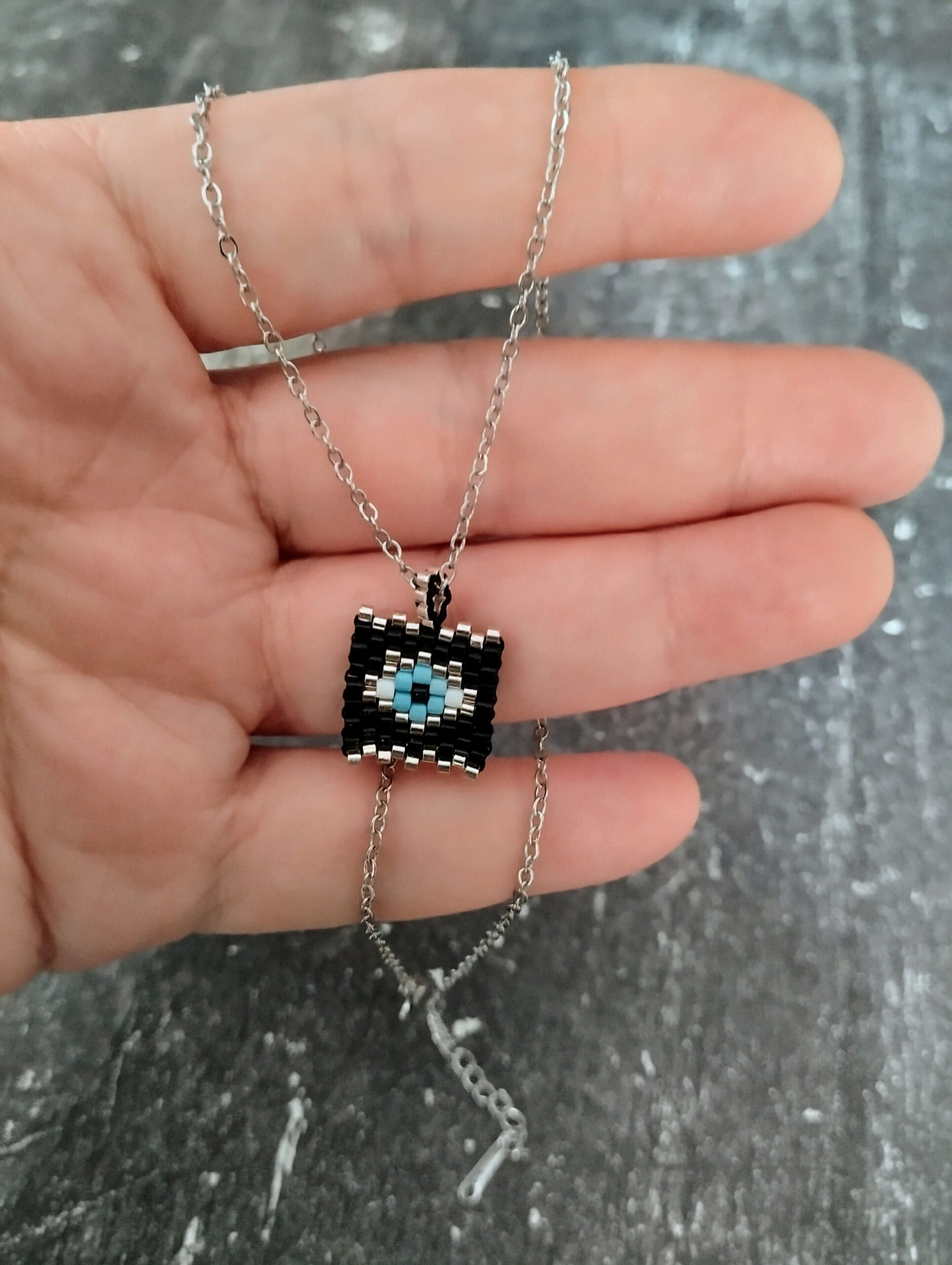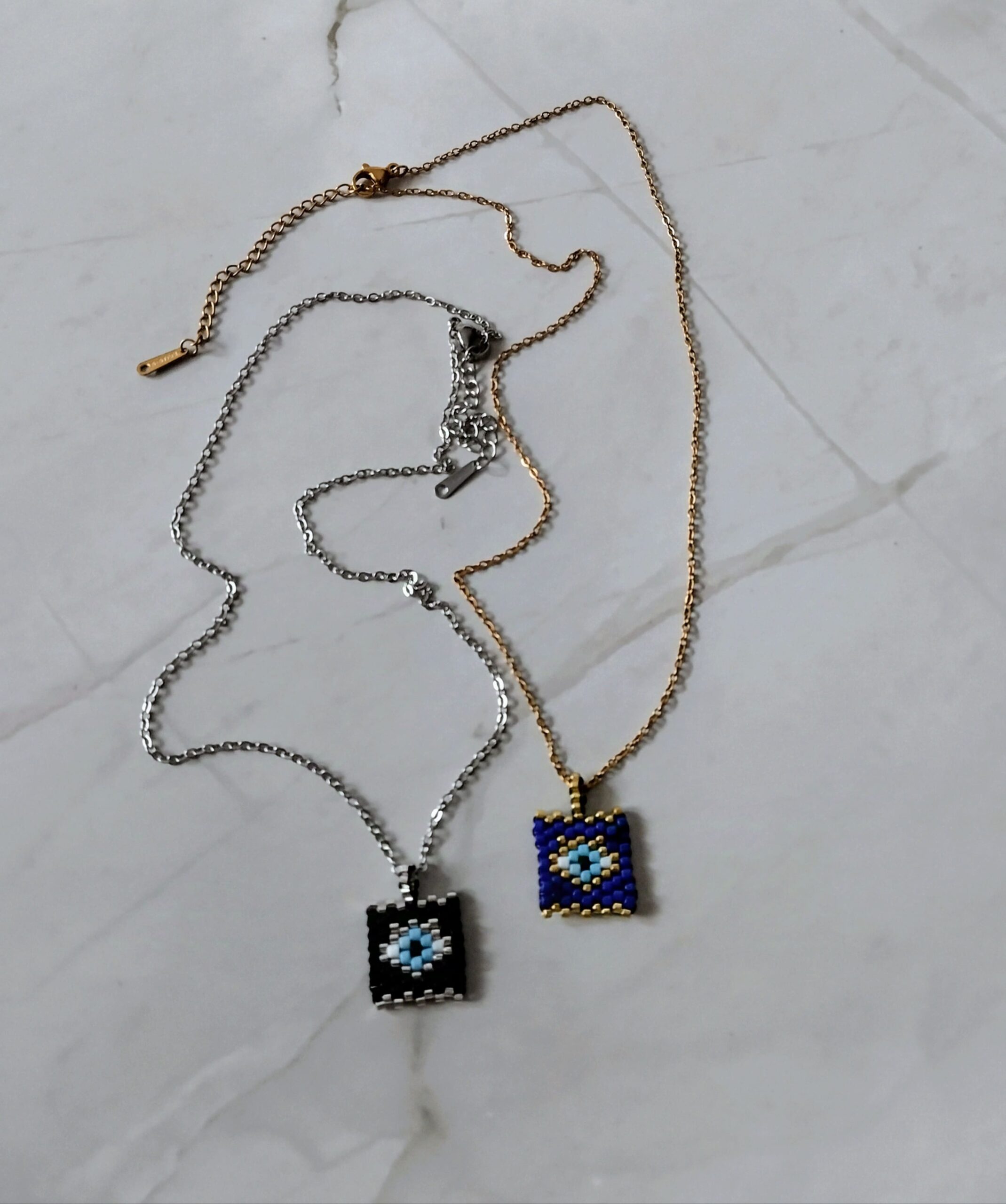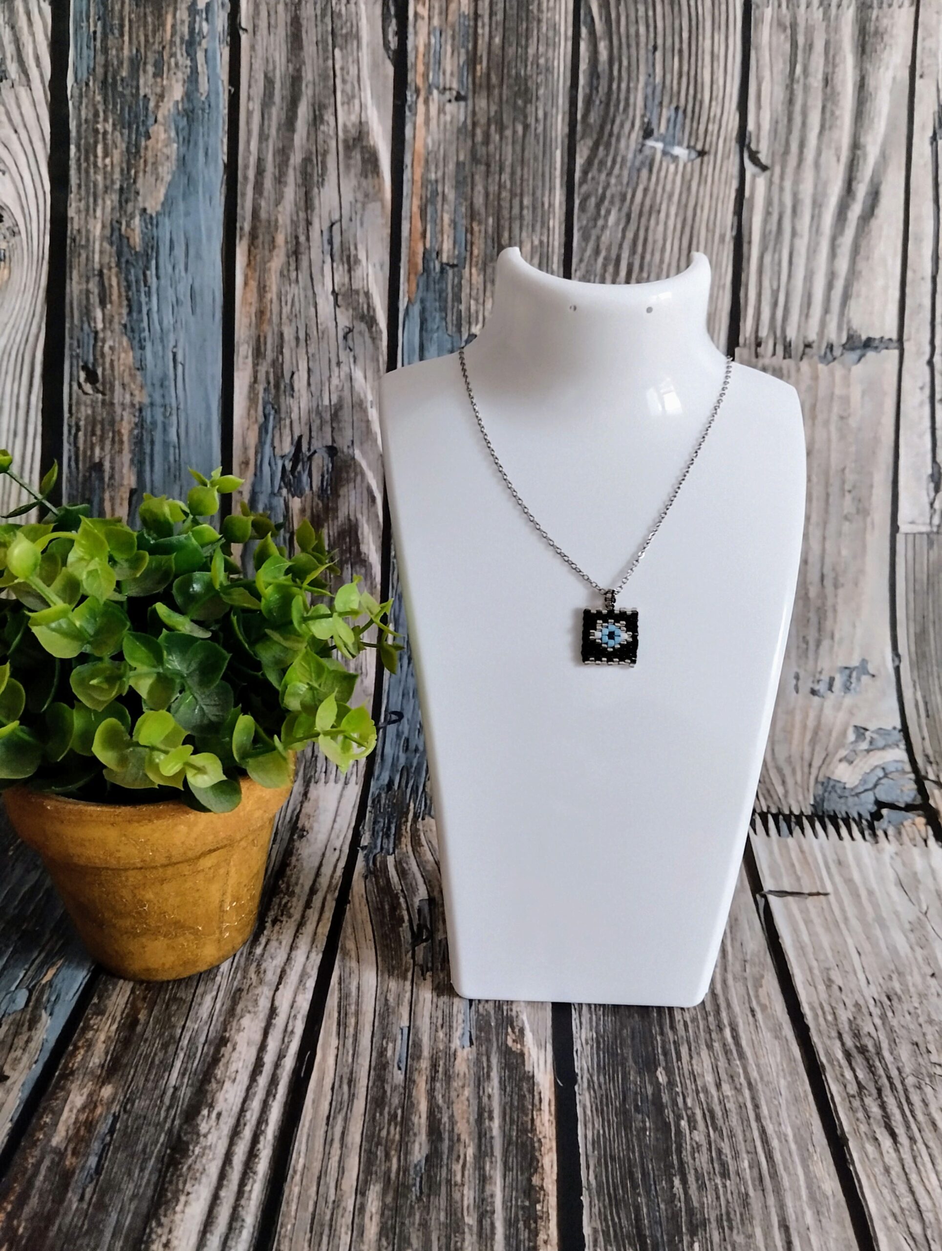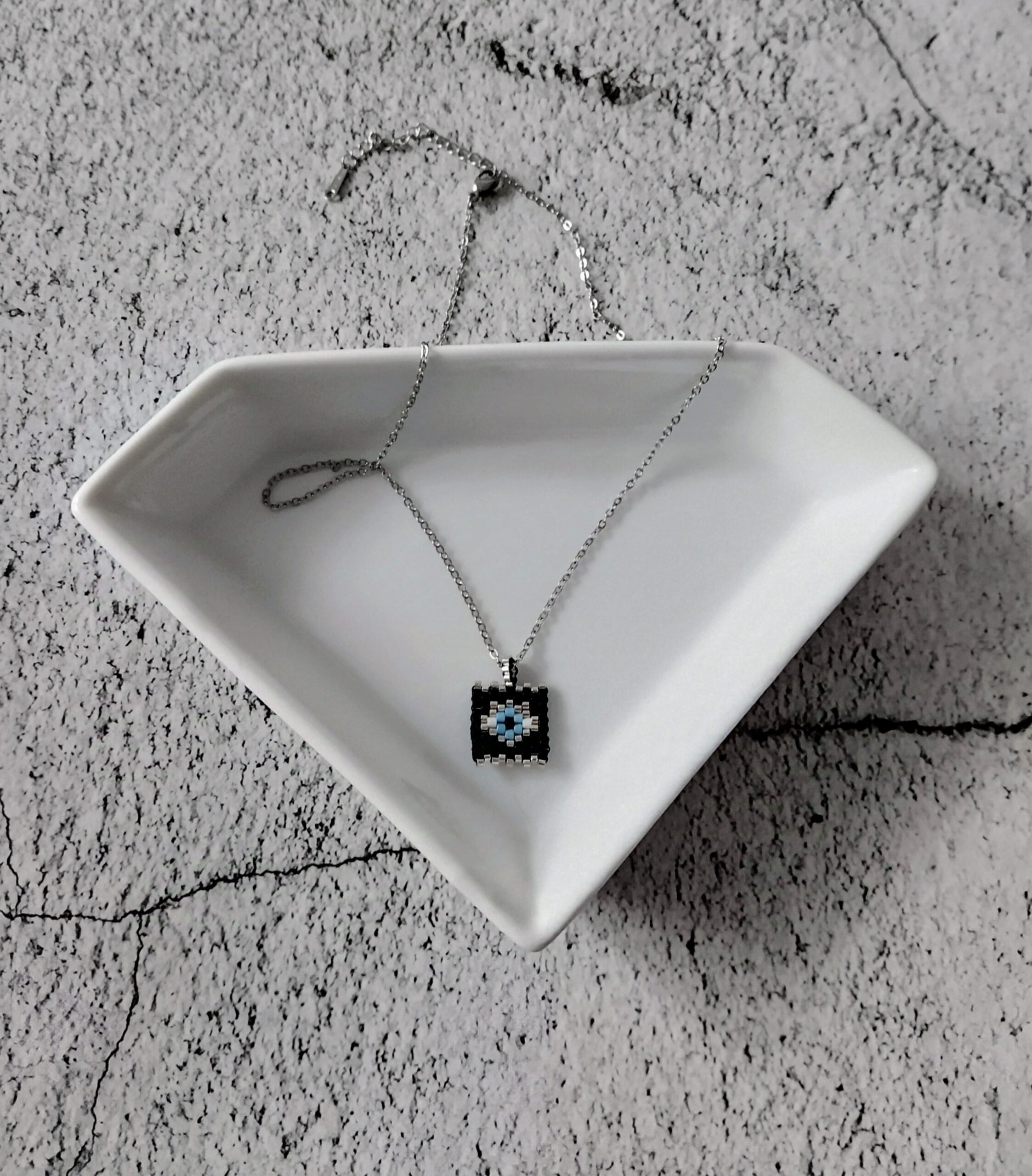Ατσάλινο κολιέ με ματάκι τετράγωνο miyuki