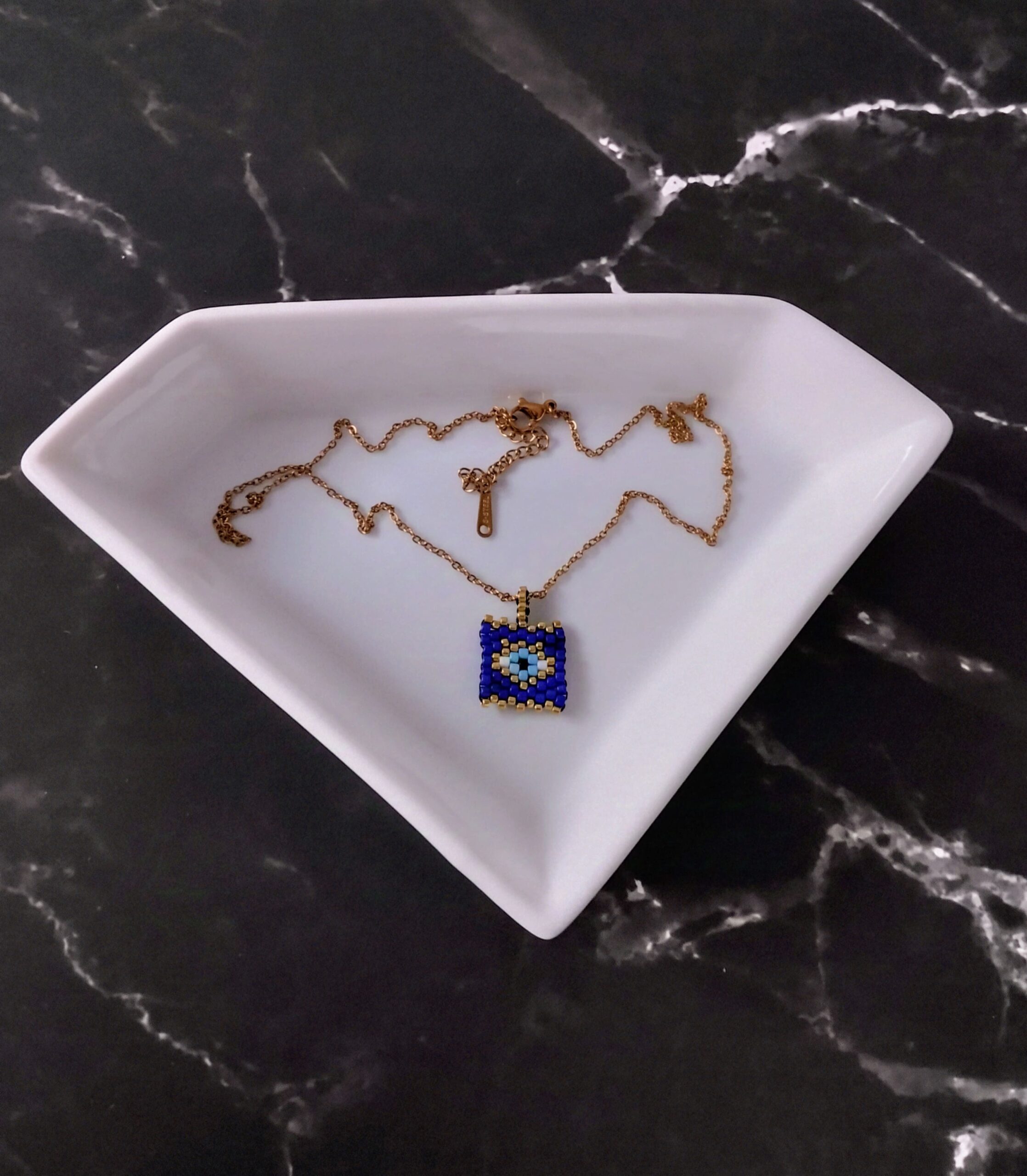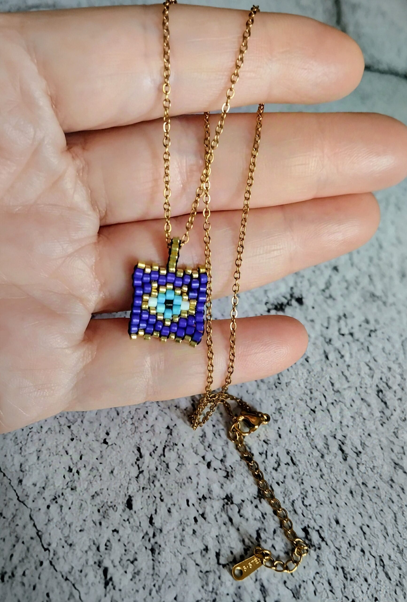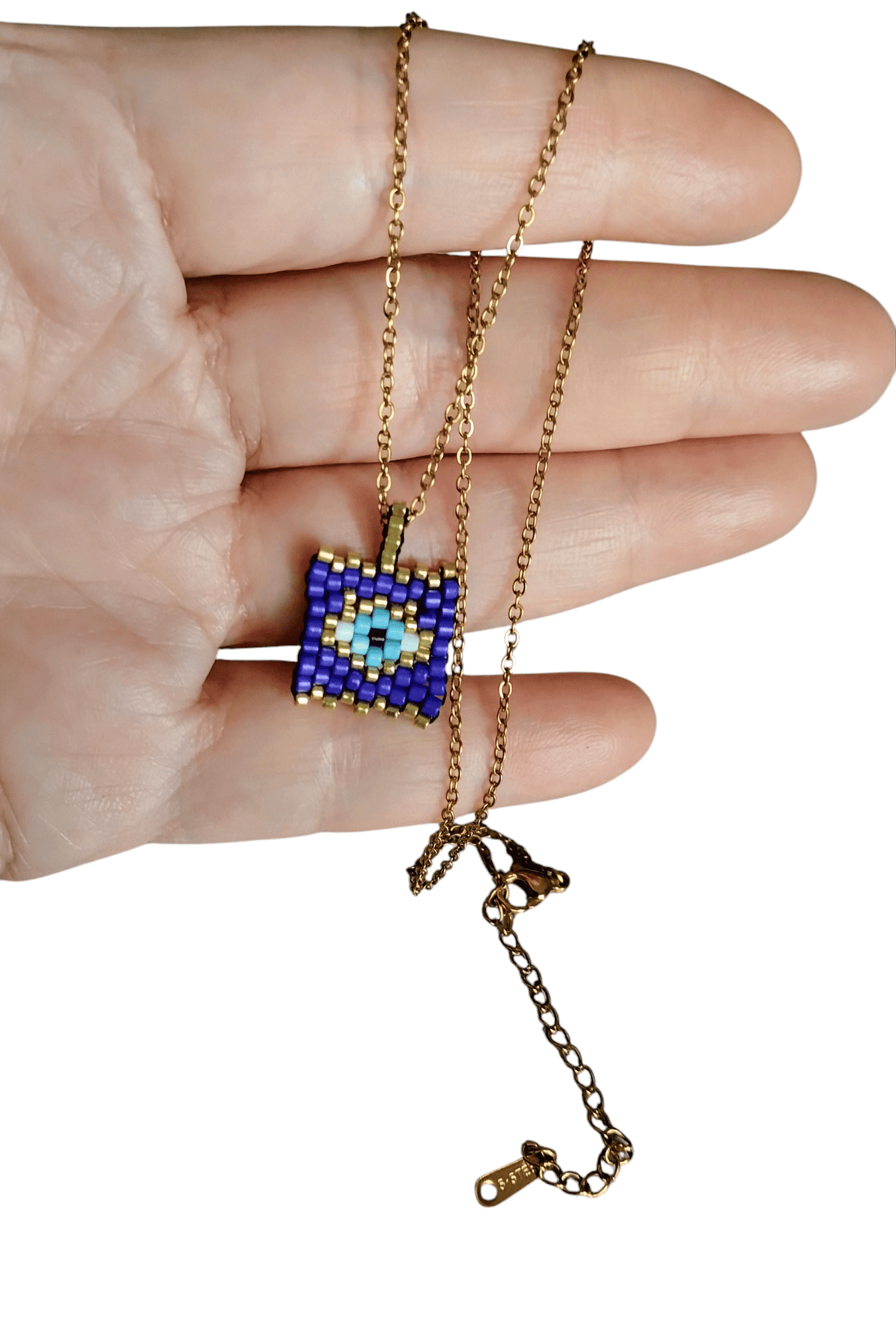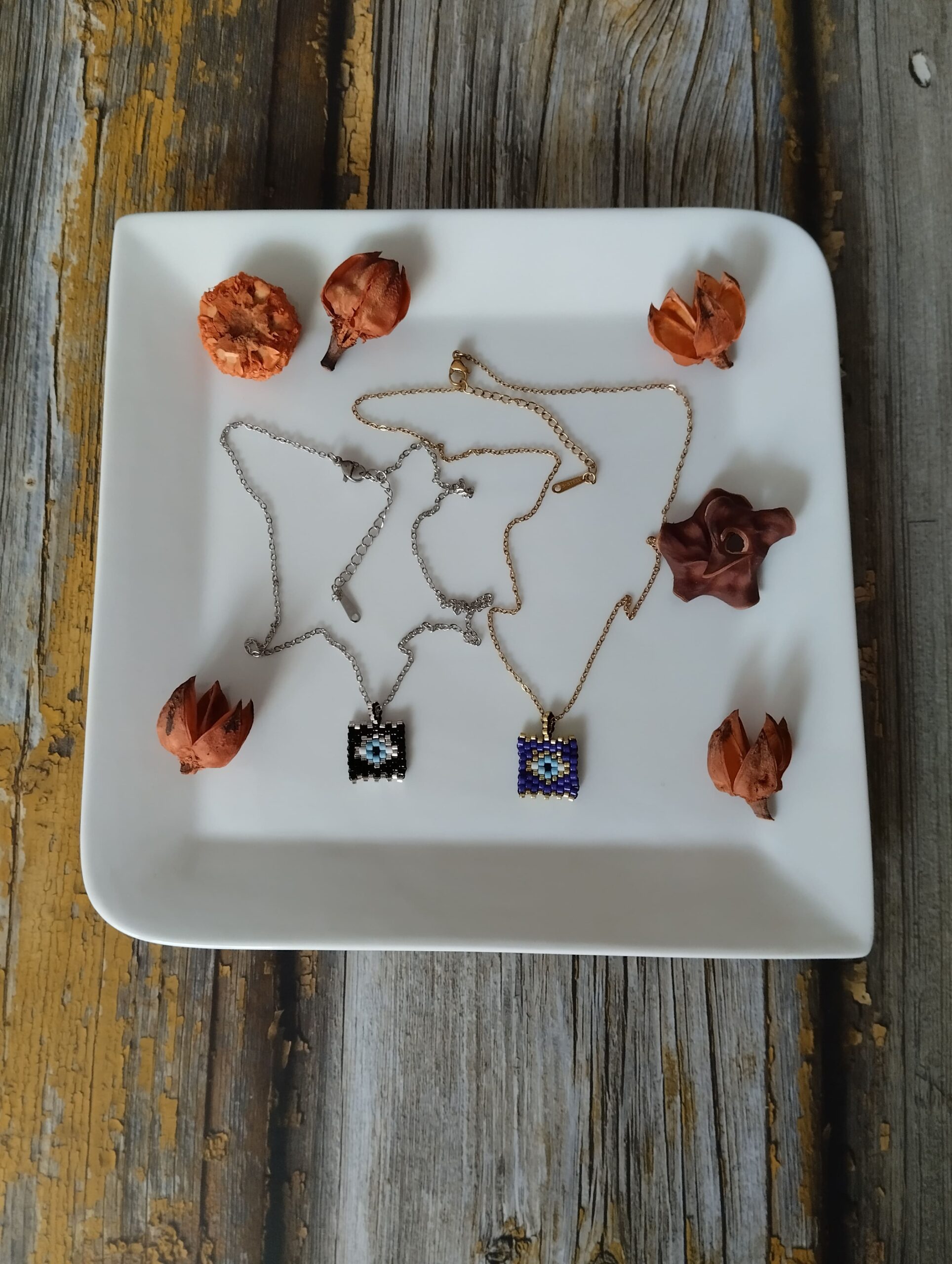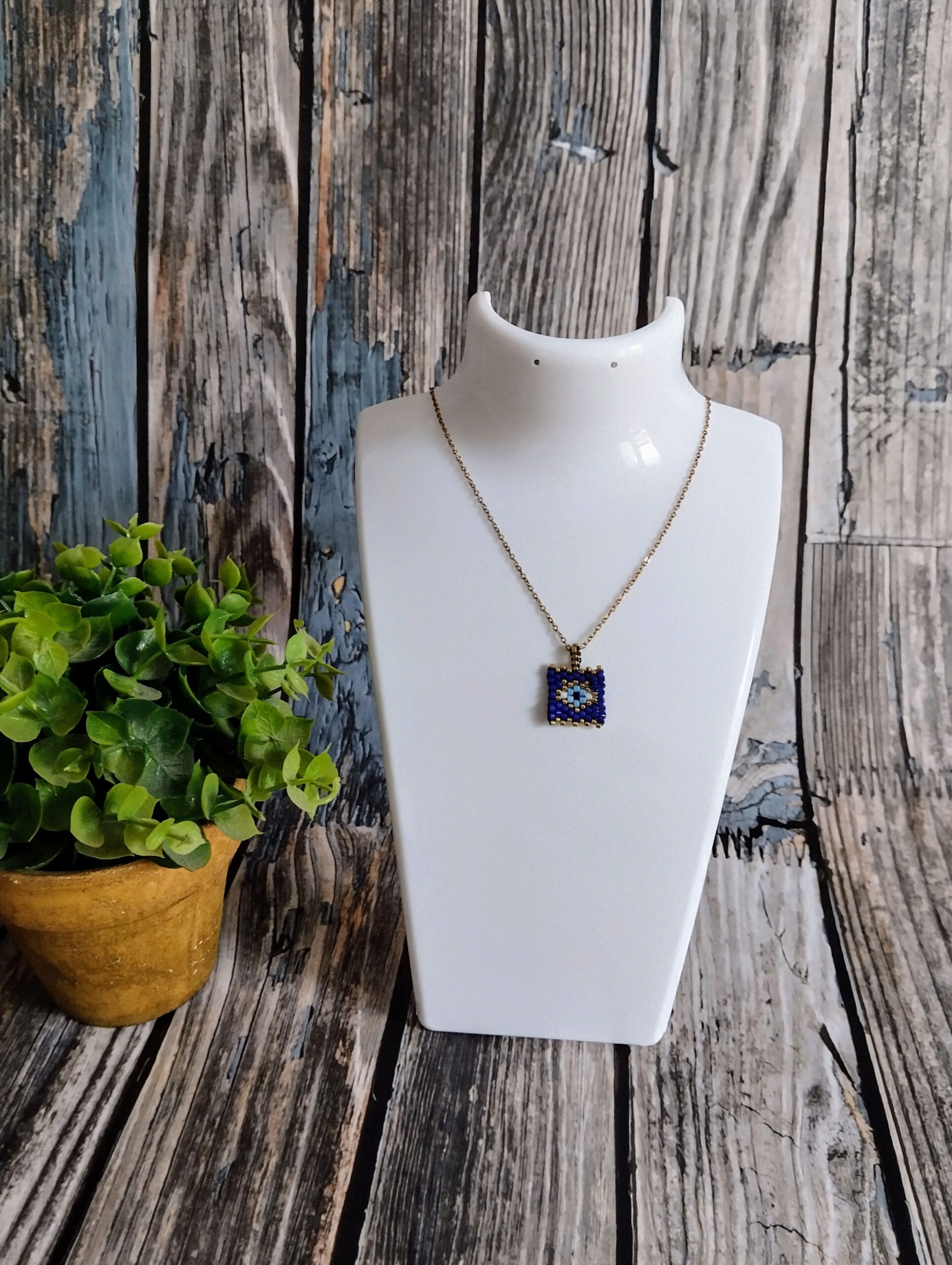 Ατσάλινο κολιέ με ματάκι τετράγωνο miyuki
