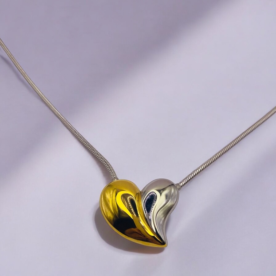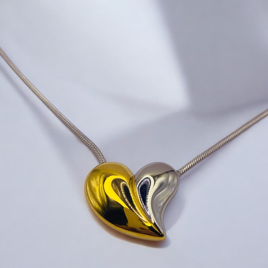 “EROS GOLD AND SILVER” Ατσάλινο κολιέ καρδιά μισό χρυσό μισό ασημί